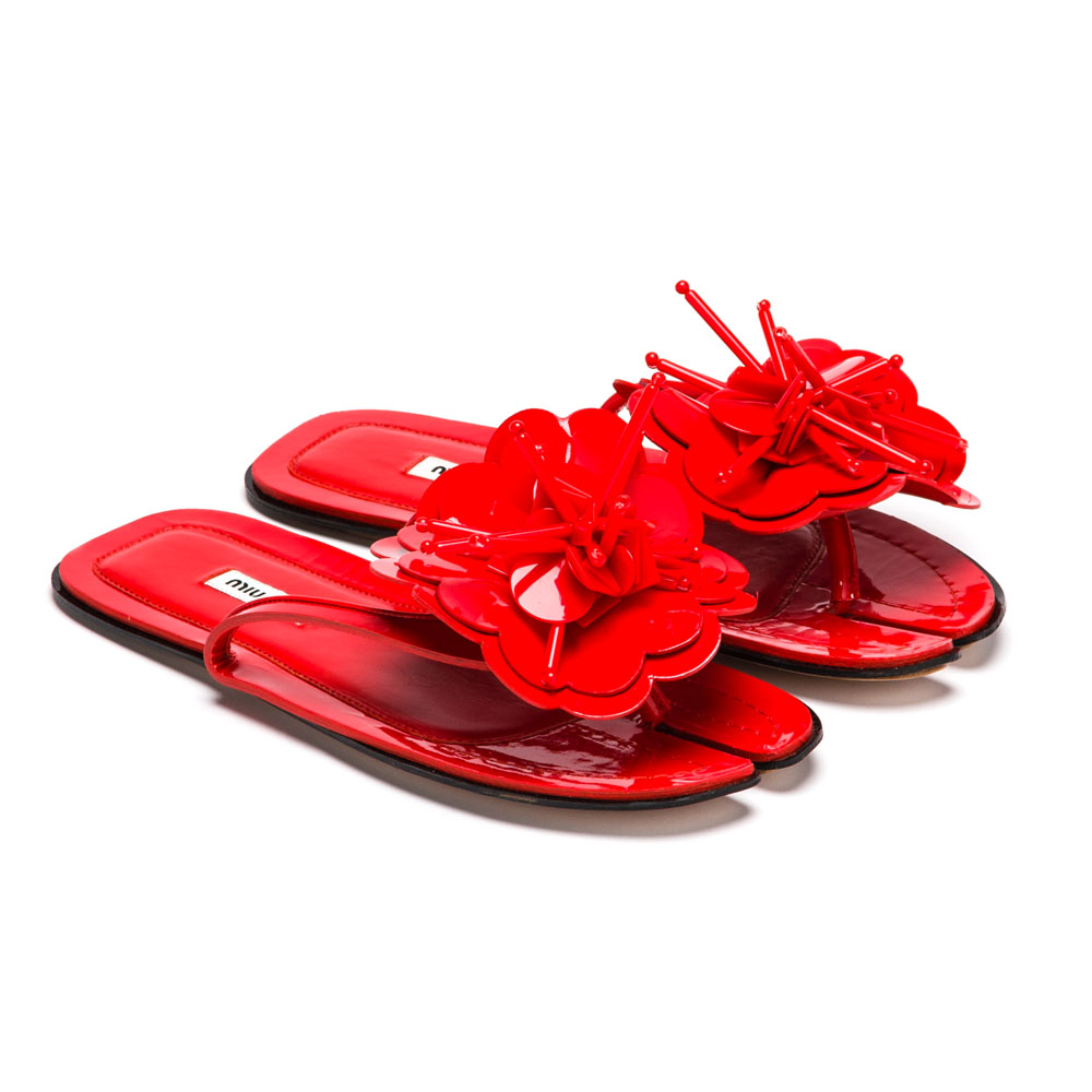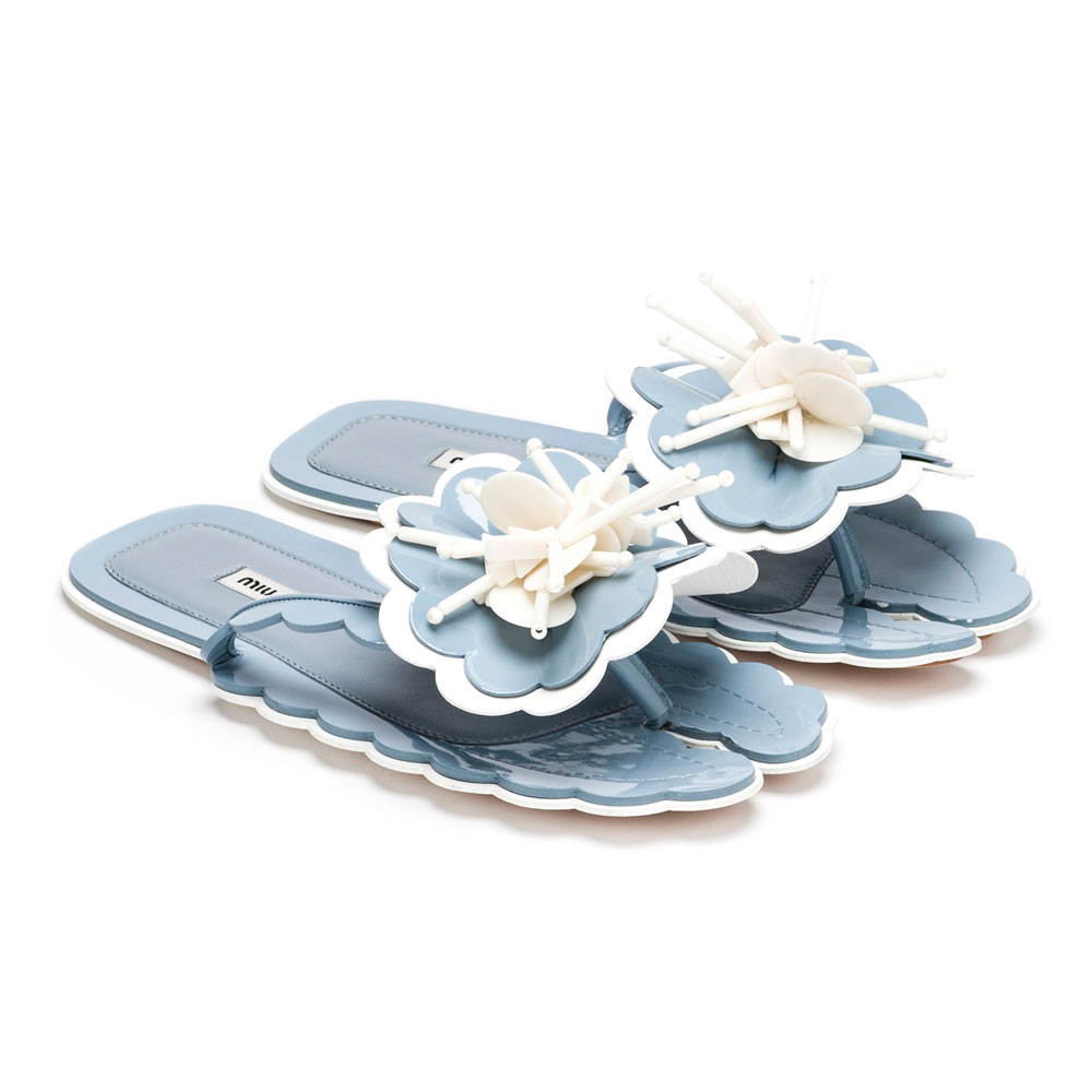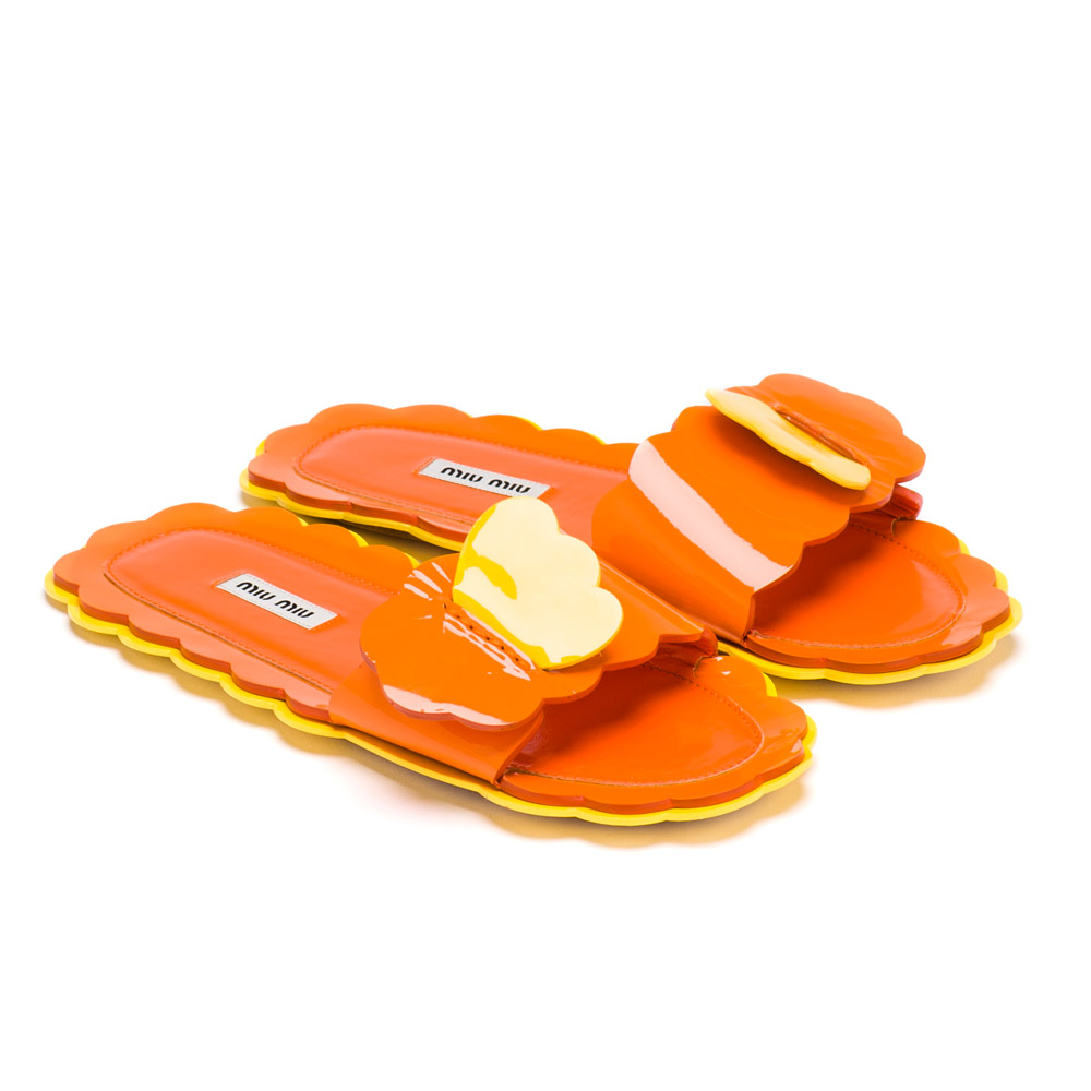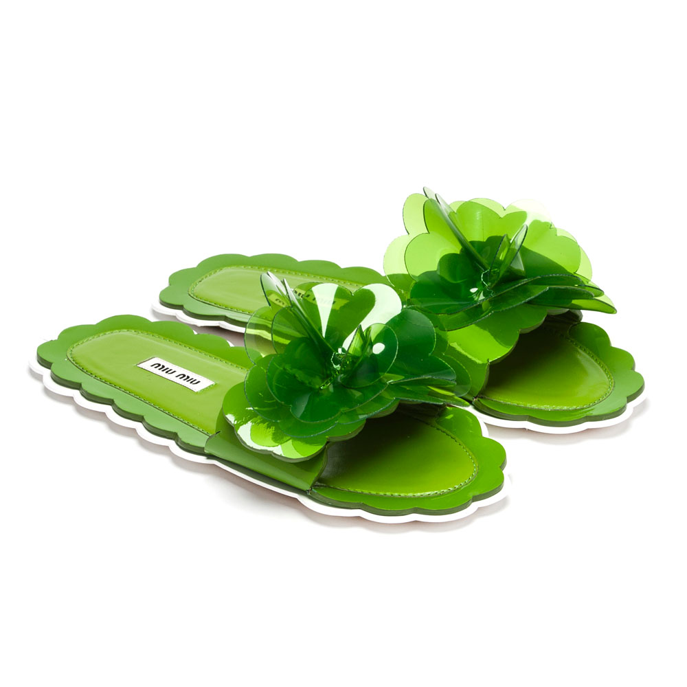 そして15日からバトンタッチして2階/婦人靴 プロモーションスペースで開催されるのが、新作のスリッパを取り揃えるポップアップストア。MIU MIU のフラットシューズといえば、高い実用性にモード感満点のデザインでファッション業界人を中心に熱烈なファンを抱えるヒットアイテム。今季春夏では、フラワーモチーフや、エコファーをソールにあしらったユニークなアイテムもラインナップ。ビーチ用にシンプルな一足、週末用にファー付きのフリップフロップを一足…ユニークなデザインはもちろんおこと、豊富なカラーバリエーションも悩ましい限りだ。