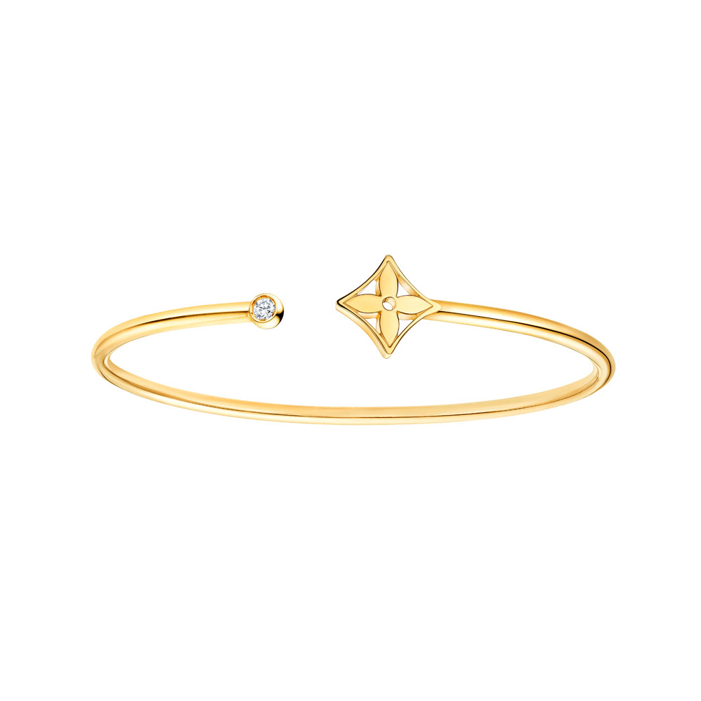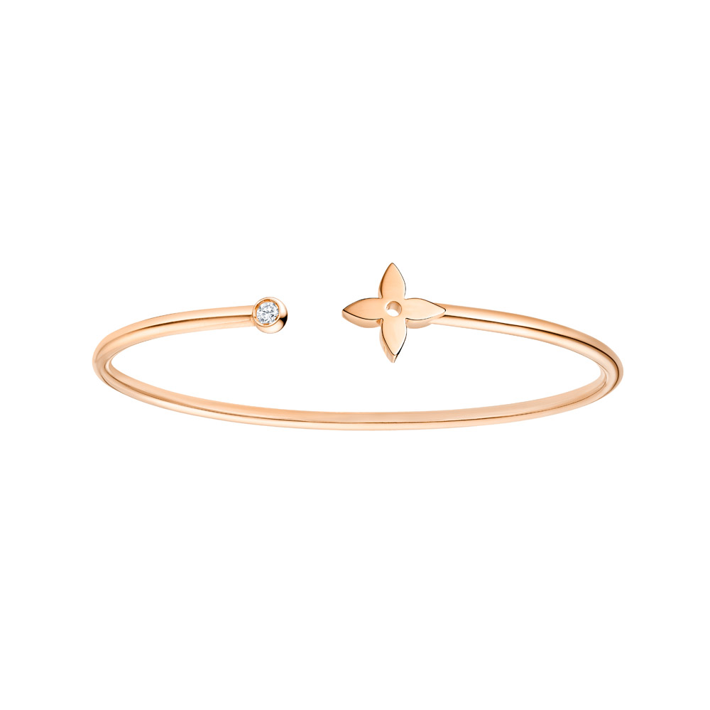 一方、モノグラムのモチーフたちをモダンアートのようにユニークに解釈したのは「イディーブロッサム」から新たに加わった「ブラスレ ツイスト ブロッサム」。イエロー、ホワイト、そしてピンクゴールドとダイヤモンドが洗練されたシンプリシティを際立てるこのブレスレットは、なんと形状記憶の地金を用いているという。
