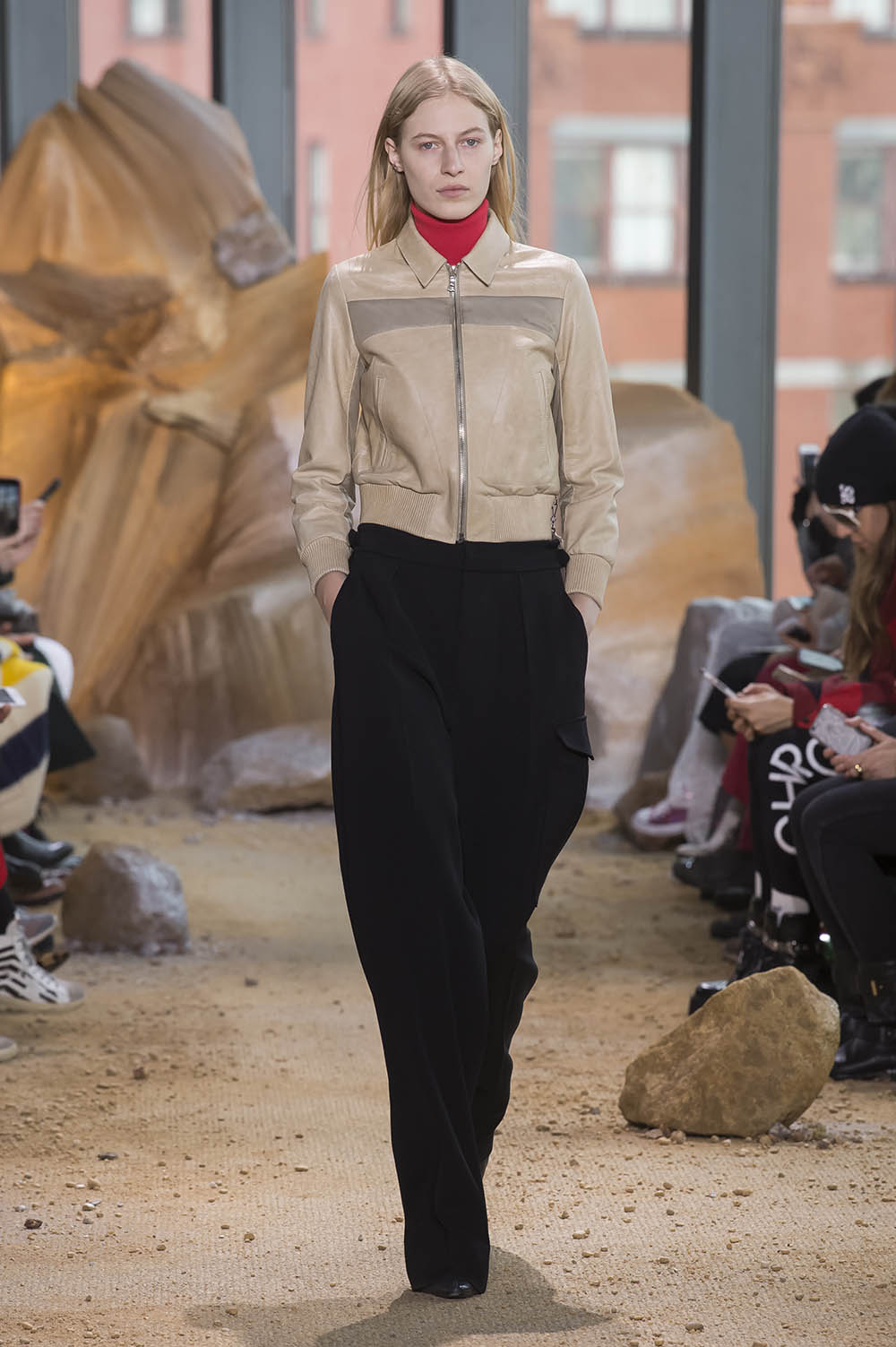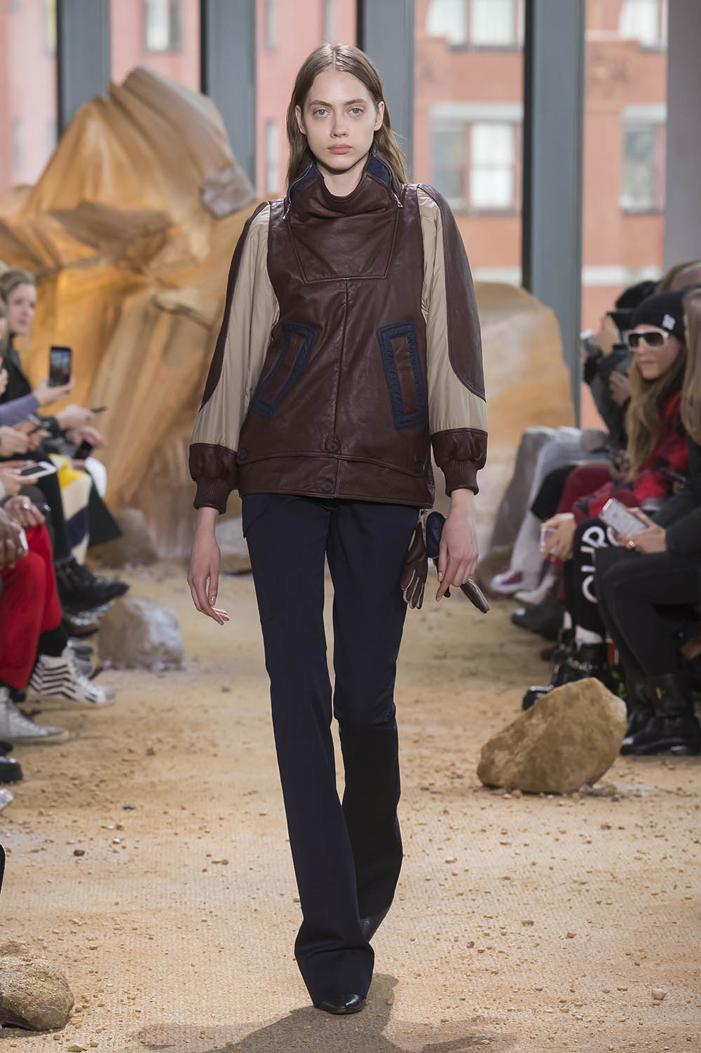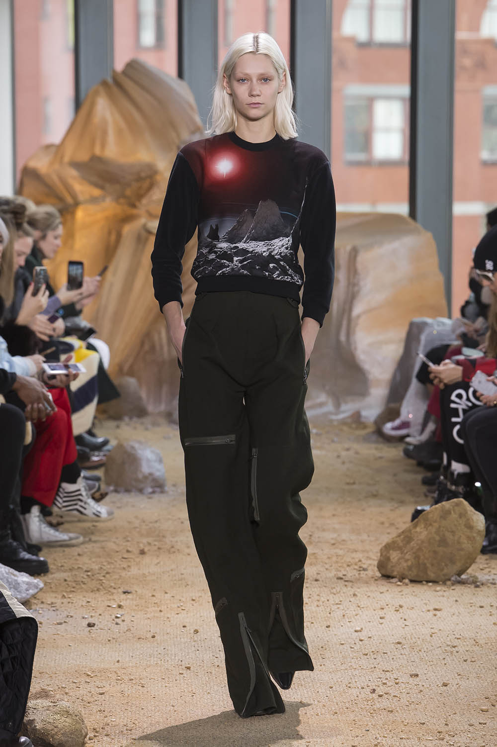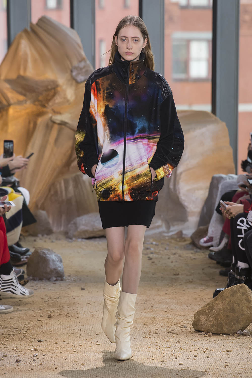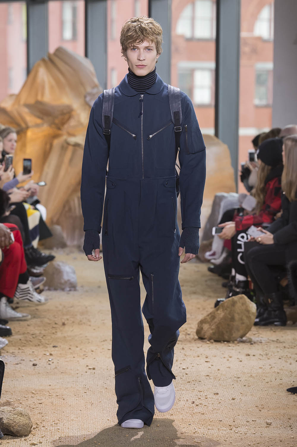 NY ファッションウィーク期間中にあたる11日、LACOSTE (ラコステ) 2017-18年秋冬が発表された。今季インスピレーションになったのは、空、そして宇宙。ブランドの創業者 René Lacoste (ルネ・ラコステ) がスポーツ選手としてのキャリアの後に身を投じた航空産業、そして彼が設立した Air Equipment (エア・イクイップメント) へのオマージュを捧げたコレクションでは、アビエイタースタイルやコズミックなプリントを取り入れたメンズ、ウィメンズの46ルックが登場。Felipe Oliveira Baptista (フェリペ・オリヴェイラ・バティスタ) らしい現代的なデザイン美学の凝縮されたワードローブは、隕石が落下したようなダイナミックなステージ演出と呼応し、空高く宇宙へのロマンを掻き立てた。