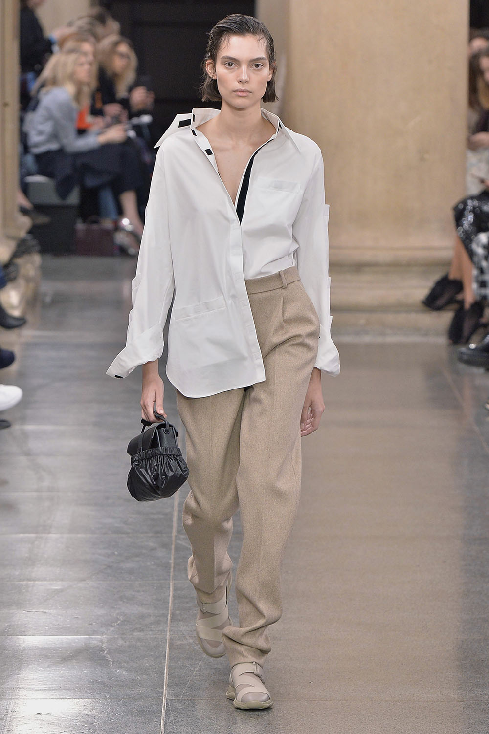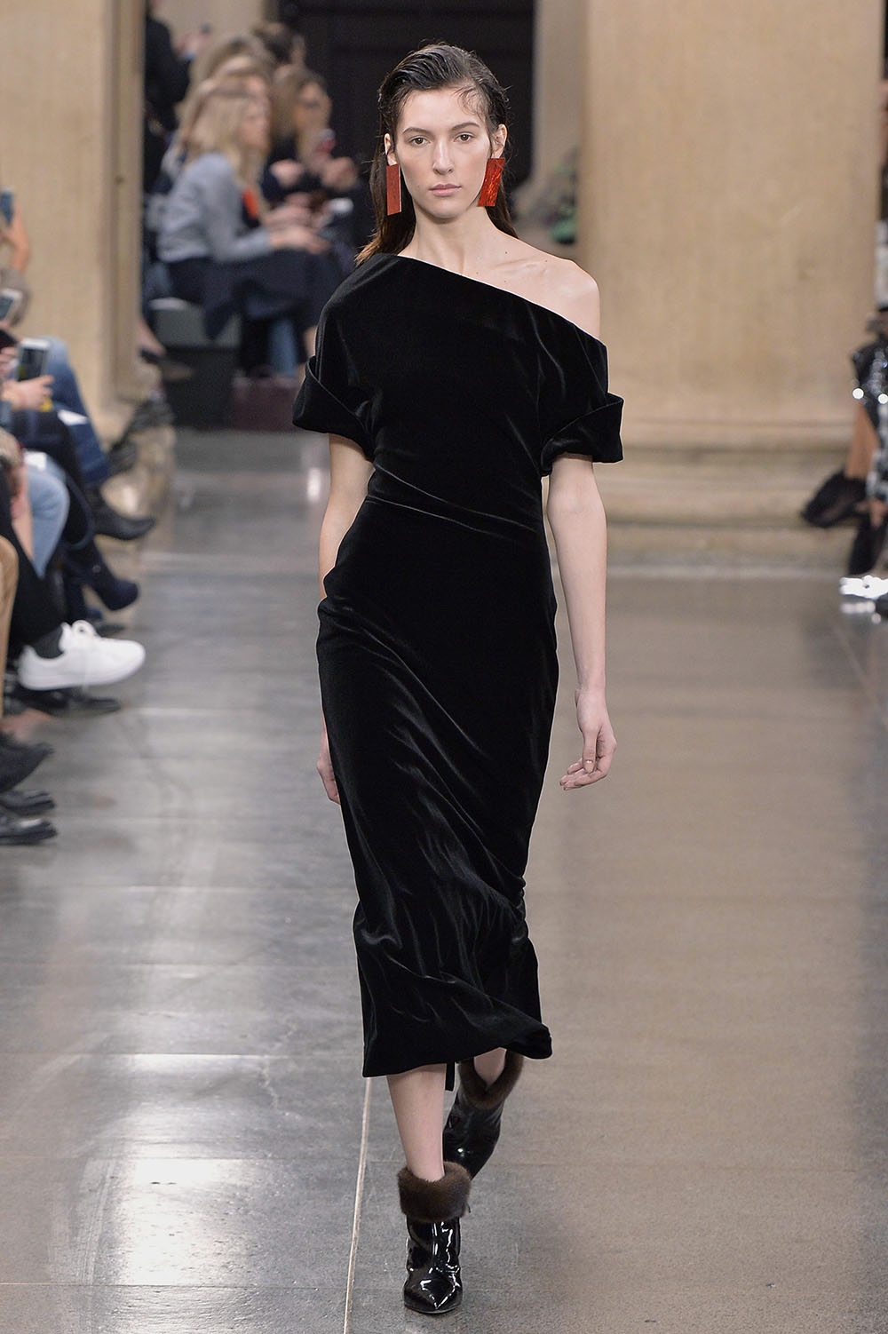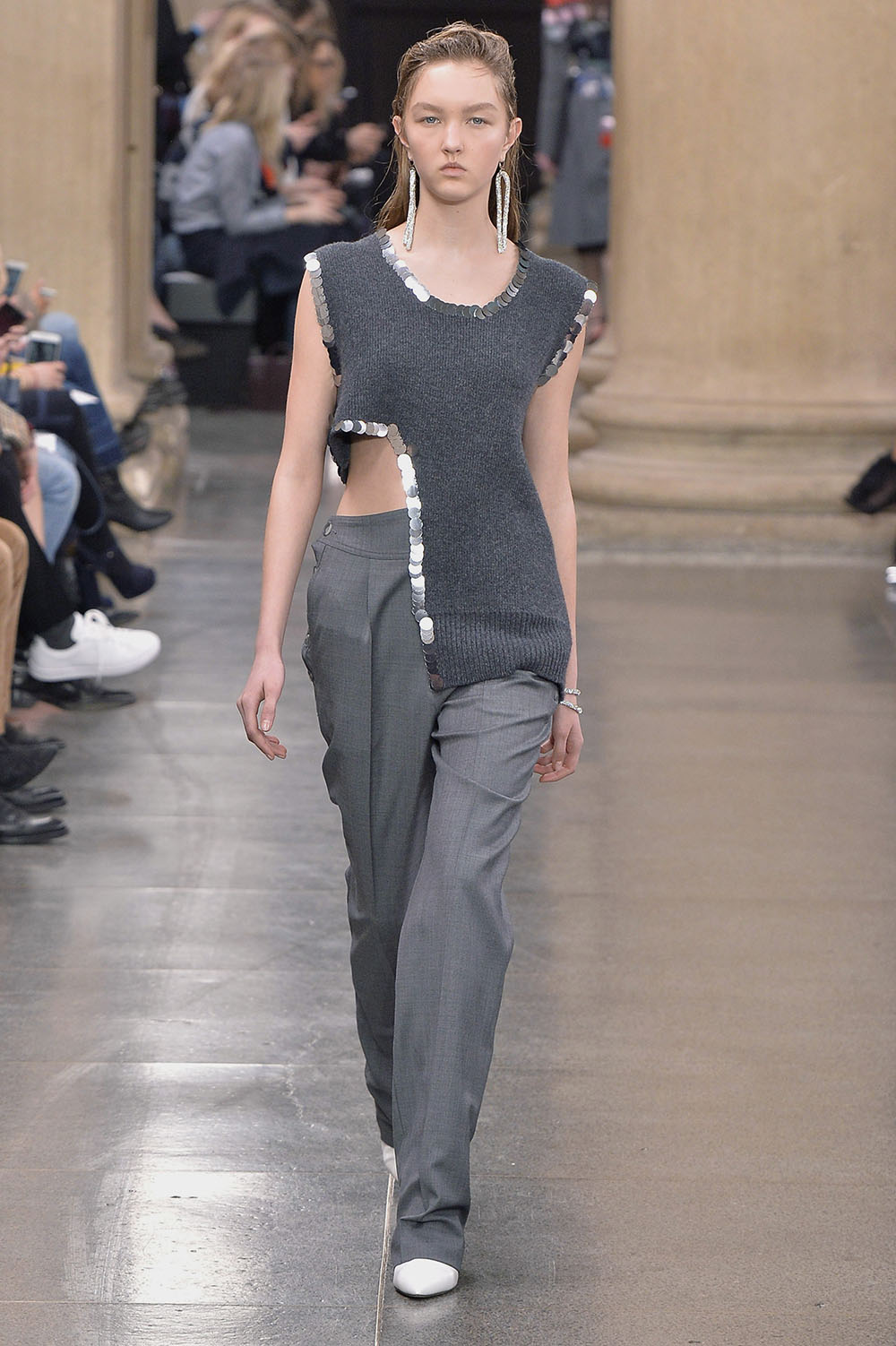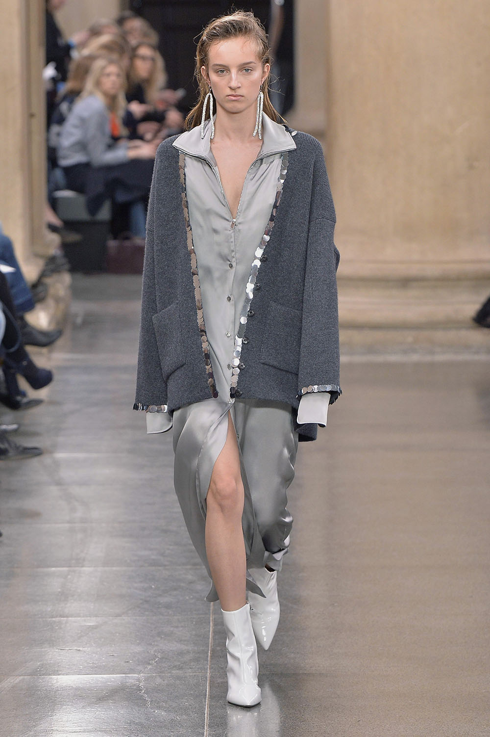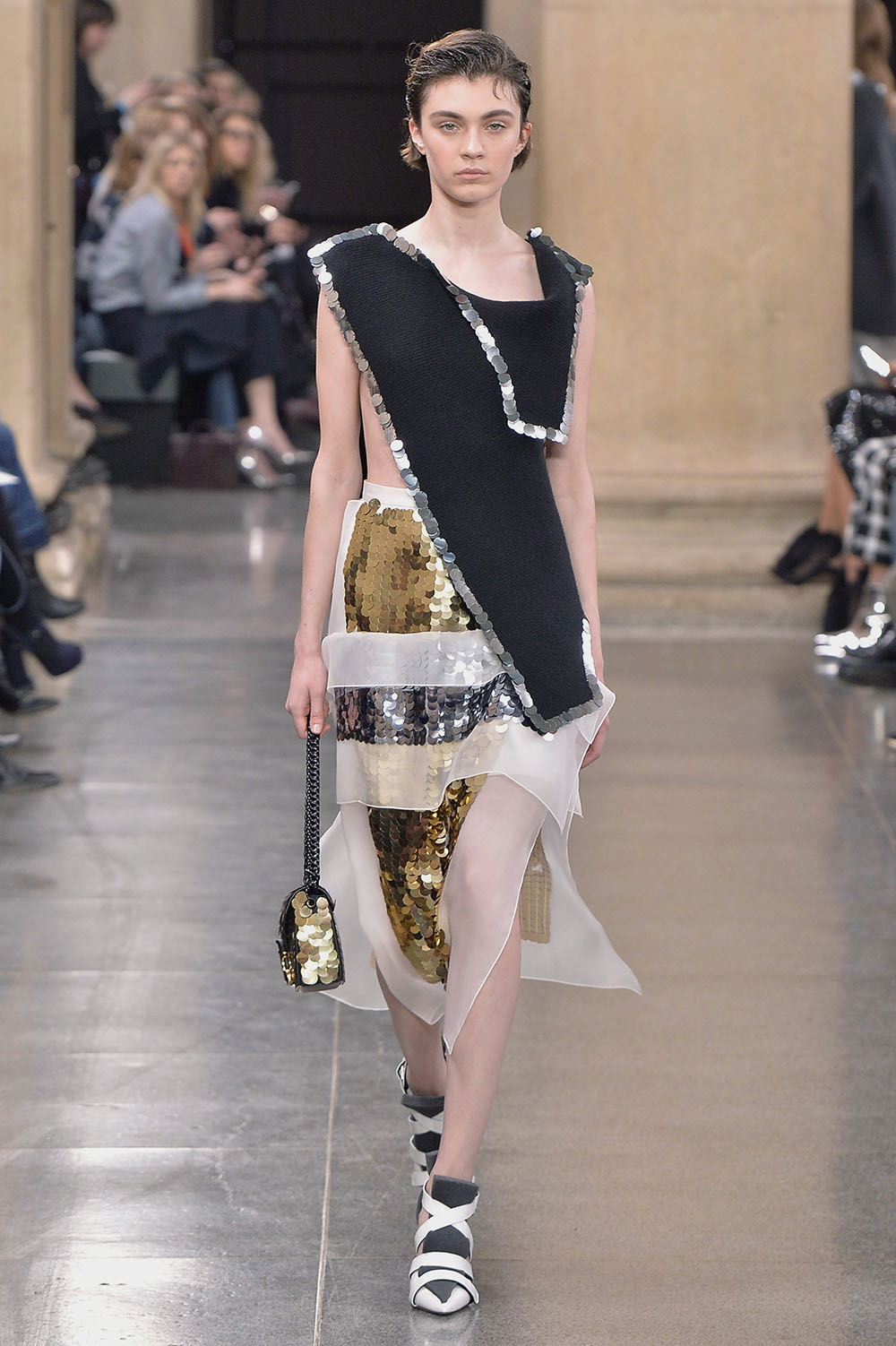 ブランドのお家芸であるフューチャリスティックなスタイルは後半にかけて徐々に顕著になり、入りデッセントな光沢感を放つプリーツのセットアップや、ホログラムのスパンコール装飾が施されたイヴニングなど、今季秋冬のトレンドの一つである80年代のグラムロックを彷彿とさせるルックが華やぎを添えた。