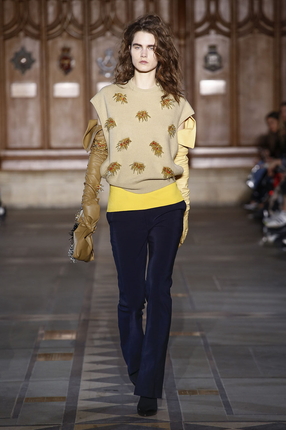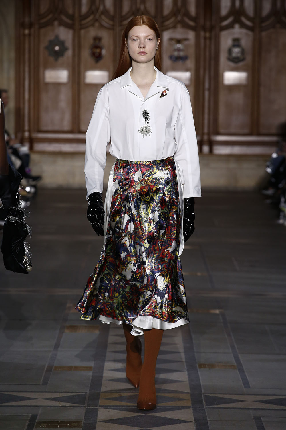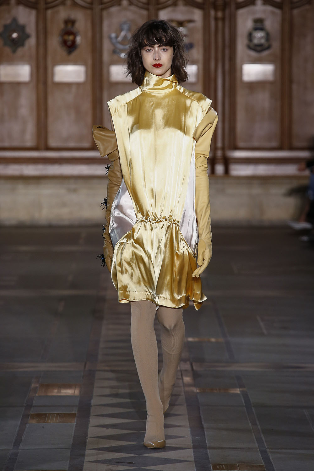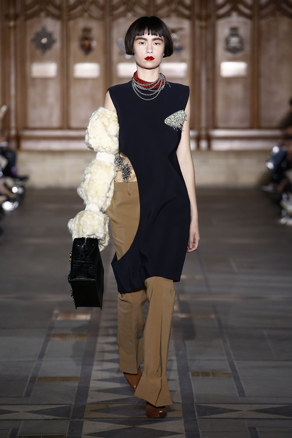 ショー全体を通して、クラシックなウィメンズウェア、そしてメンズウェアをモダンな解釈で表現したワードローブには、シュールレアリズムを思わせるデコラティブなディティールやレイヤースタイリングが取り入れられ、エレベーテットなベーシックスタイルを提案している。