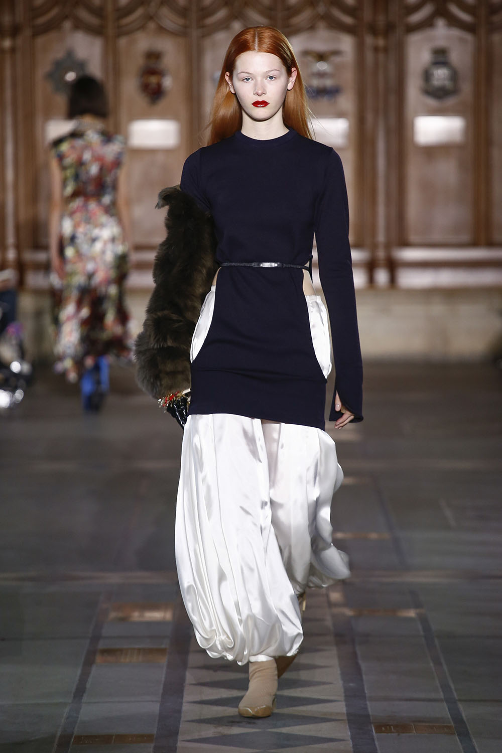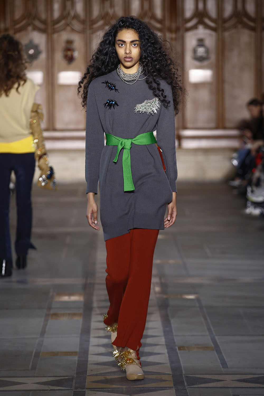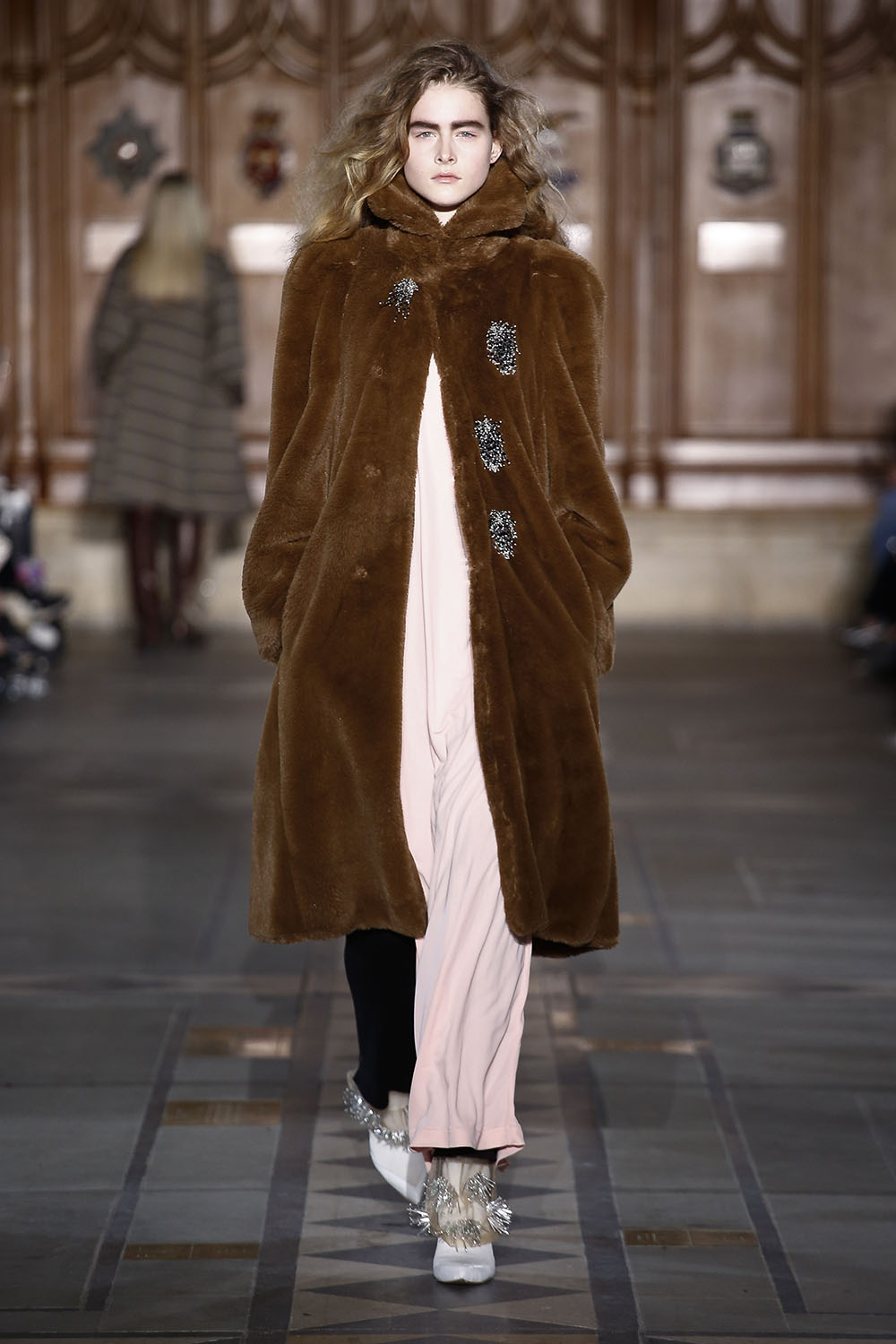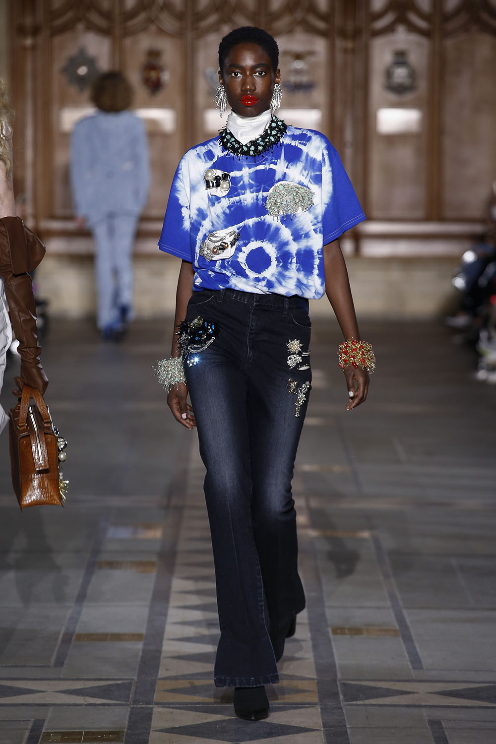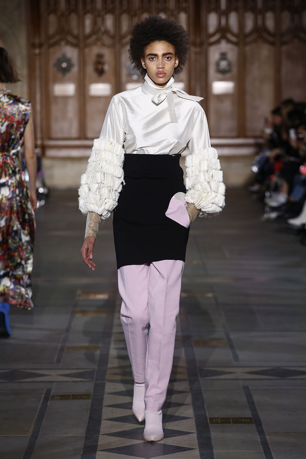 ショー全体を通して、クラシックなウィメンズウェア、そしてメンズウェアをモダンな解釈で表現したワードローブには、シュールレアリズムを思わせるデコラティブなディティールやレイヤースタイリングが取り入れられ、エレベーテットなベーシックスタイルを提案している。
