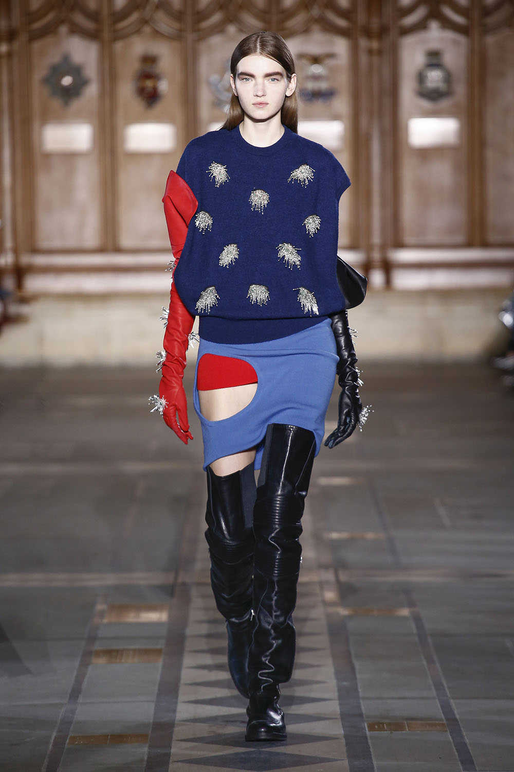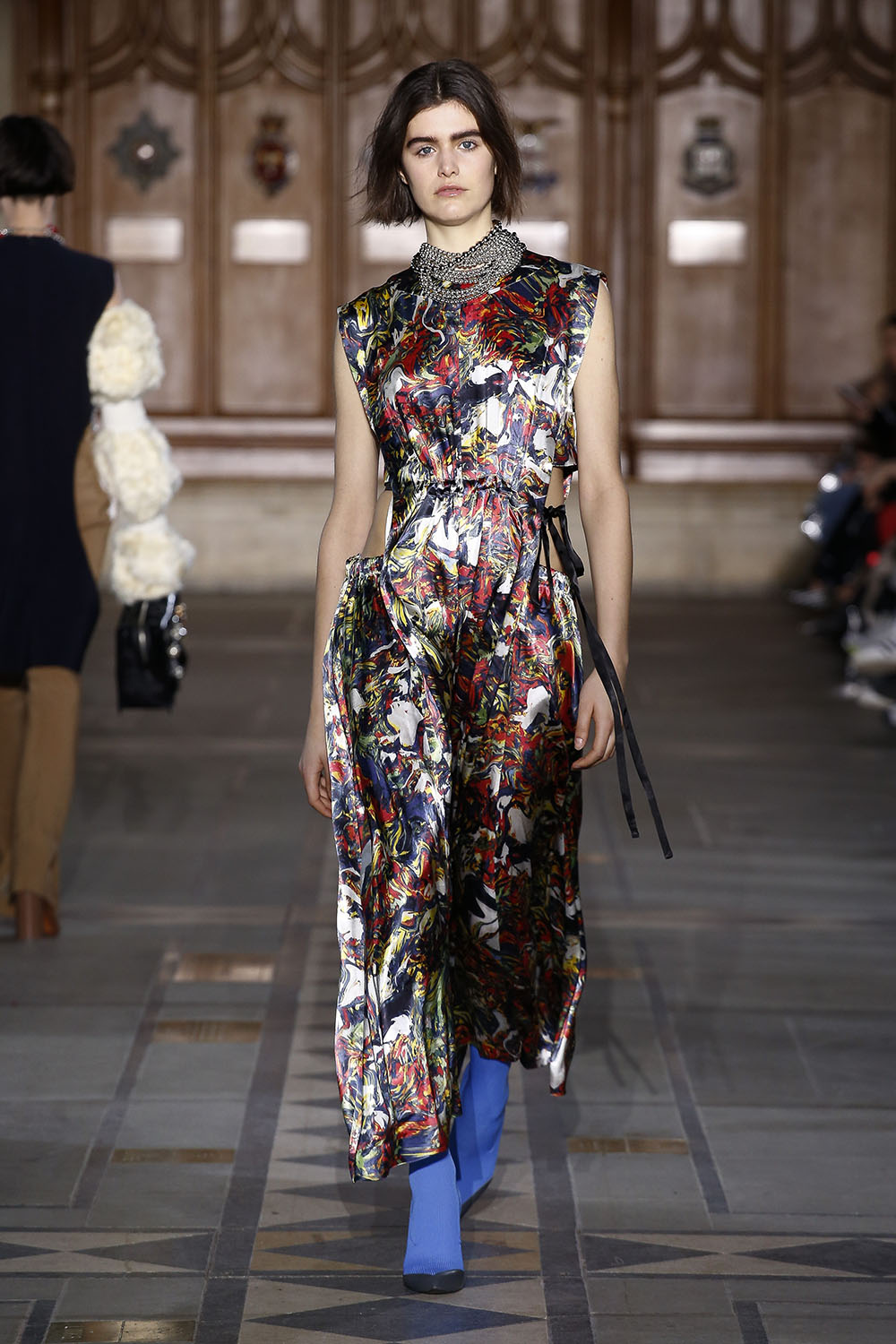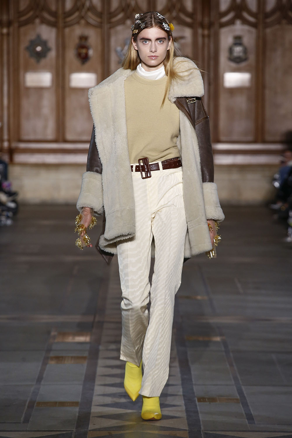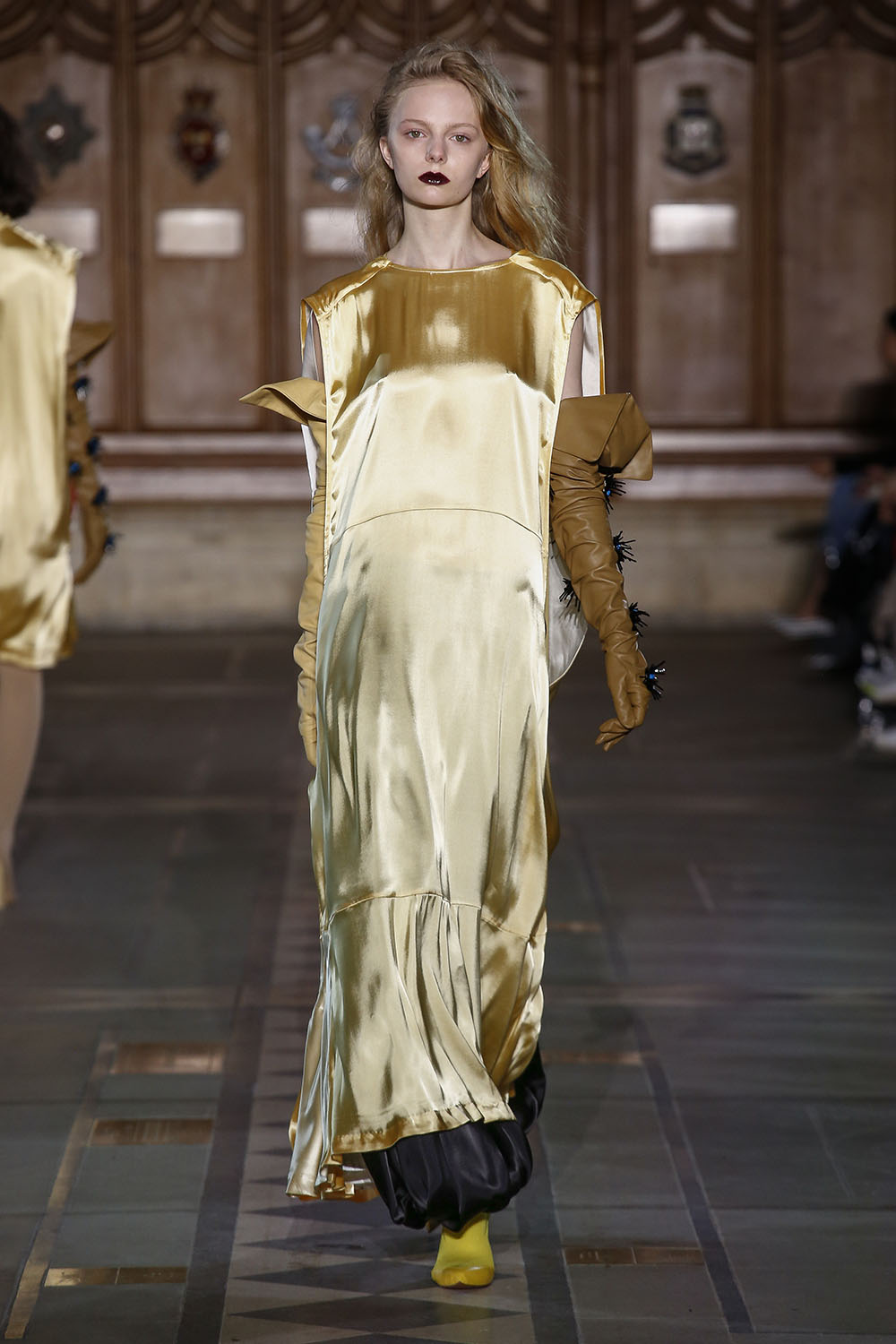ショー全体を通して、クラシックなウィメンズウェア、そしてメンズウェアをモダンな解釈で表現したワードローブには、シュールレアリズムを思わせるデコラティブなディティールやレイヤースタイリングが取り入れられ、エレベーテットなベーシックスタイルを提案している。