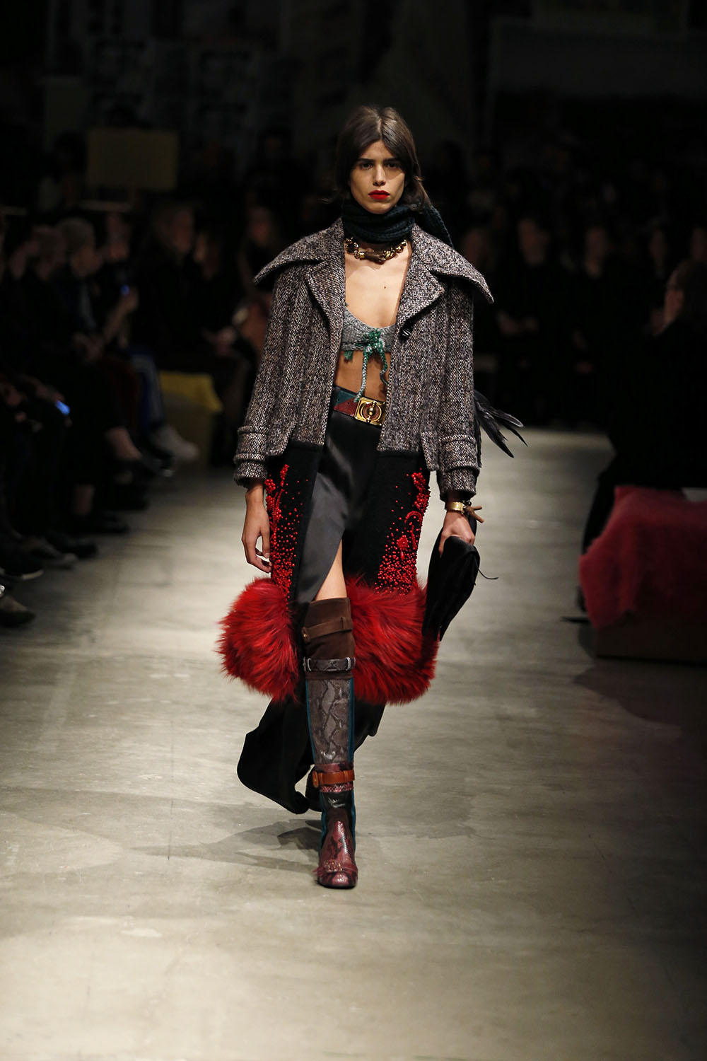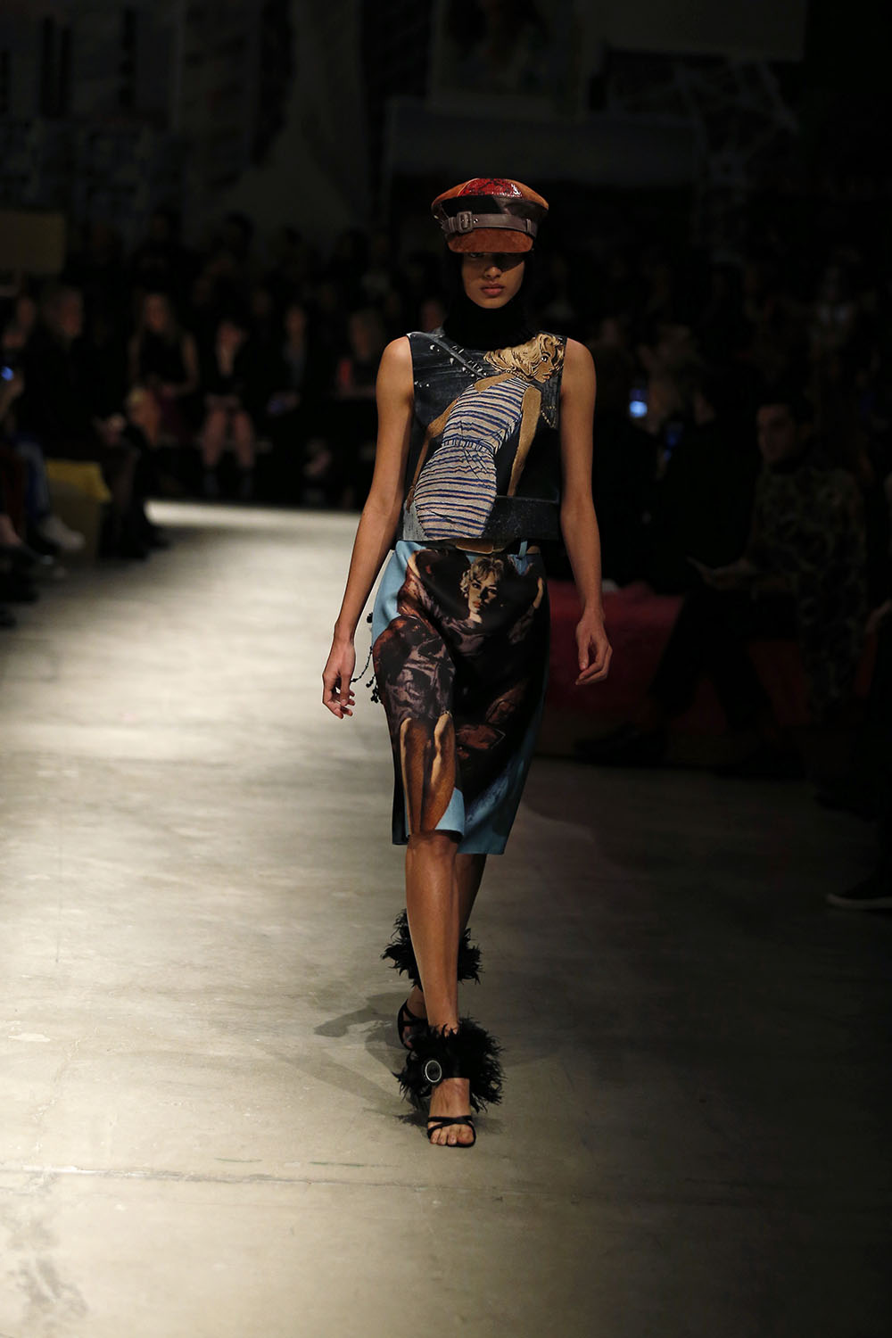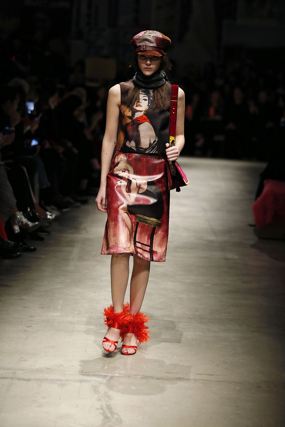 ミラノ ファッションウィーク期間中にあたる23日、Prada (プラダ) の最新2017-18年秋冬 ウィメンズウェア コレクションが発表された。今季ランウェイで披露されたのは47のルック。FedericoFellini (フェデリコ・フェリーニ) 監督作品『City of Women (女の都)』(1980年) や Coretta Scott King (コレッタ・スコット・キング) の著作『Edythe Scott Bagley (エダイス・スコット・バッグリー)』、そして Nicholas Carr (ニコラス・カー) 著作『The Glass Cage』など、様々な映画や書籍をインスピレーションにしたコレクションでは、『Barbarella (バーバレラ)』や『Breakfast at Tiffany’s (ティファニーで朝食を)』など数々の名画のポスターを手がけてきた巨匠 Robert McGinnis (ロバート・マクギニス) によるオリジナルのグラフィックをプリントに取り入れたルックなどが登場。ノスタルジックなニットにコーデュロイ、マニッシュなハリスツイード、センシュアルなレースとフェザーのトリム、そしてワイルドなパイソンなど表情豊かなマテリアル使いが目を引く。