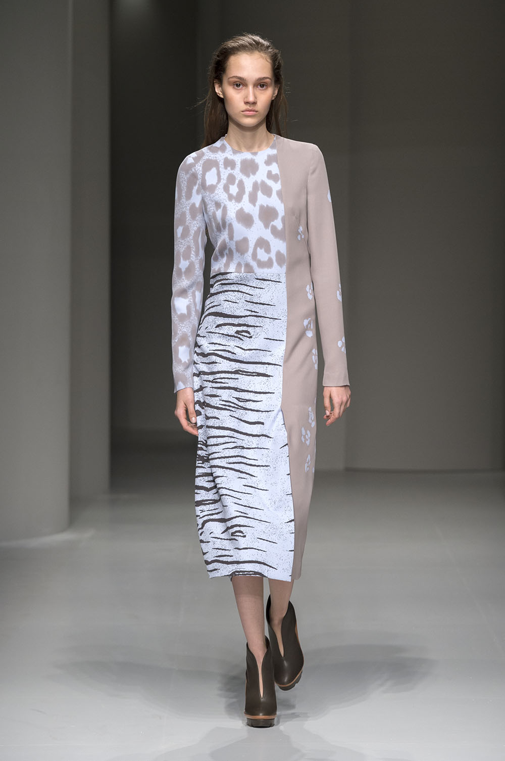 ミラノ ファッションウィーク期間中にあたる2月26日、Salvatore Ferragamo (サルヴァトーレ・フェラガモ) による最新2017-18年秋冬 ウィメンズウェア コレクションが発表された。ウィメンズレディトゥ ウェアのデザインディレクターの Fulvio Rigoni (フルヴィオ・リゴーニ) による大2シーズン目である今季、ランウェイで披露されたのは44体のウィメンズルック。最高峰のレザーグッズで知られる Ferragamo らしい、レザーやエキゾチックスキン、ミンク、ビーバー、スワカラファーなど、目を見張るようなプレシャスマテリアルは圧巻。60年代の近未来主義を思わせる、ミニマルでありながらシャープで構築的なシルエットは、エフォートレスな中にほのかなエッジを効かせている。
