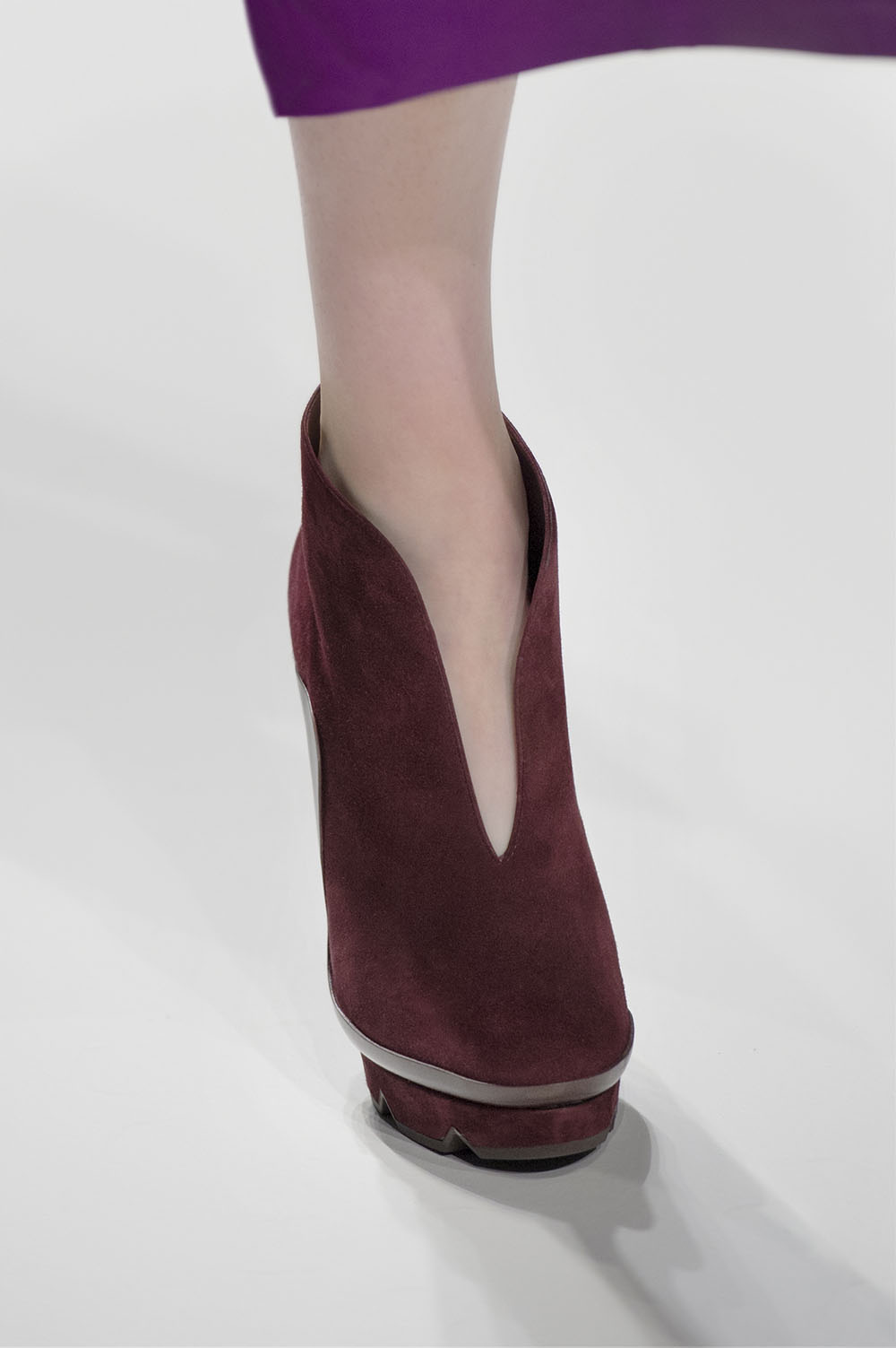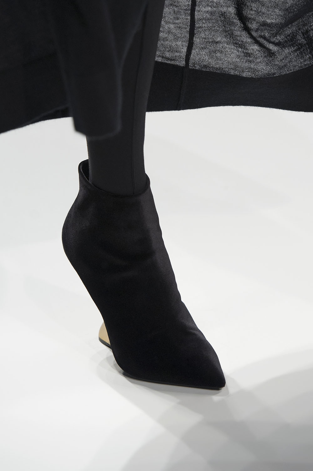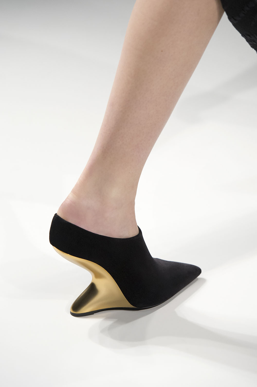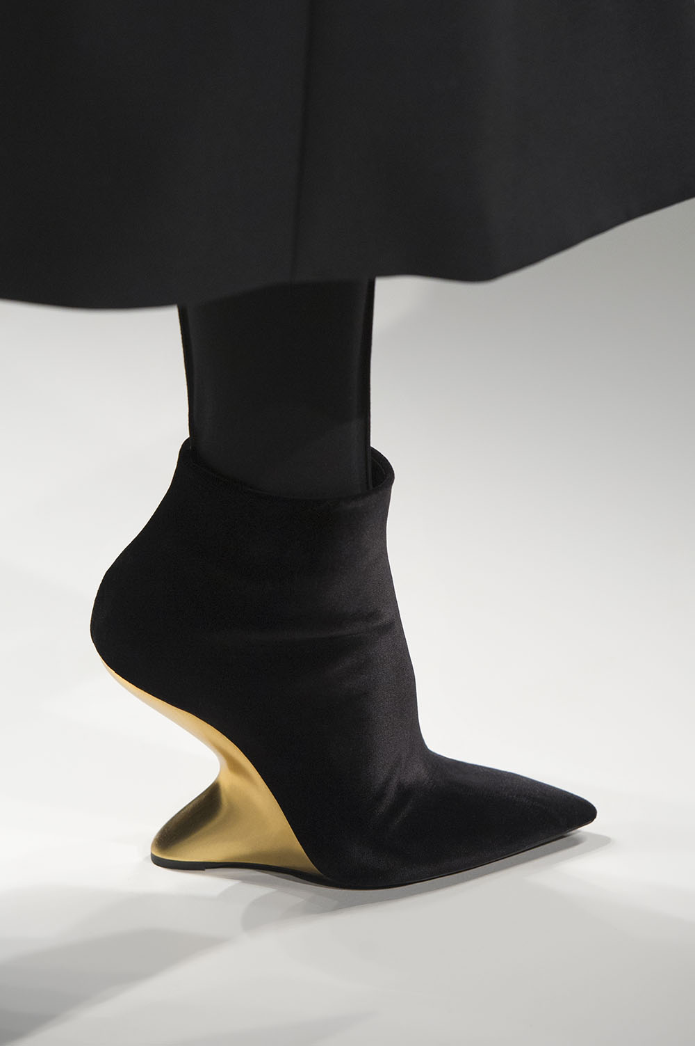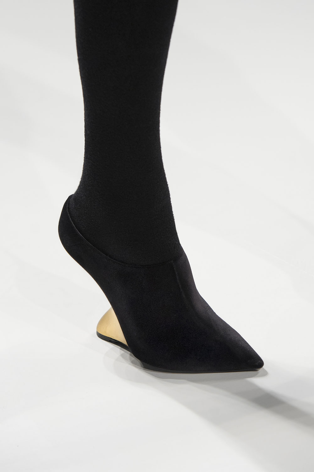 ウィメンズシューズのデザインディレクター Paul Andrew (ポール・ アンドリュー) によるランウェイシューズでは、今季ラバーのプラットフォームマウンテンブーツや、モダニズムアートの作品のような有機的なカーブラインを描くスカルプチュアヒールのアンクルブーツがイン。アイコニックな「ソフトソフィアバッグ」は、トランスペアレンドな PVC 素材をレイヤーすることでベーシックなデザインをランウェイ仕様にアップデート。マニッシュな「タリア・ガンチョ」や、アリゲーターを用いた半円形のクラッチバッグなど、ネクスト・アイコンバッグに相応しいフォトジェニックなアクセサリーが揃った。