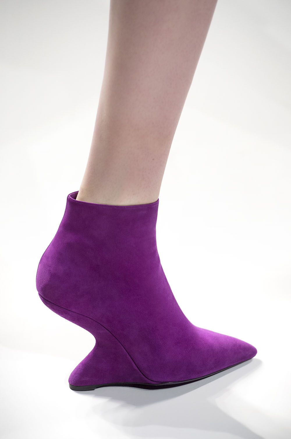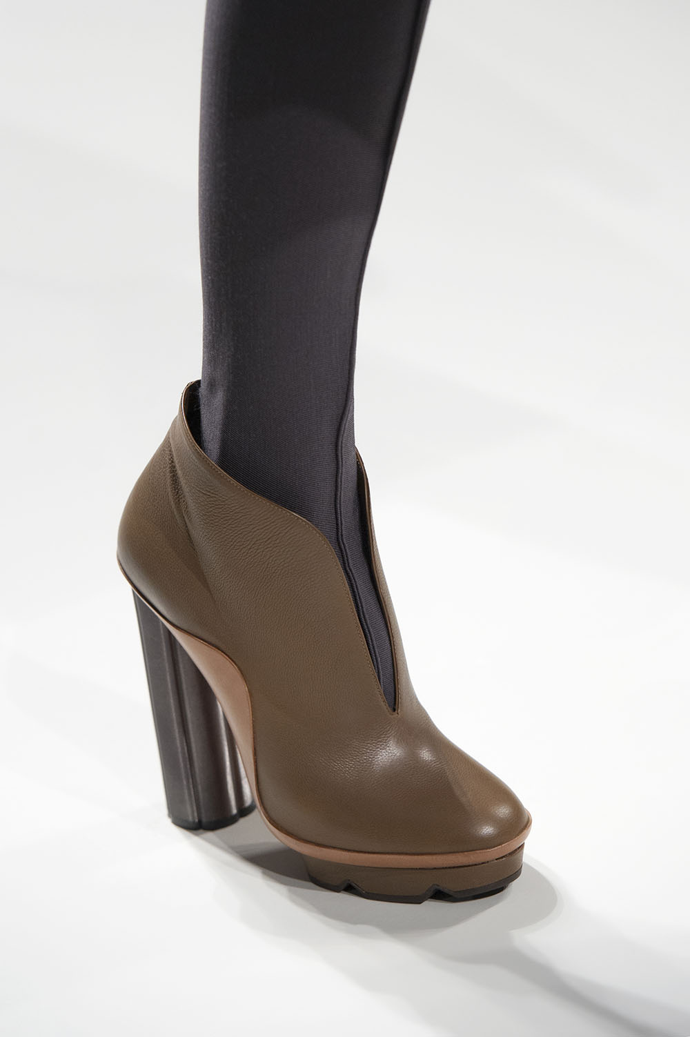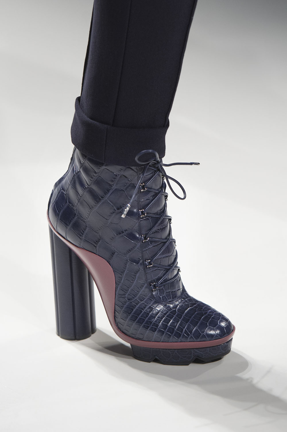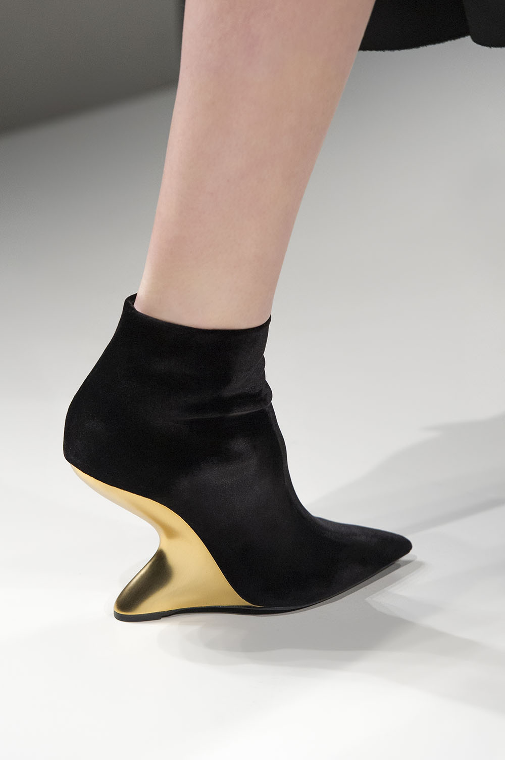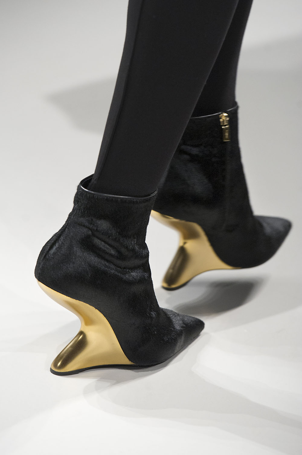 ウィメンズシューズのデザインディレクター Paul Andrew (ポール・ アンドリュー) によるランウェイシューズでは、今季ラバーのプラットフォームマウンテンブーツや、モダニズムアートの作品のような有機的なカーブラインを描くスカルプチュアヒールのアンクルブーツがイン。アイコニックな「ソフトソフィアバッグ」は、トランスペアレンドな PVC 素材をレイヤーすることでベーシックなデザインをランウェイ仕様にアップデート。マニッシュな「タリア・ガンチョ」や、アリゲーターを用いた半円形のクラッチバッグなど、ネクスト・アイコンバッグに相応しいフォトジェニックなアクセサリーが揃った。