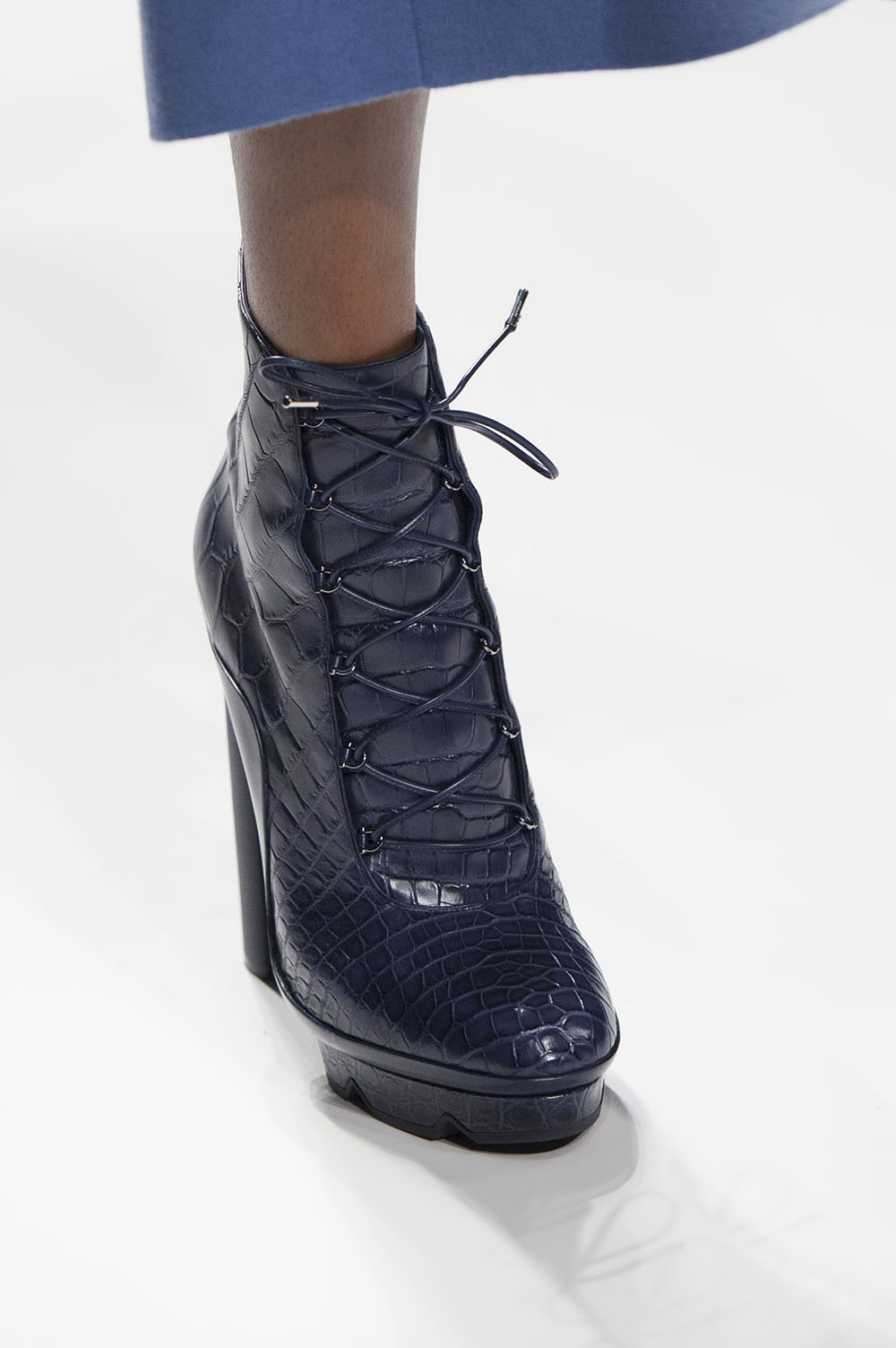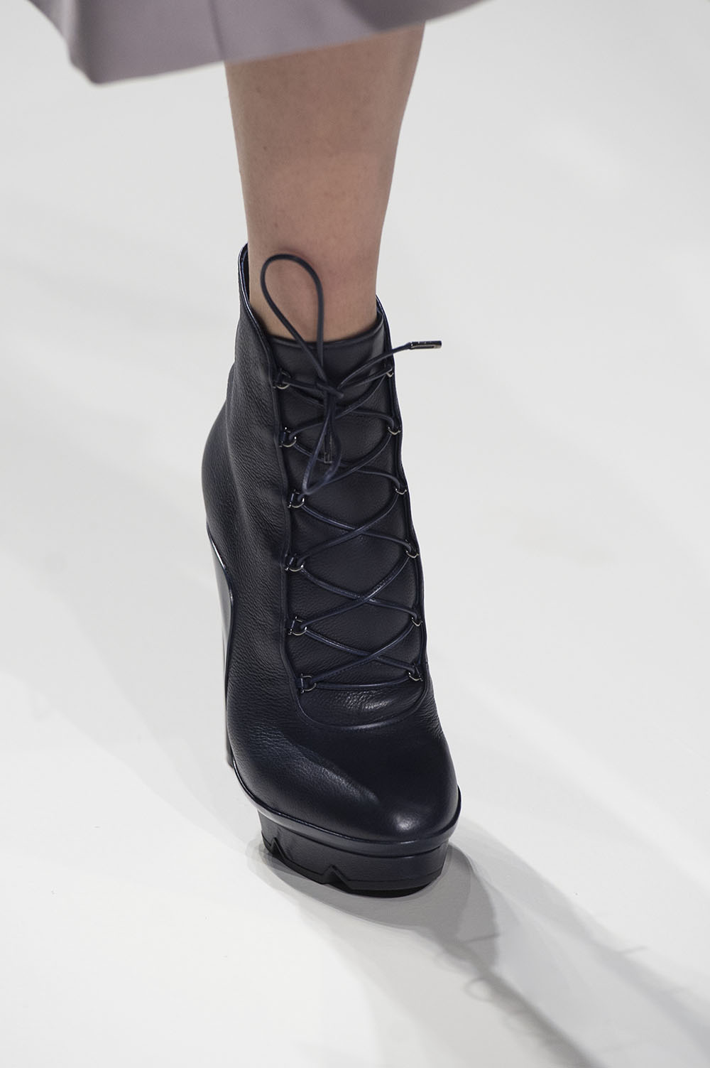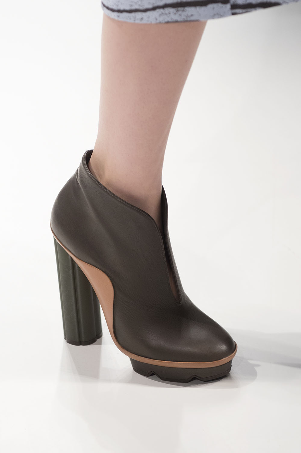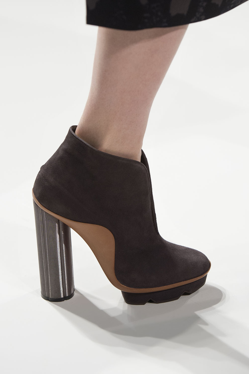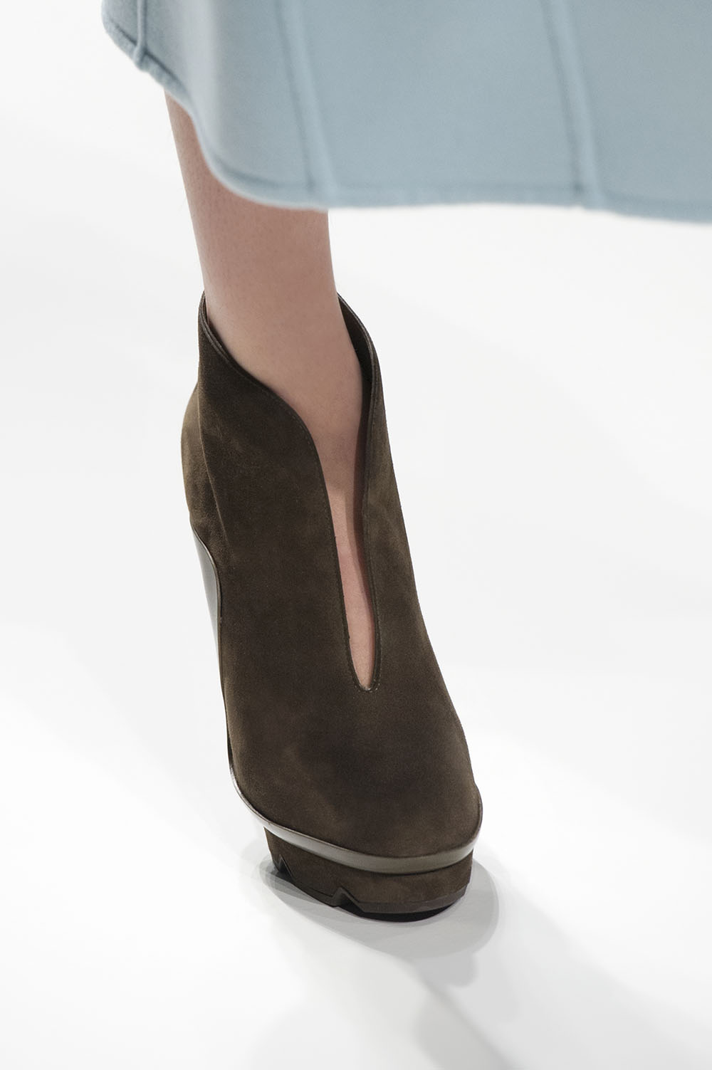 ウィメンズシューズのデザインディレクター Paul Andrew (ポール・ アンドリュー) によるランウェイシューズでは、今季ラバーのプラットフォームマウンテンブーツや、モダニズムアートの作品のような有機的なカーブラインを描くスカルプチュアヒールのアンクルブーツがイン。アイコニックな「ソフトソフィアバッグ」は、トランスペアレンドな PVC 素材をレイヤーすることでベーシックなデザインをランウェイ仕様にアップデート。マニッシュな「タリア・ガンチョ」や、アリゲーターを用いた半円形のクラッチバッグなど、ネクスト・アイコンバッグに相応しいフォトジェニックなアクセサリーが揃った。