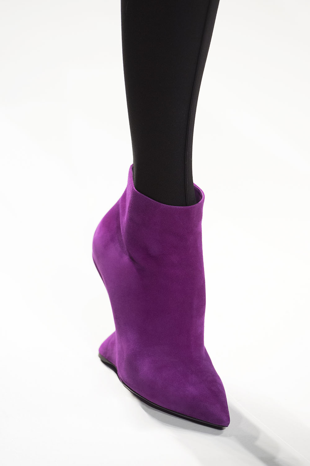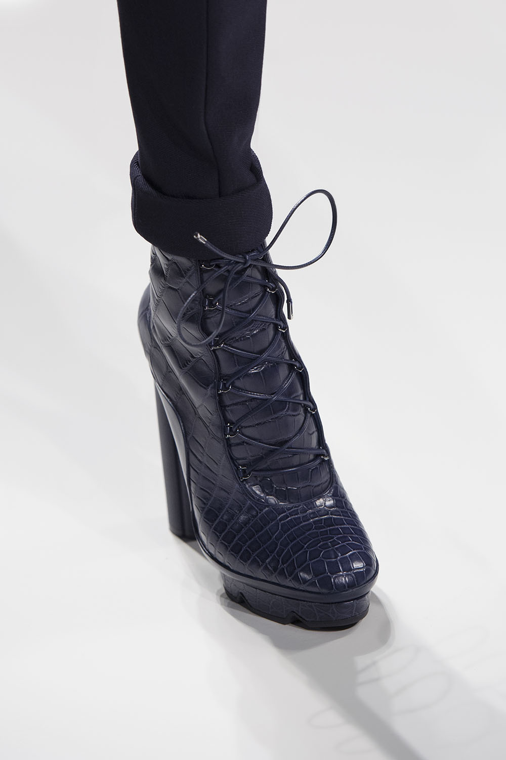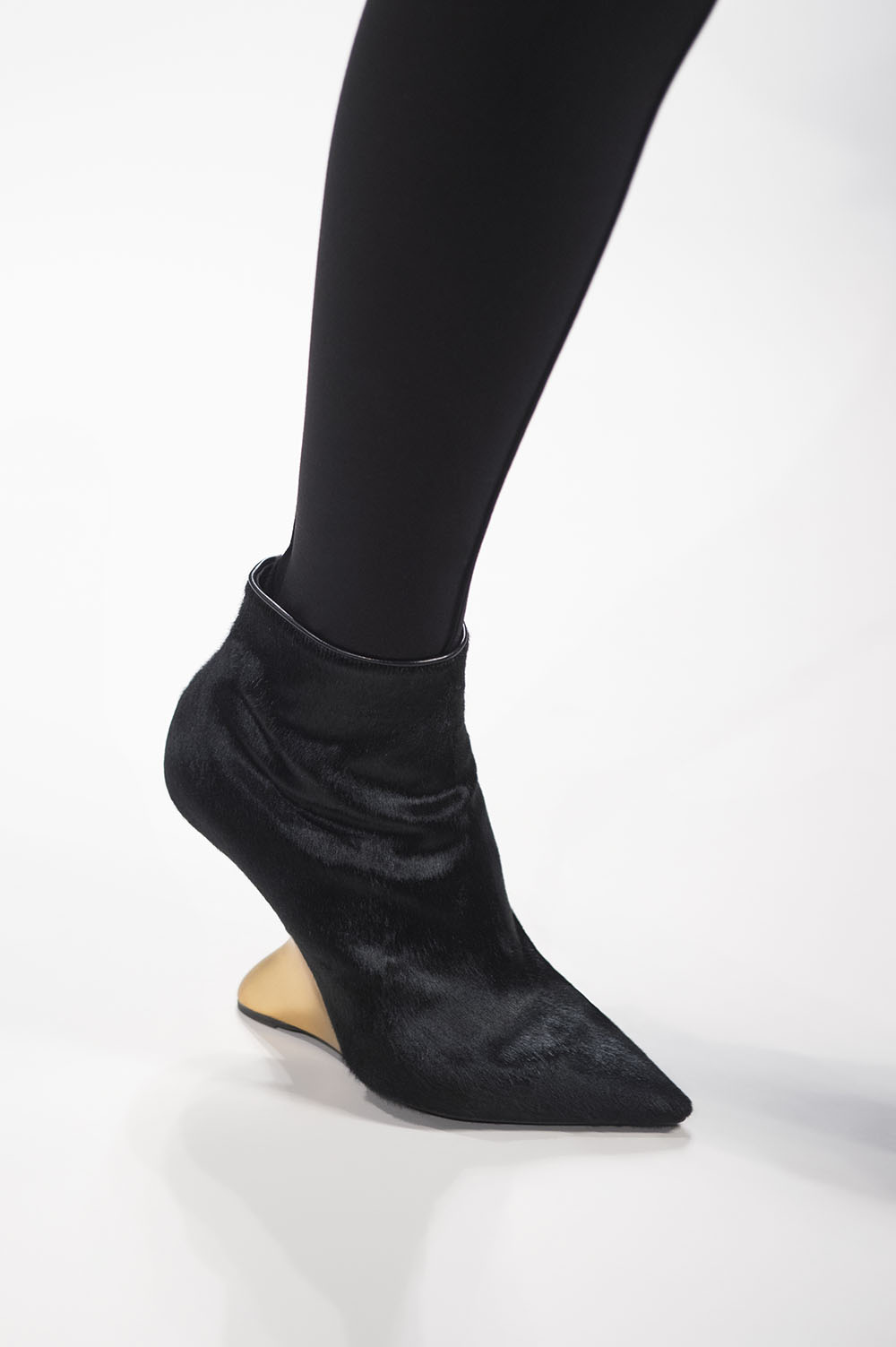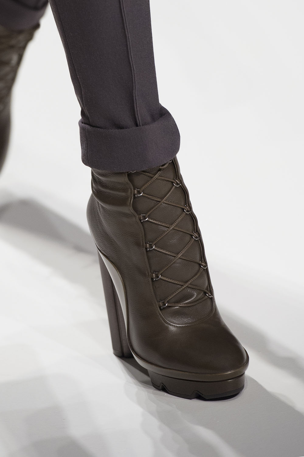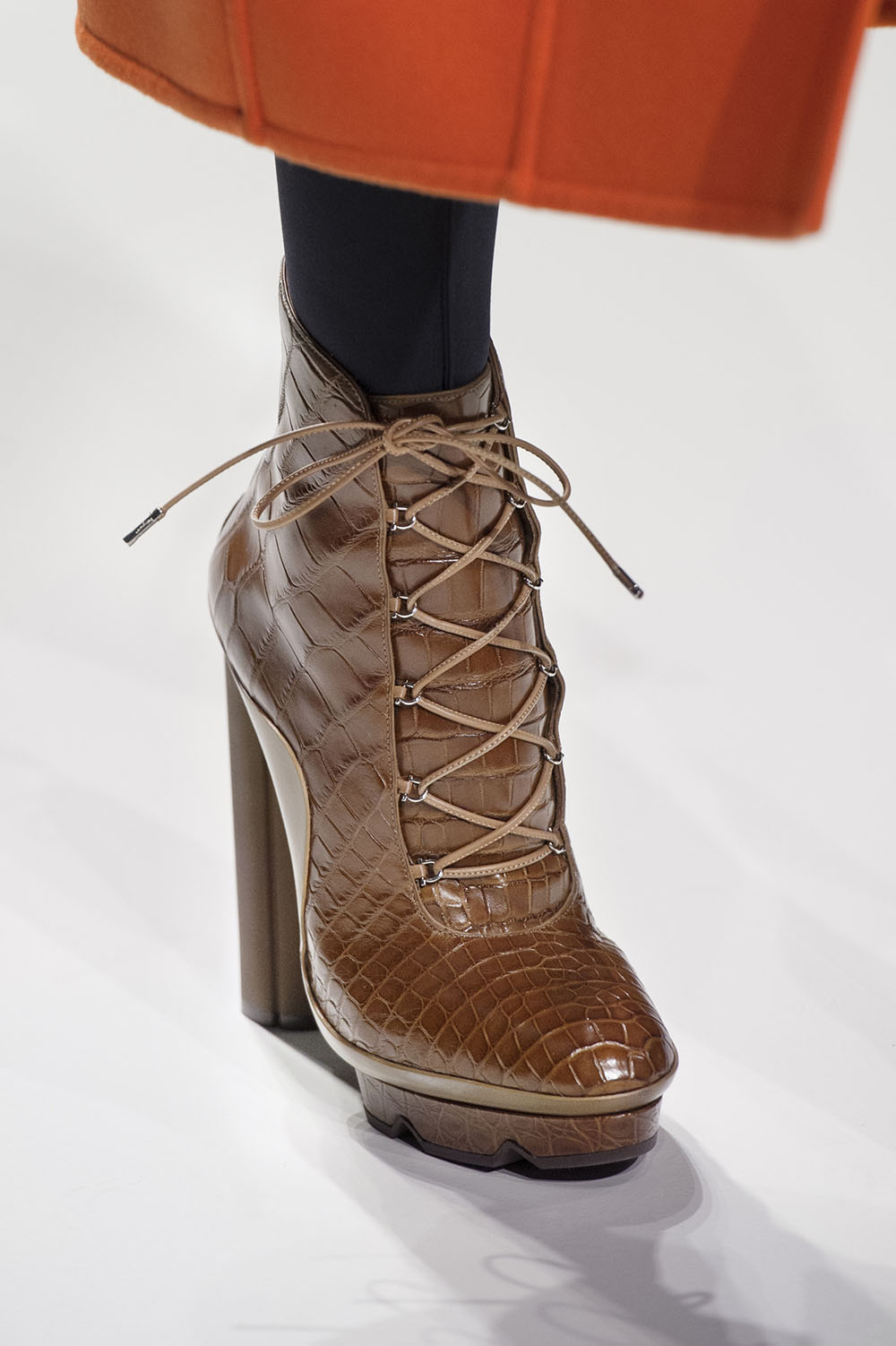 ウィメンズシューズのデザインディレクター Paul Andrew (ポール・ アンドリュー) によるランウェイシューズでは、今季ラバーのプラットフォームマウンテンブーツや、モダニズムアートの作品のような有機的なカーブラインを描くスカルプチュアヒールのアンクルブーツがイン。アイコニックな「ソフトソフィアバッグ」は、トランスペアレンドな PVC 素材をレイヤーすることでベーシックなデザインをランウェイ仕様にアップデート。マニッシュな「タリア・ガンチョ」や、アリゲーターを用いた半円形のクラッチバッグなど、ネクスト・アイコンバッグに相応しいフォトジェニックなアクセサリーが揃った。
