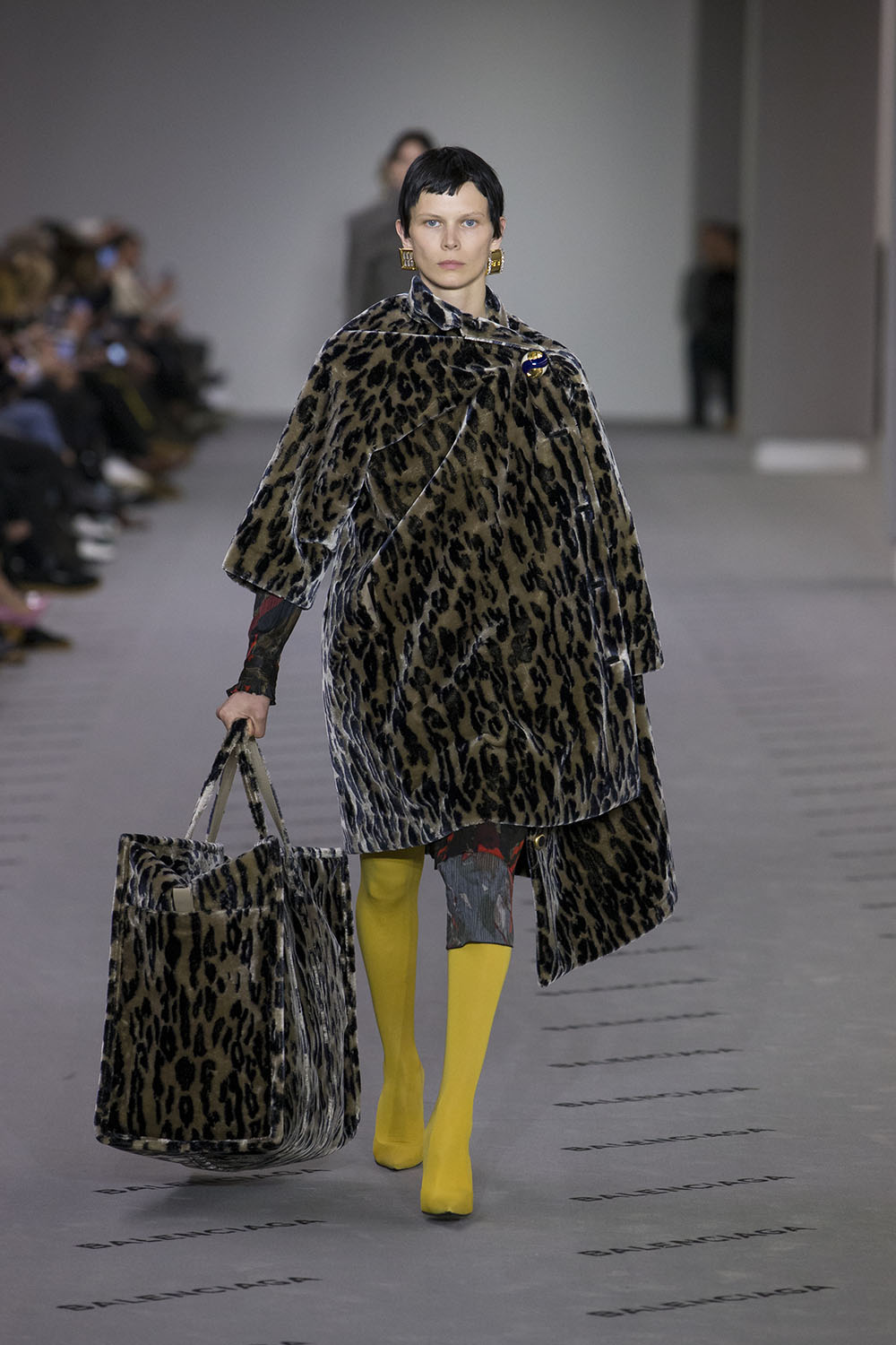 Balenciaga (バレンシアガ) 17年秋冬ランウェイが5日、パリにて発表された。メゾン創設から100周年を数える本年、アーティスティック・ディレクターの Demna Gvasalia (デムナ・ヴァザリア) は Cristóbal Balenciaga (クリストバル・バレンシアガ) のクチュールドレスのシェイプやボリュームを、インハウスの写真をもとに再解釈。クラシカルなグレンチェック、表情豊かなブークレ素材、レオパード、そしてブラックレザーなど様々な素材で仕立てられたルックには、先シーズンに引き続きパンツとハイヒールが一体型となったボトムも合わせられた。