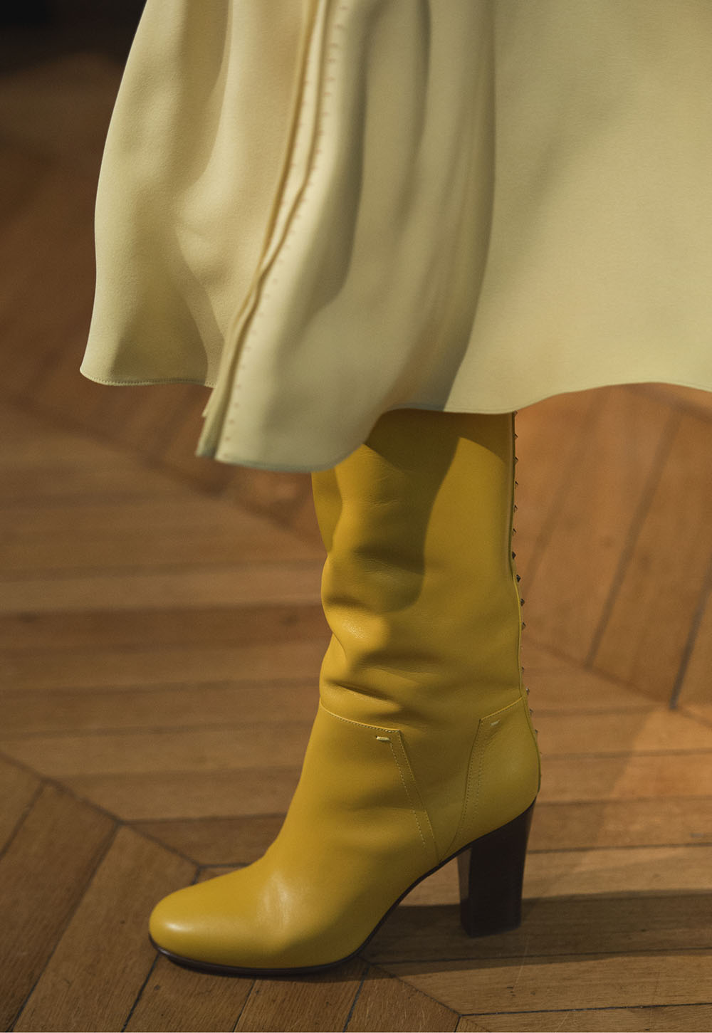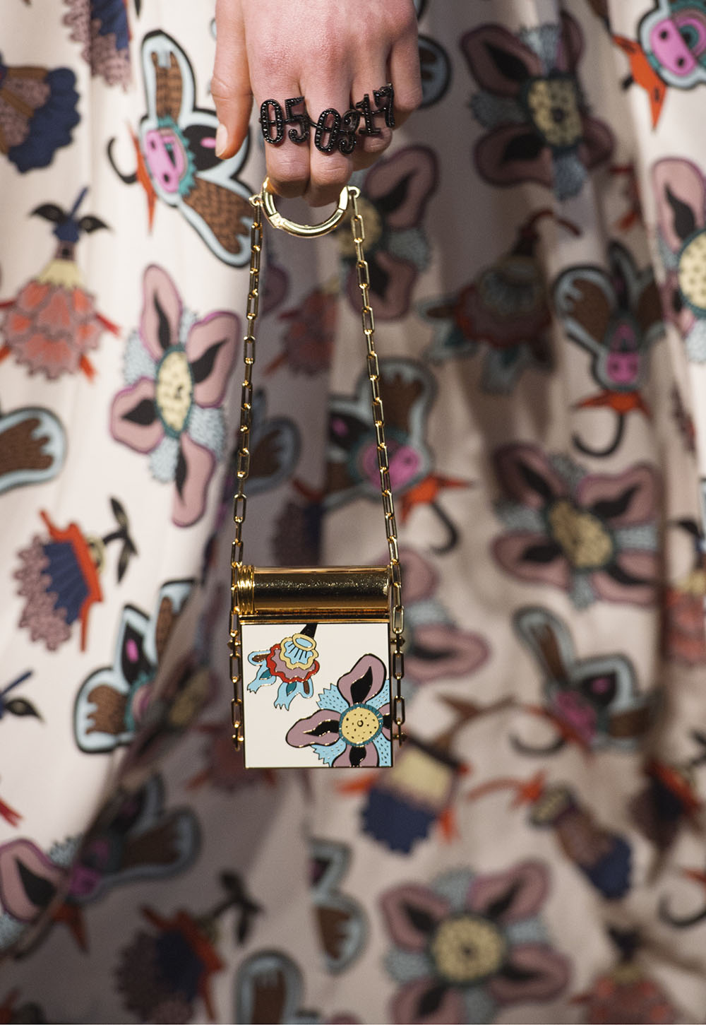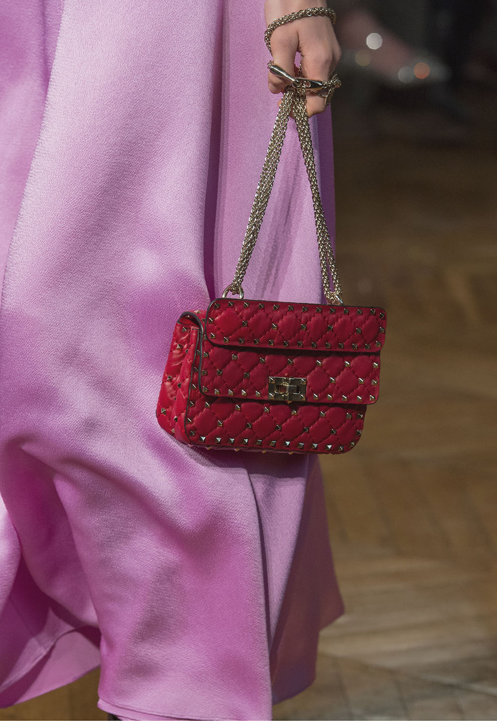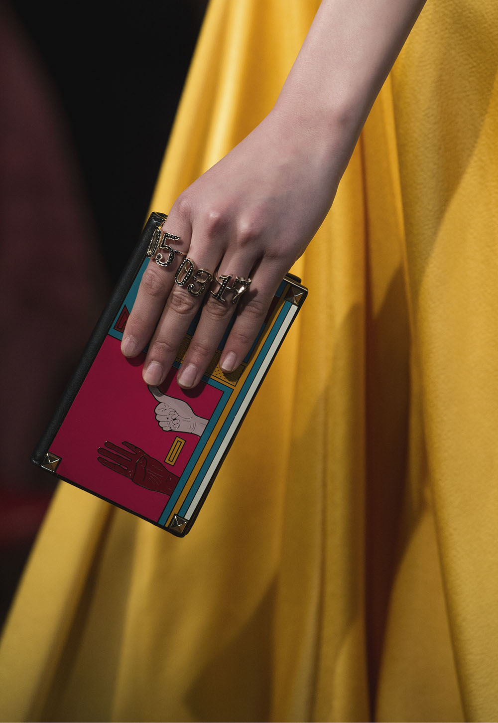 豪奢なワードローブ類に対し、コンバットブーツやアイコニックな「ロックスタッズ」をあしらったバッグなど個性的なアクセサリーがエッジの効いたスタイリングを提案。ラグジュアリーを極めた Valentino らしいスタイルに、どこかポップさとエフォートレスさが共存しているのが印象的だ。
