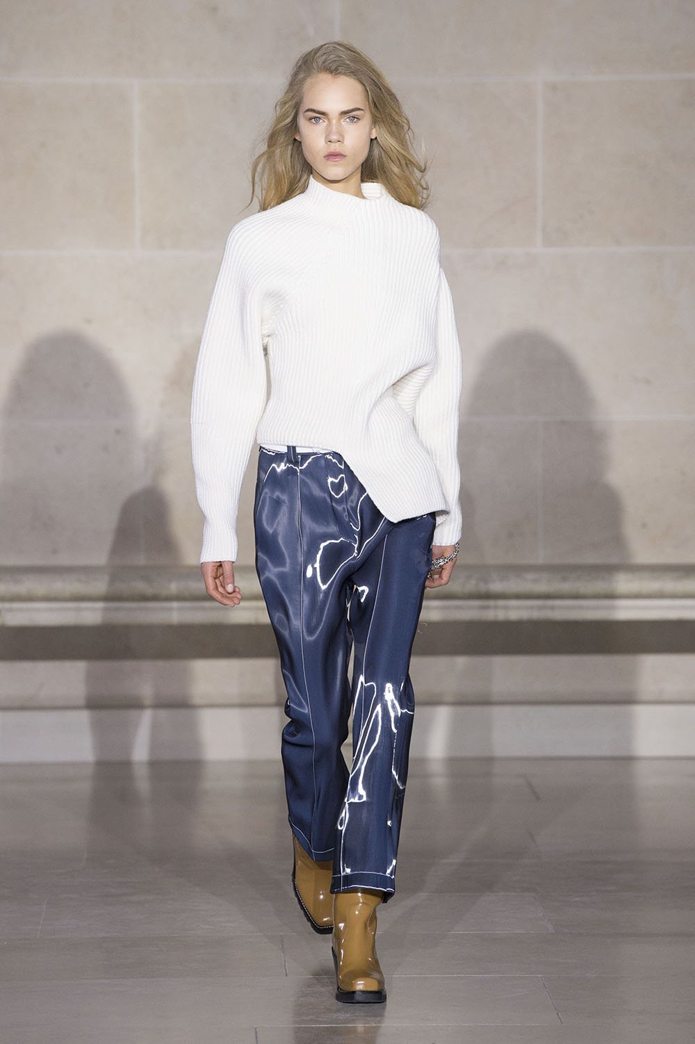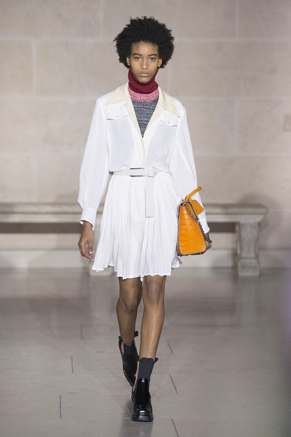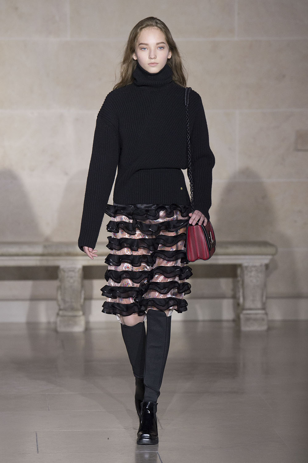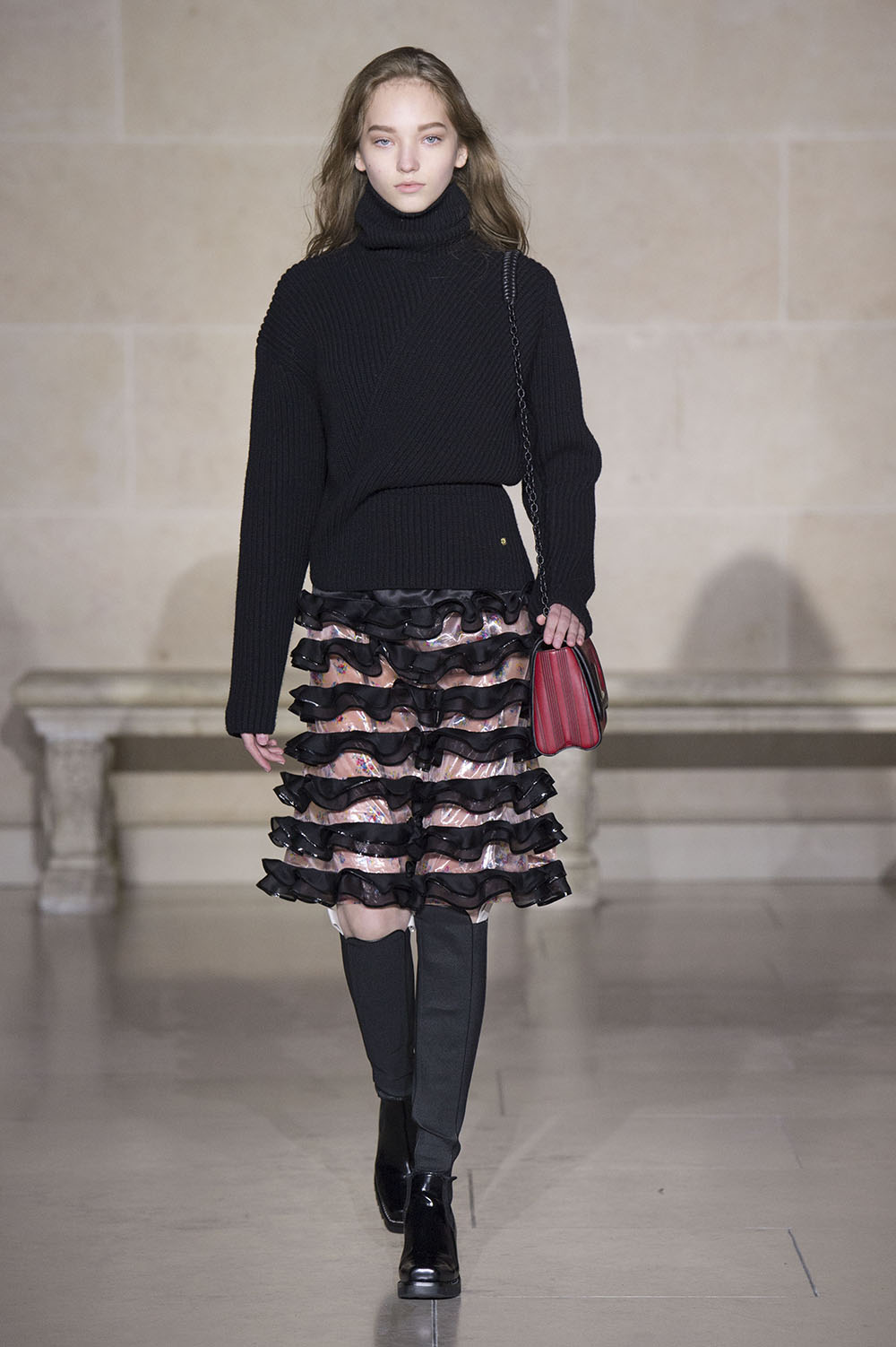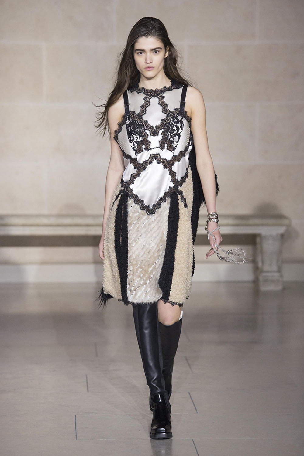 Nicolas Ghesquière (ニコラ・ジェスキエール) による Louis Vuitton (ルイ・ヴィトン) による2017-18年秋冬 ウィメンズ コレクションが7日、パリにて発表された。今季会場となったのは、ルーブル美術館内の「マルリーの中庭」。中世フランスの趣を色濃く残す会場には、17~18世紀を代表する芸術作品が並び、荘厳な趣を作り出している。