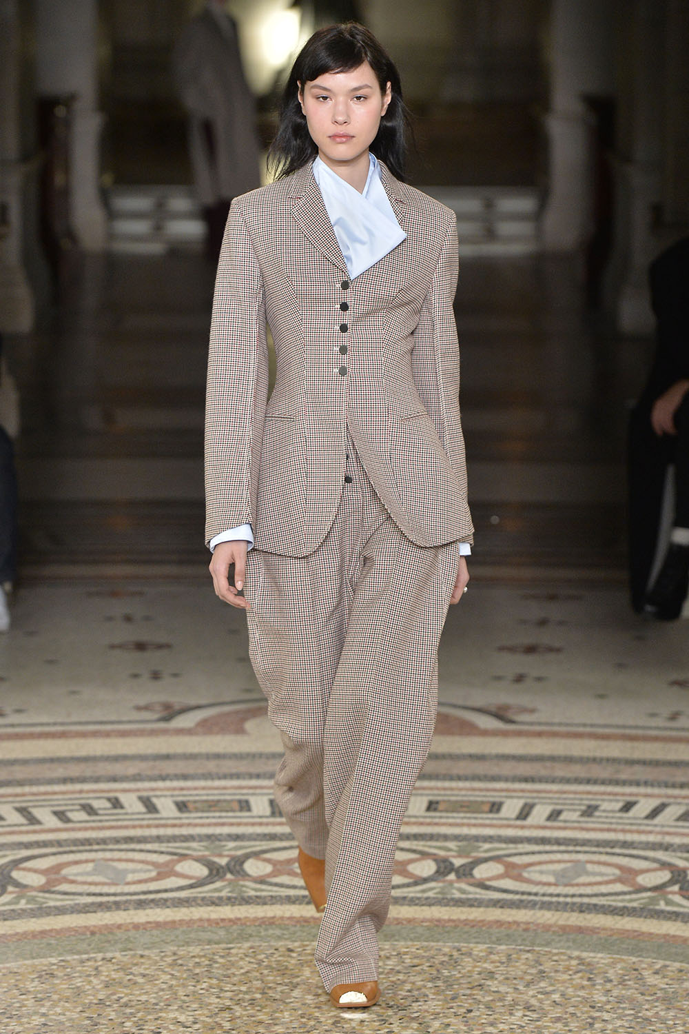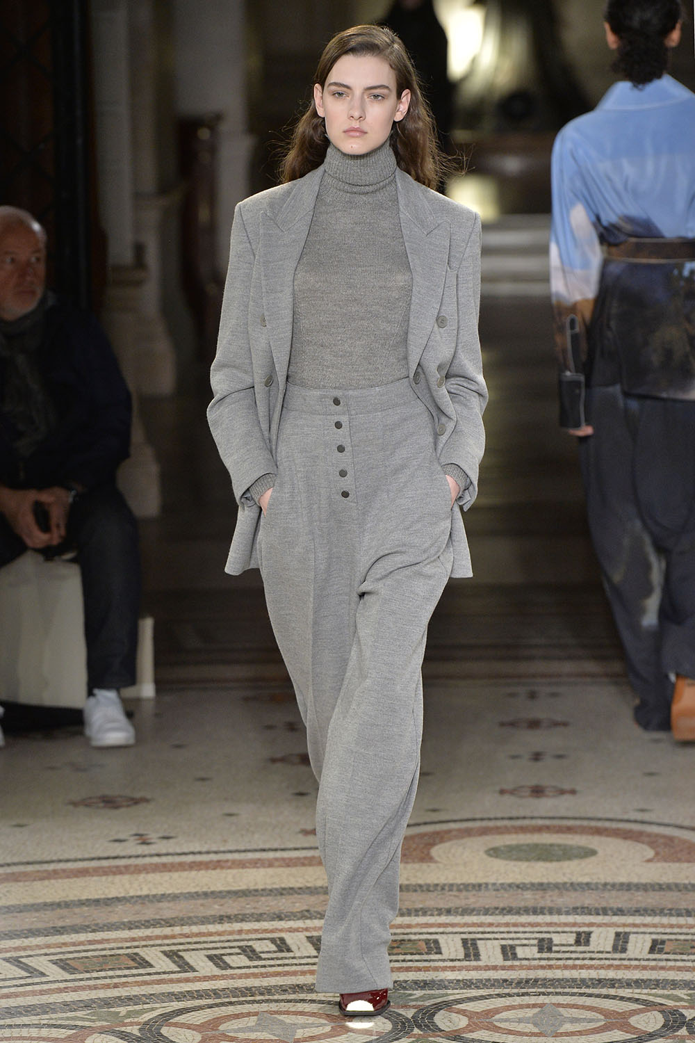 パリ ファッションウィーク期間中にあたる6日、Stella McCartney (ステラ・マッカートニー) による2017年ウィンターコレクションが発表された。英国の伝統的な乗馬ルック、そしてテーラリングに着想を得た今季、ランウェイでは39体のルックが登場。パッド入りのパワーショルダーやウエストにシェイプを聞かせた5つボタンのブレザー、そしてトロンプイユのように3つのラペルが規則的に並ぶトリプルブレストのジャケットワンピースなど、シルエットやディティールでだまし絵のような遊びを加えたデザインが印象的だ。