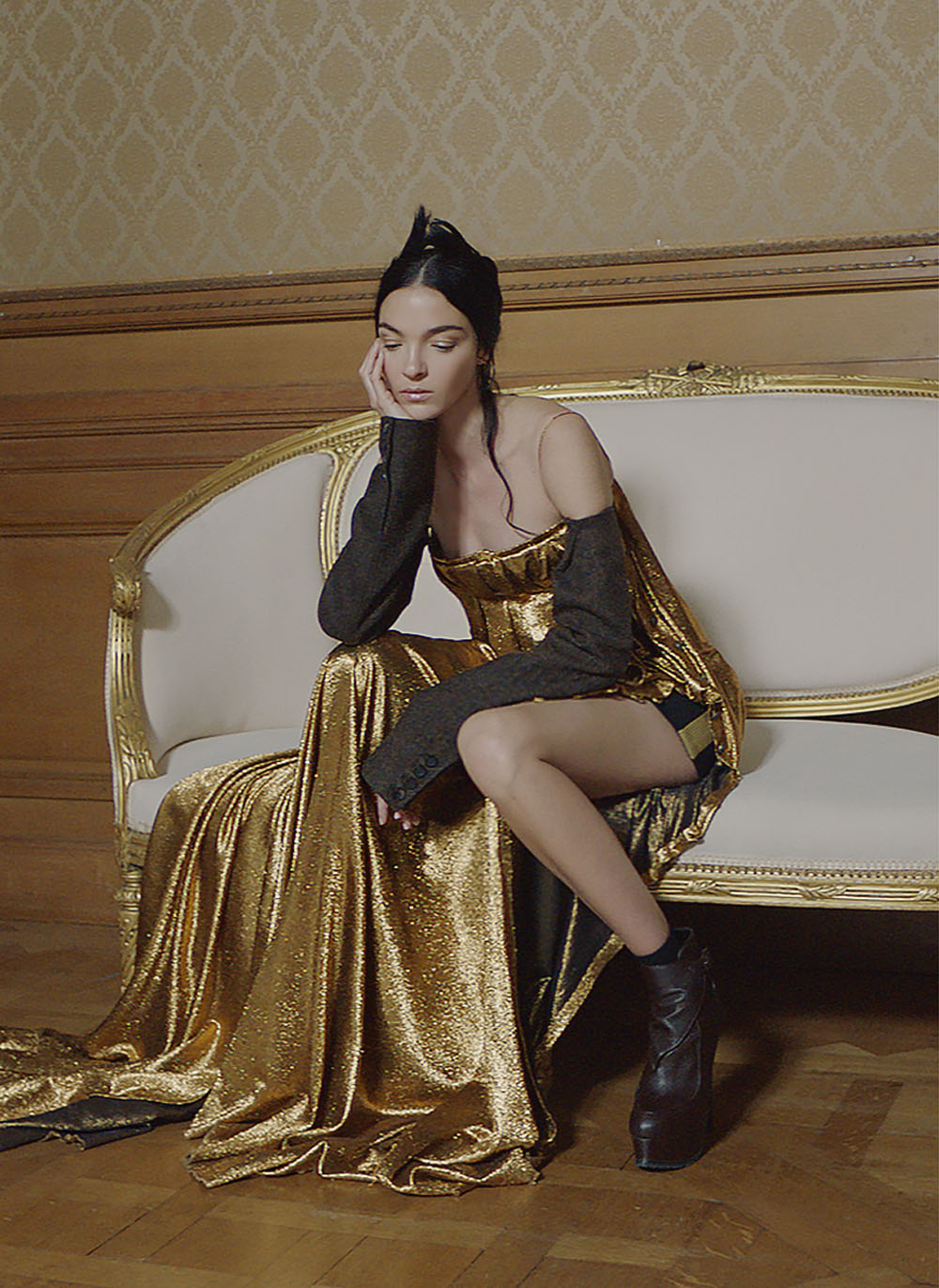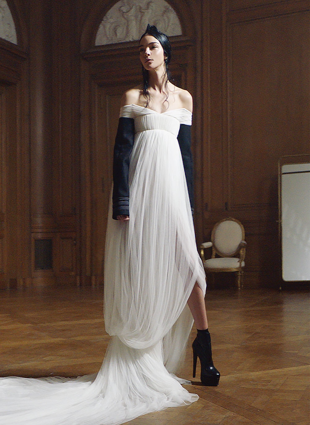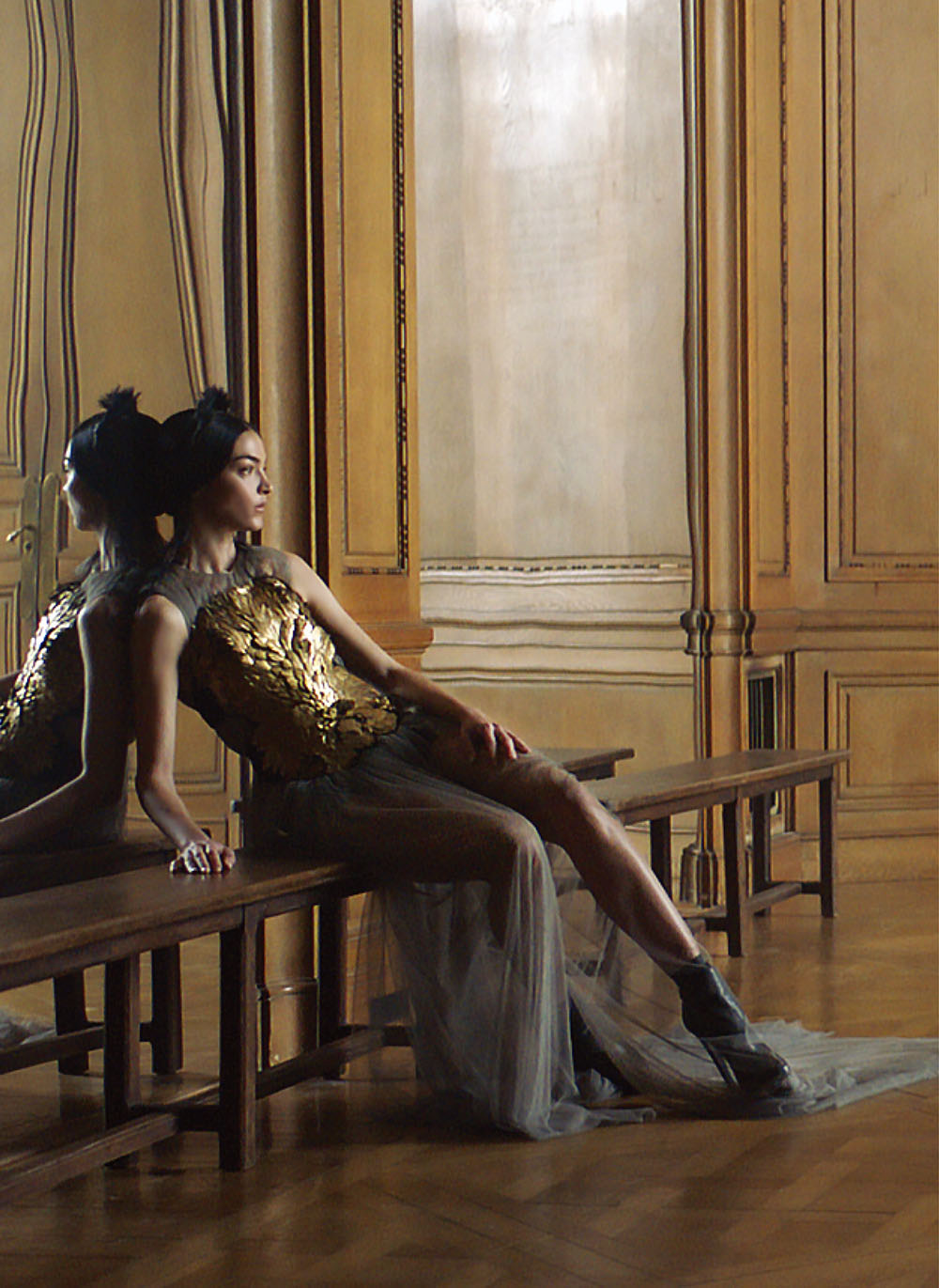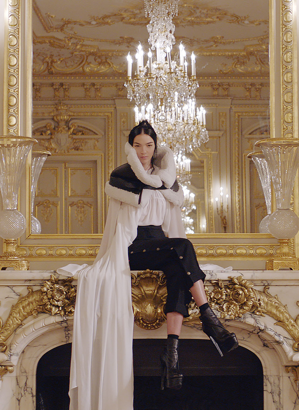 また今回の発表と時を同じくして、最新の2017-18年秋冬 ウィメンズウェア コレクションを発表。フランスの宮廷文化にインスパイアされたというコレクションでは、スタイリストに Panos Yiapanis (パノス・イヤパニス)、フォトグラファーにロンドンの気鋭 Yvan Fabing (イヴァン・ファビング)、そしてモデルに Mariacarla Boscono (マリアカルラ・ボスコーノ) を起用し、荘厳なバロック建築を舞台にルックブック、キャンペーンフィルムが撮影された。
