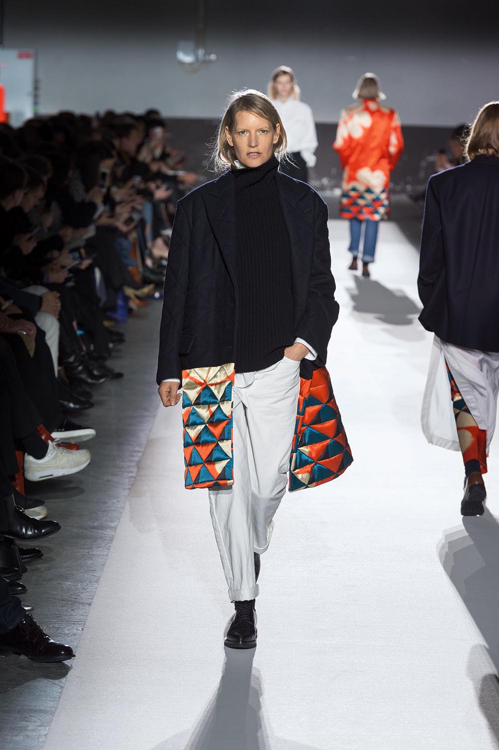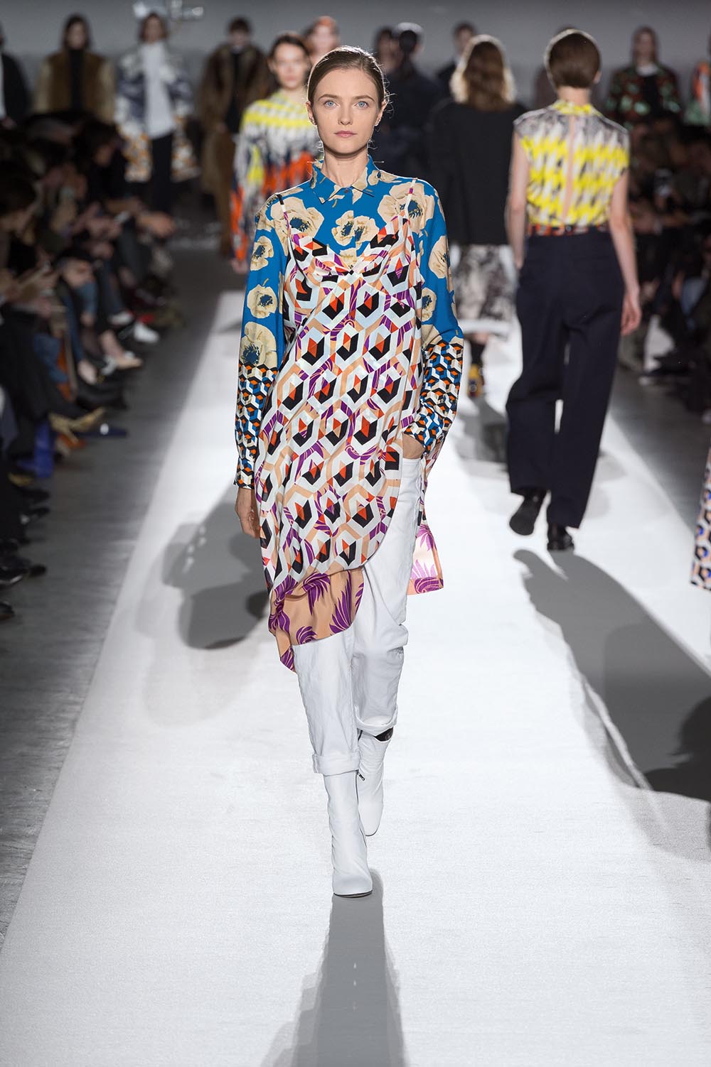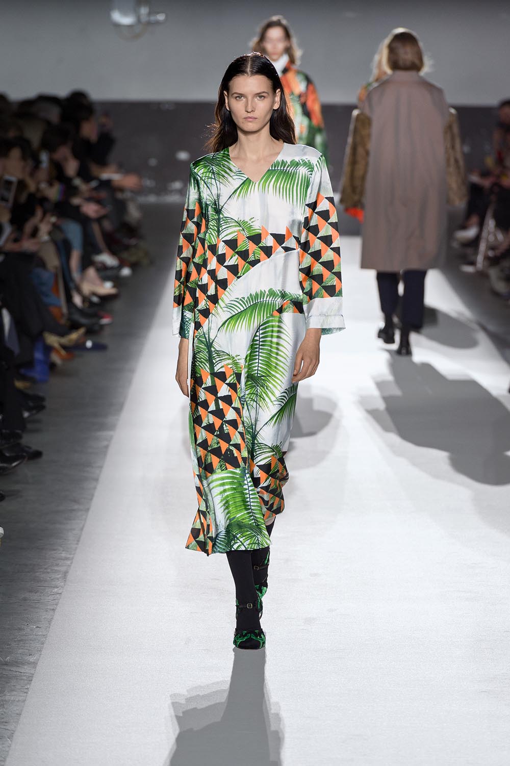 パリ、ファッショウィーク期間中に当たる1日、Dries Van Noten (ドリス ヴァン ノッテン) による2017-18年秋冬 ウィメンズウェア コレクションが発表された。1991年にパリで初めてのメンズショーを発表してから26年、通算100回目のランウェイショーとなる今季、コレクションではブランドの DNA であるプリント、シルエット、精巧なディティールワーク、サウンドトラック、そしてモデルという5つのエレメントにフォーカス。63体のルックでは、アースカラーやモノトーンのシックなテーラリングと、これまでのコレクションの中から選ばれたプリントのリワーク、そしてイリデッセントな輝きを放つメタリックファブリックなど異なる表情のマテリアルを巧みに折り合わせたスタイリングを披露。Nadja Auermann (ナジャ・アウアマン)、Amber Valletta (アンバー・ヴァレッタ)、Carolyn Murphy (キャロリン・マーフィー) など往年のトップモデルのオンパレードは、アニバーサリーを控えめに、それでいて力強く祝福した。