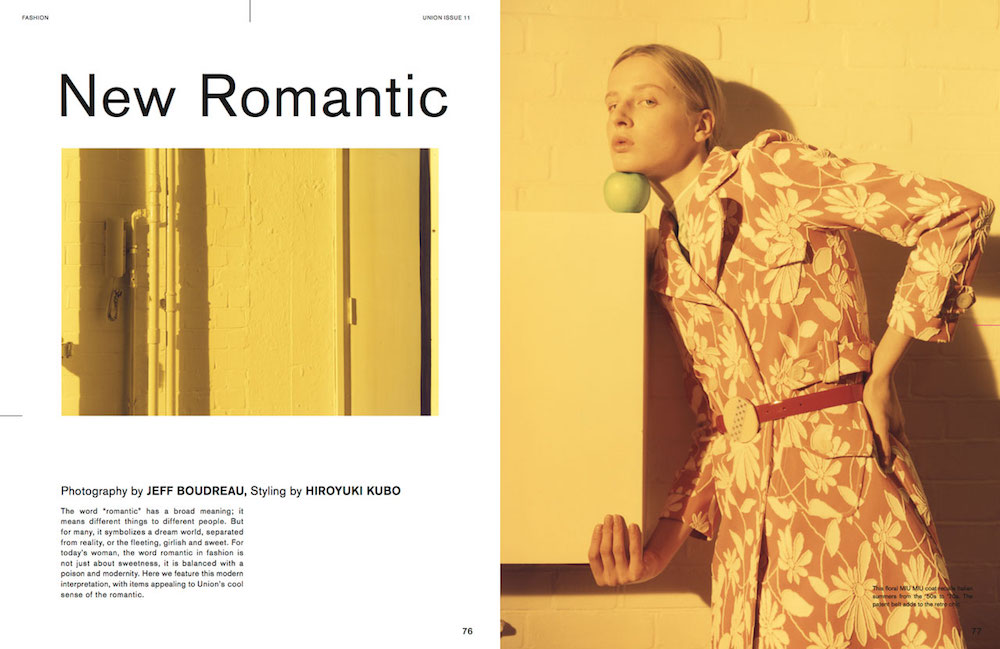 東京発のインターナショナル・ファッションマガジン『Union (ユニオン)』。その11号目となる2017年春夏号が3月23日 (木) に発売される。編集長を務めるのはアートディレクター・スタイリストの HIROYUKI KUBO とスタイリストの百々千晴。今回もホンマタカシや Ola Rindal (オラ・リンダル)、Mark Borthwick (マーク・ボスウィック) など、国内外を代表するフォトグラファーたちが参加している。