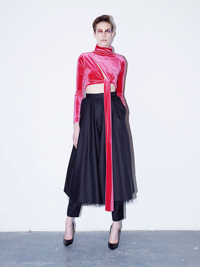 Marta Jakubowski was born in Poland and grew up in Germany. She graduated with an MA from the Royal College of Art in 2014 and gained experience with Hussein Chalayan, Alexander Wang, Jonathan Saunders and Bruno Pieters before setting up her own label.