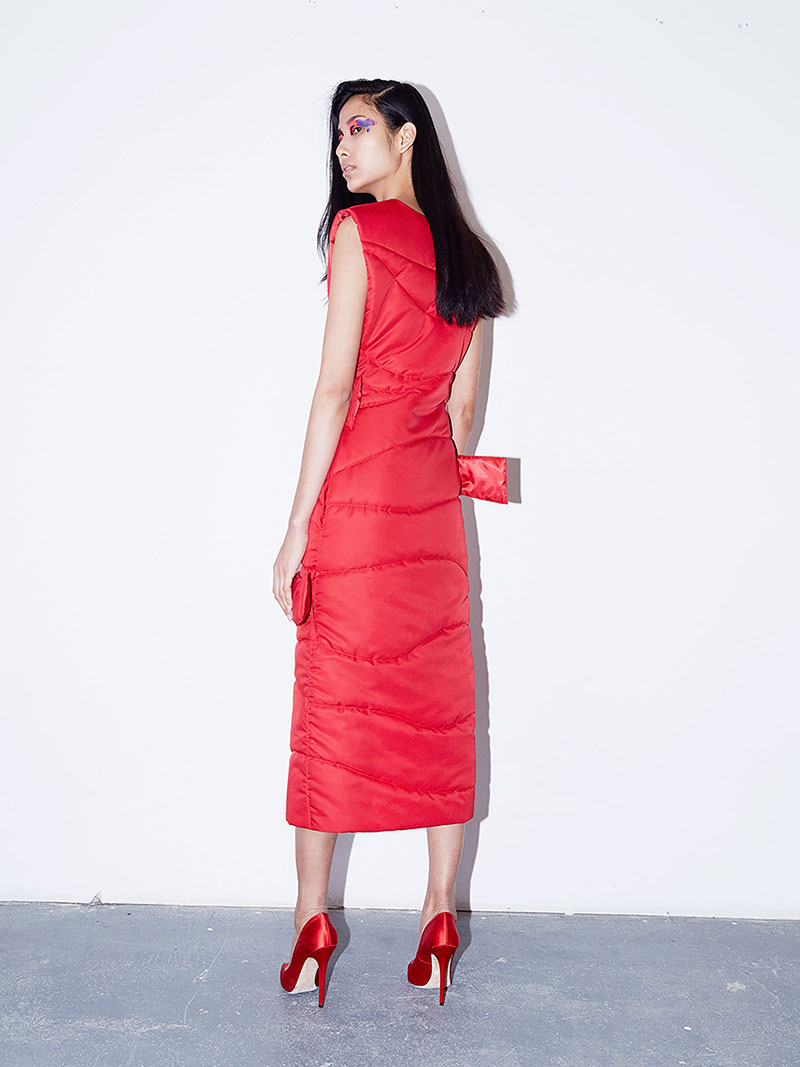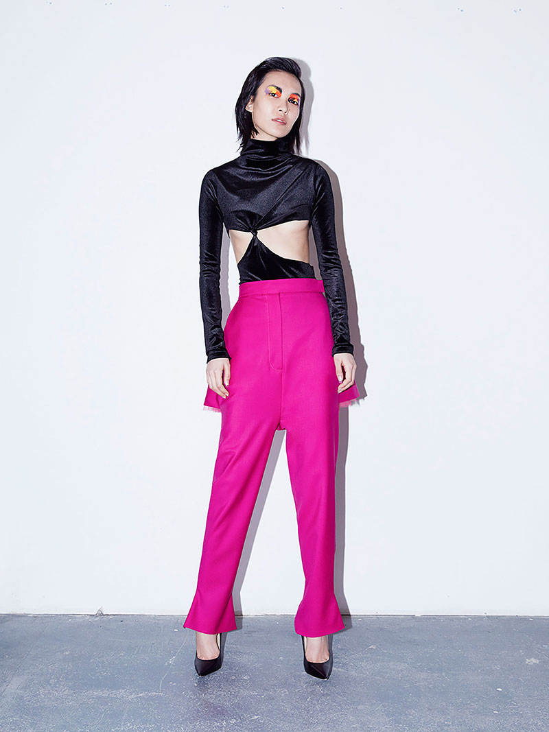 —The Autumn/ Winter 2017 is the fifth collection since your graduation from RCA. I feel that your creation delivers a coherent message while exploring different themes, and, at the same time, that it is becoming brighter and more colourful with each season. Especially in this collection, colours like purple and orange, which were not seen in the past pieces, are applied. What is the theme of the AW17 collection and what does it mean to you?