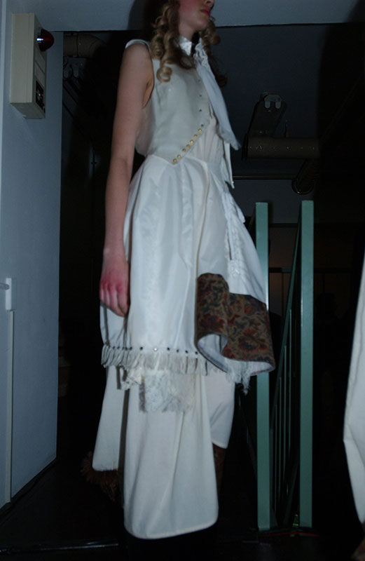 その時に助けてくれたのが、ドラムカンの田村孝司さんでした。エスモードの先輩にあたる LAD MUSICIAN(ラッドミュージシャン)の黒田雄一さんに紹介していただいた演出家で、「え?お金ないの?大丈夫、任せといて!なんとかなる!」といってくださった。すごいですよね。椅子は、ガソリンスタンドで譲ってもらった空き缶で代用したり、おしり痛いからクッション作ろう、とか。限られた中でいろいろ工夫しました。