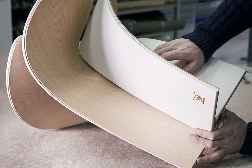 Louis Vuitton「Blossom stool」(2016-2017) / Louis Vuitton を象徴する花びらのモノグラムをイメージしたシンボリックなスツール。まるで蕾から花びらが開くように、自然の構造からデザインされている。 Louis Vuitton が長い歴史の中で培ってきた、木や革の技術を用いた職人技。アイコニックな力強いメッセージをもつ、 Louis Vuitton の歴史から未来へ、時間を旅するオブジェ。