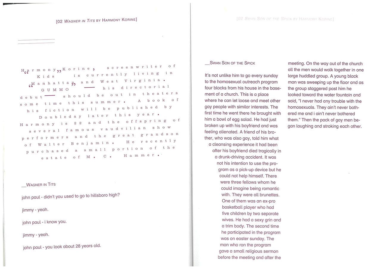 鈴木:初期の号に Harmony Korine (ハーモニー・コリン) の散文が入ってたりしますが、ああいうのは映画を観てオファーするんですか?