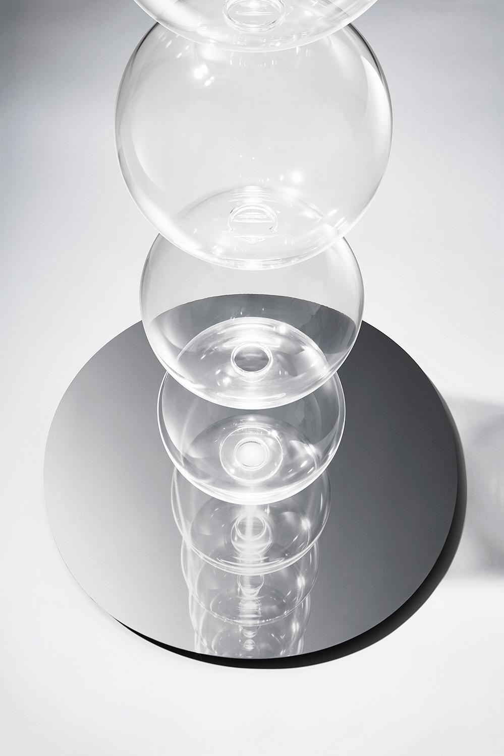 今回使用したアクリルは、表面の硬さがガラスとは違うから、微妙に透明感や反射の仕方が違いますね。でも、置かれたときに、全然表情が変わらない彫刻というよりは、周りのものが映りこんで、そこにある他のものと一緒になったらいいなと思いました。それは建築でやっていることとも似ている部分があります。透明だと、映っちゃう場合と透けちゃう場合と、状況によって色々あるから面白いんです。