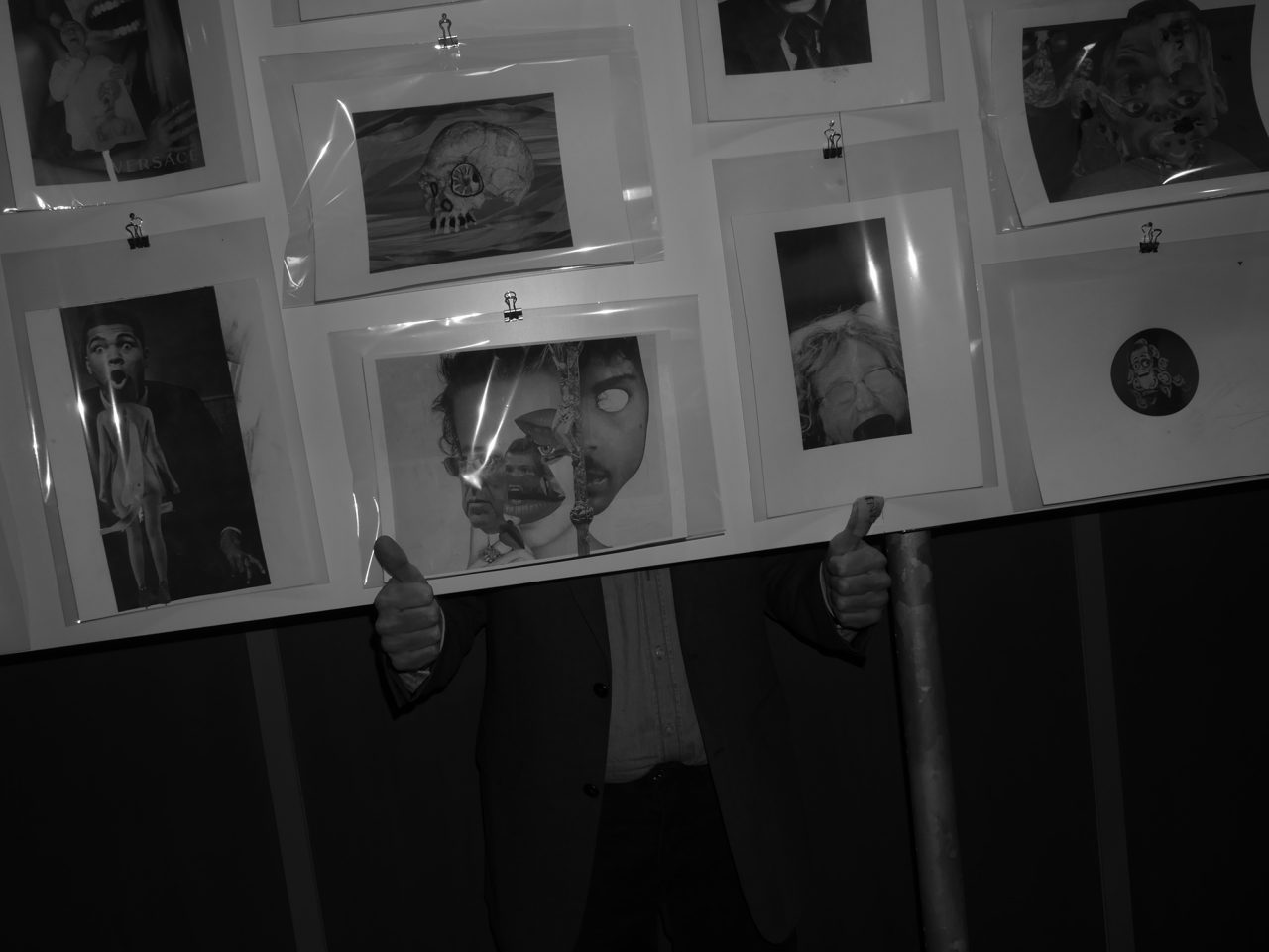 C: 外の世界につながるいいチャンスをもらったと思った。家にこもって何かを描き続けているだけだと、発展性がない。自分から外に行って世界を見ないとね。Andy Warhol (アンディ・ウォーホル) とBasquiat (バスキア)、荒木経惟と Juergen Teller (ユルゲン・テラー)…… いろんなアーティスト同士がコラボレーションをしていて、すごくいい。僕の場合は、フォトグラファーの Estelle Hanania (エステル・ハナニア) とのコラボレーションが長かった。僕がパフォーマンスしたり絵を描いたものを、Estelle が写真におさめる。動きがあったり、ちょっと違和感があったり、不思議なクリエイションの写真が好き。