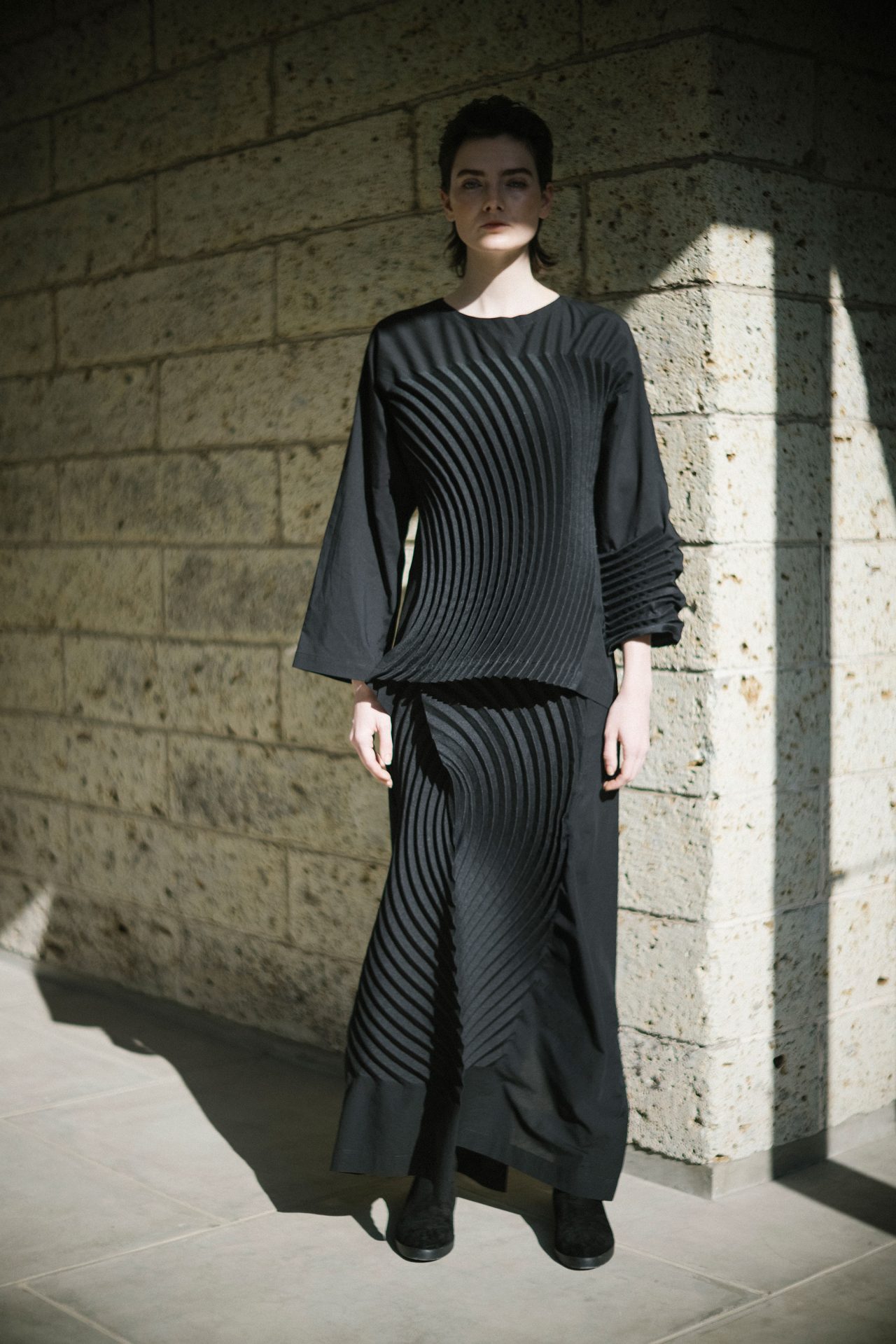 そうです。プリーツの知識はなかったのですが、やってみるとすごく刺激的でした。服づくりにおいて、数あるテクニックのほんの1つの小さいことだけで、こんなに表現が広がって前に進んでいけるのかと気づきましたし、服づくりに対する姿勢が柔軟になったと思います。