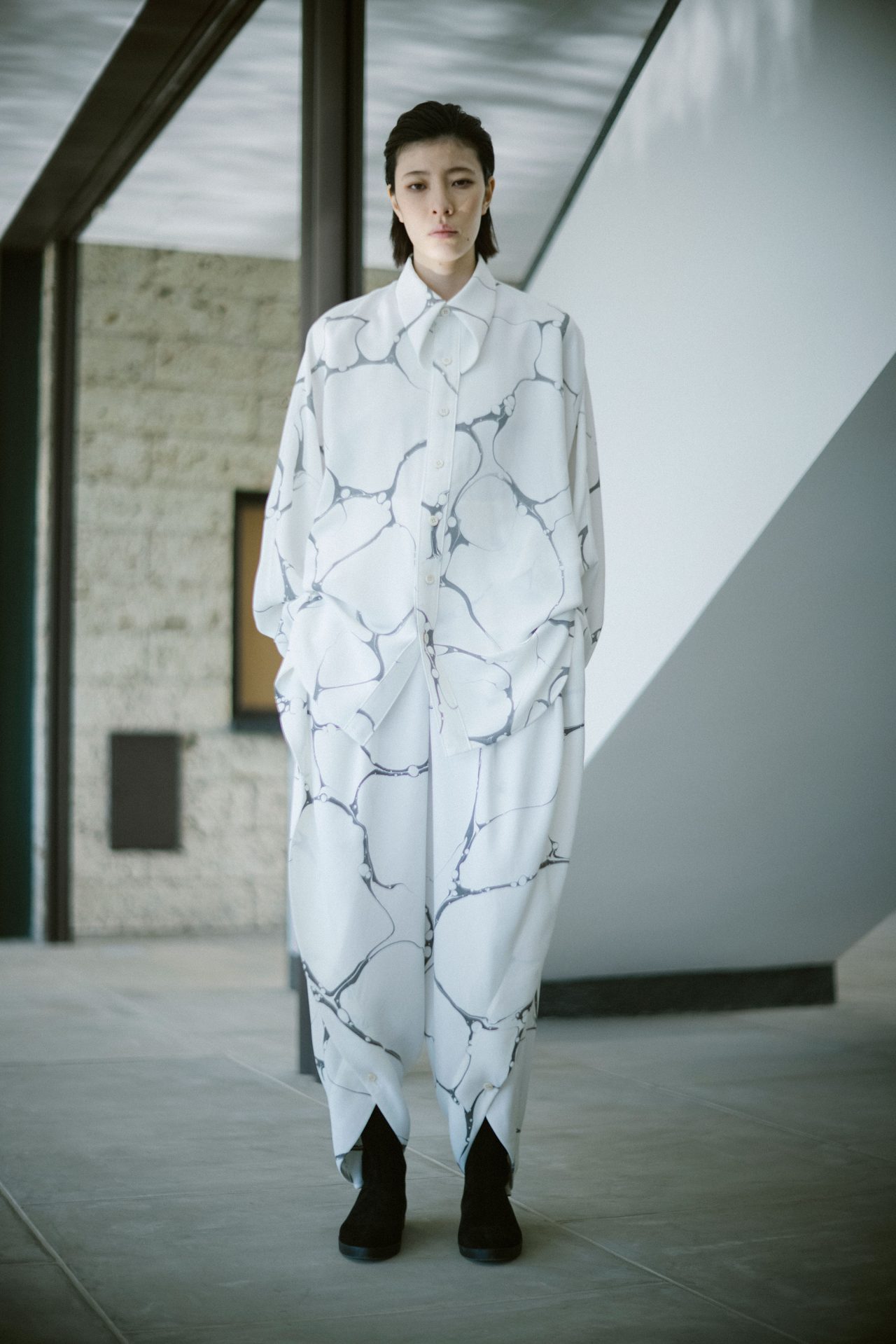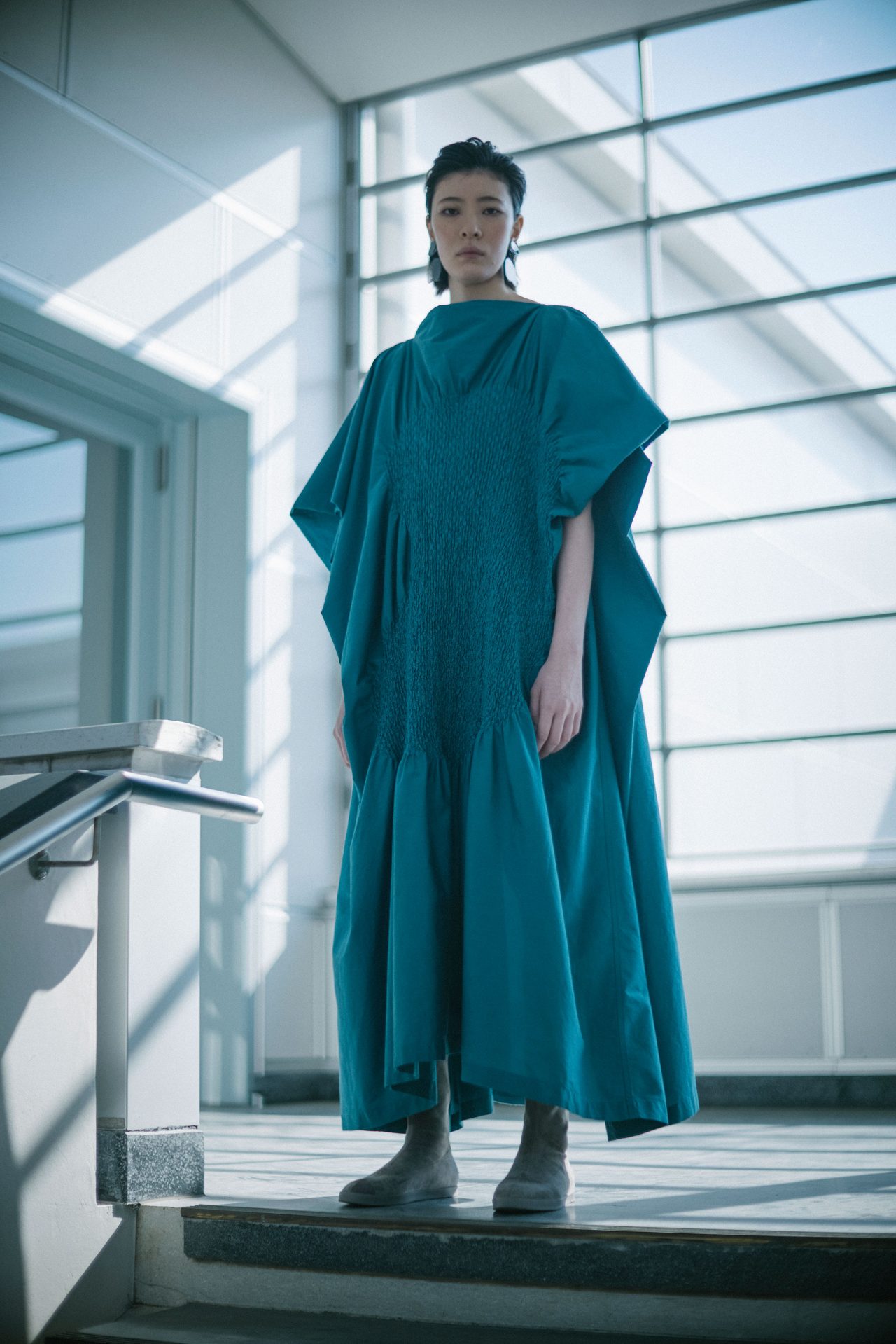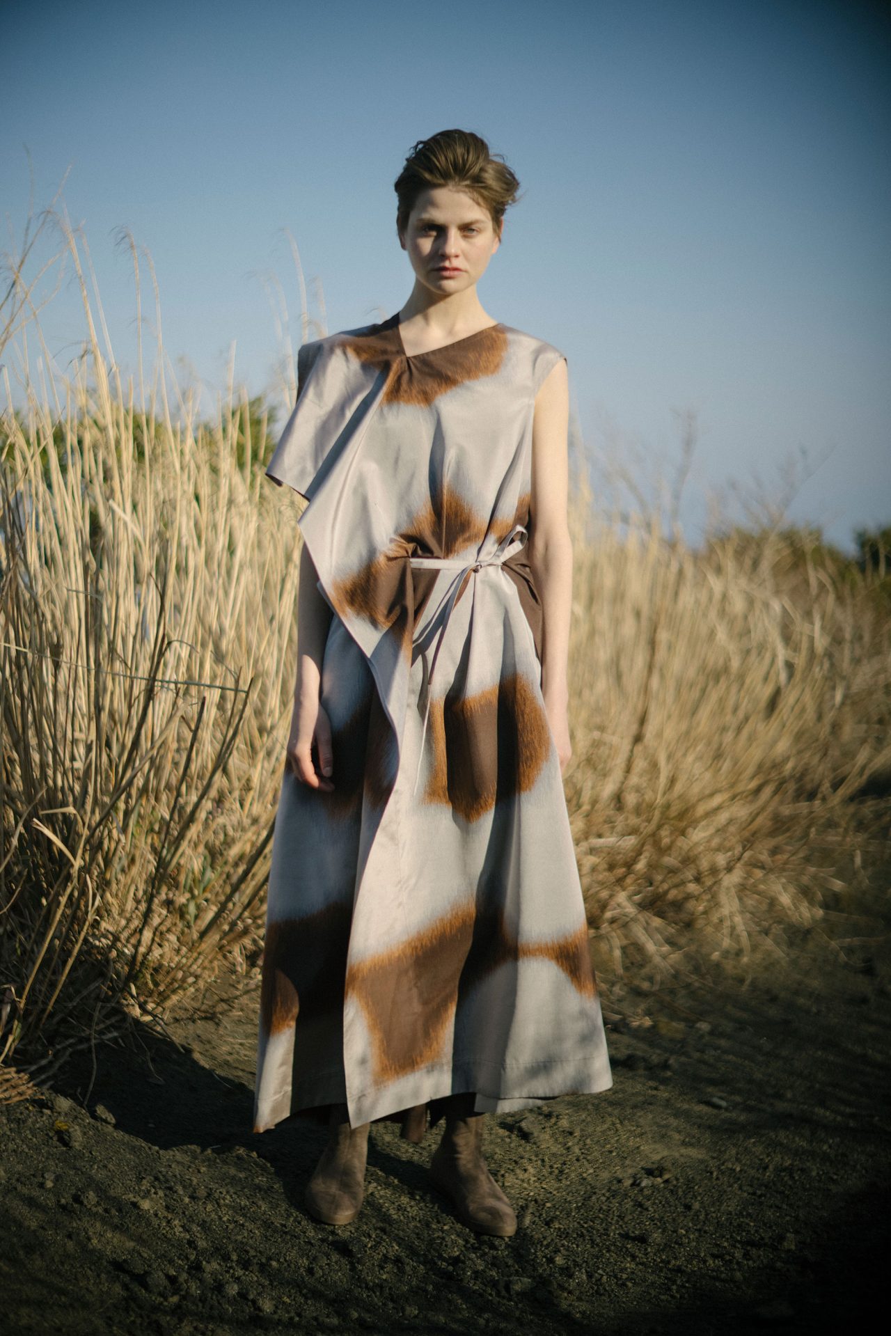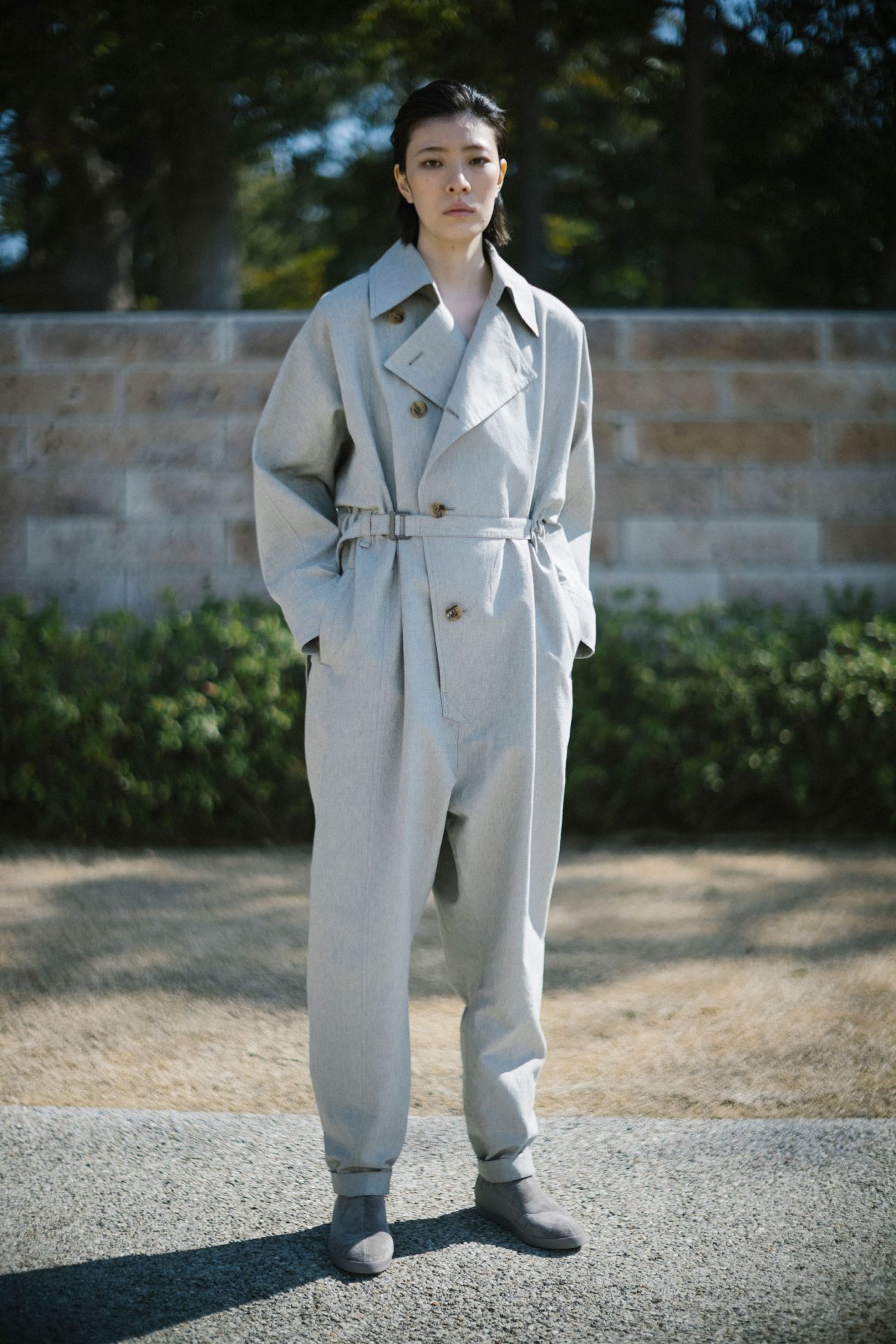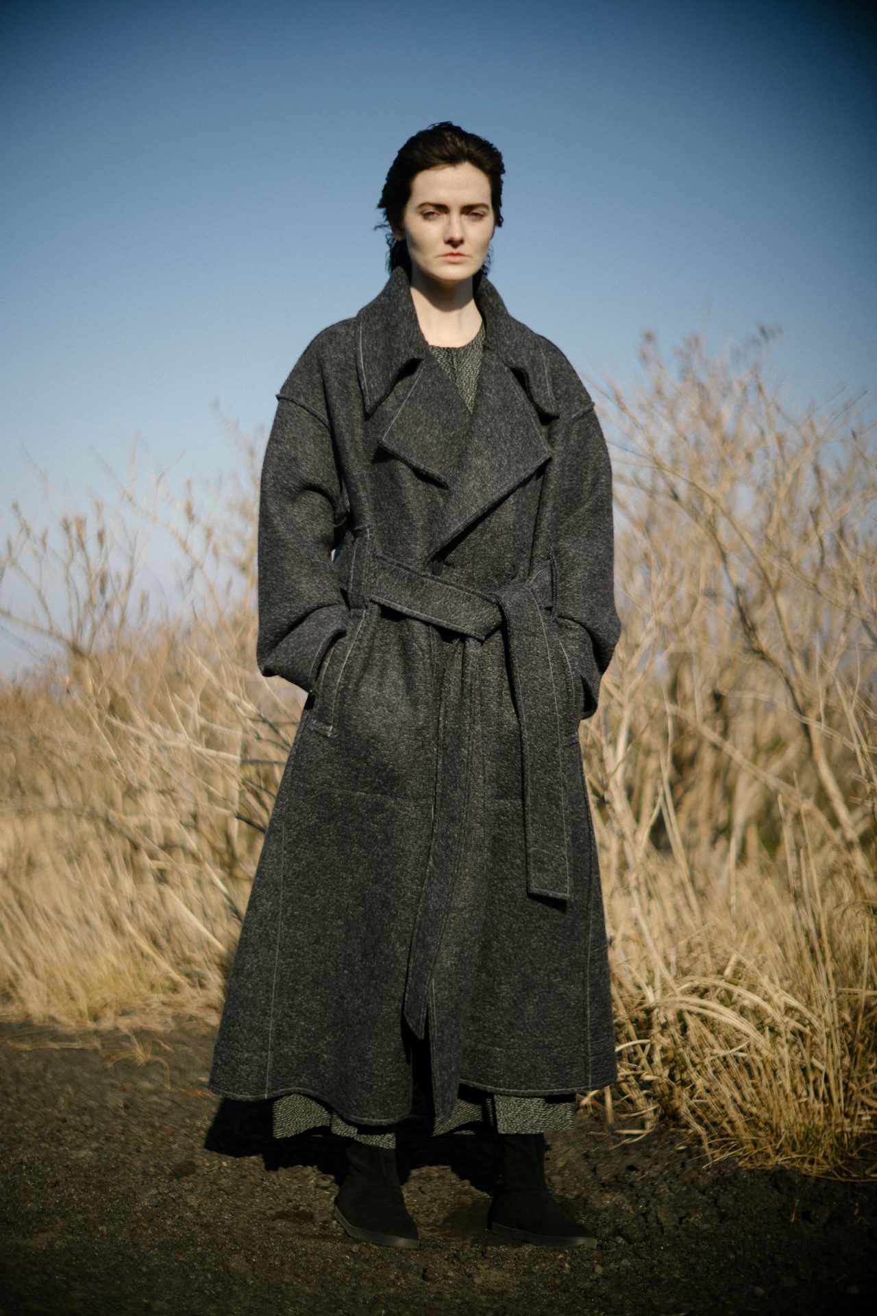 今回のコレクションは落ち着いていて堂々としたものにしたかった。イメージとしては、写真と映像の中間みたいなところを追求したくて、映像作家としても活躍なさっている写真家の瀧本幹也さんに、今回スチルとムービーの両方をお願いしました。制作中の服を瀧本さんに見てもらい、イメージに合いそうな場所を見ながら意見交換をし、撮影場所を決めました。