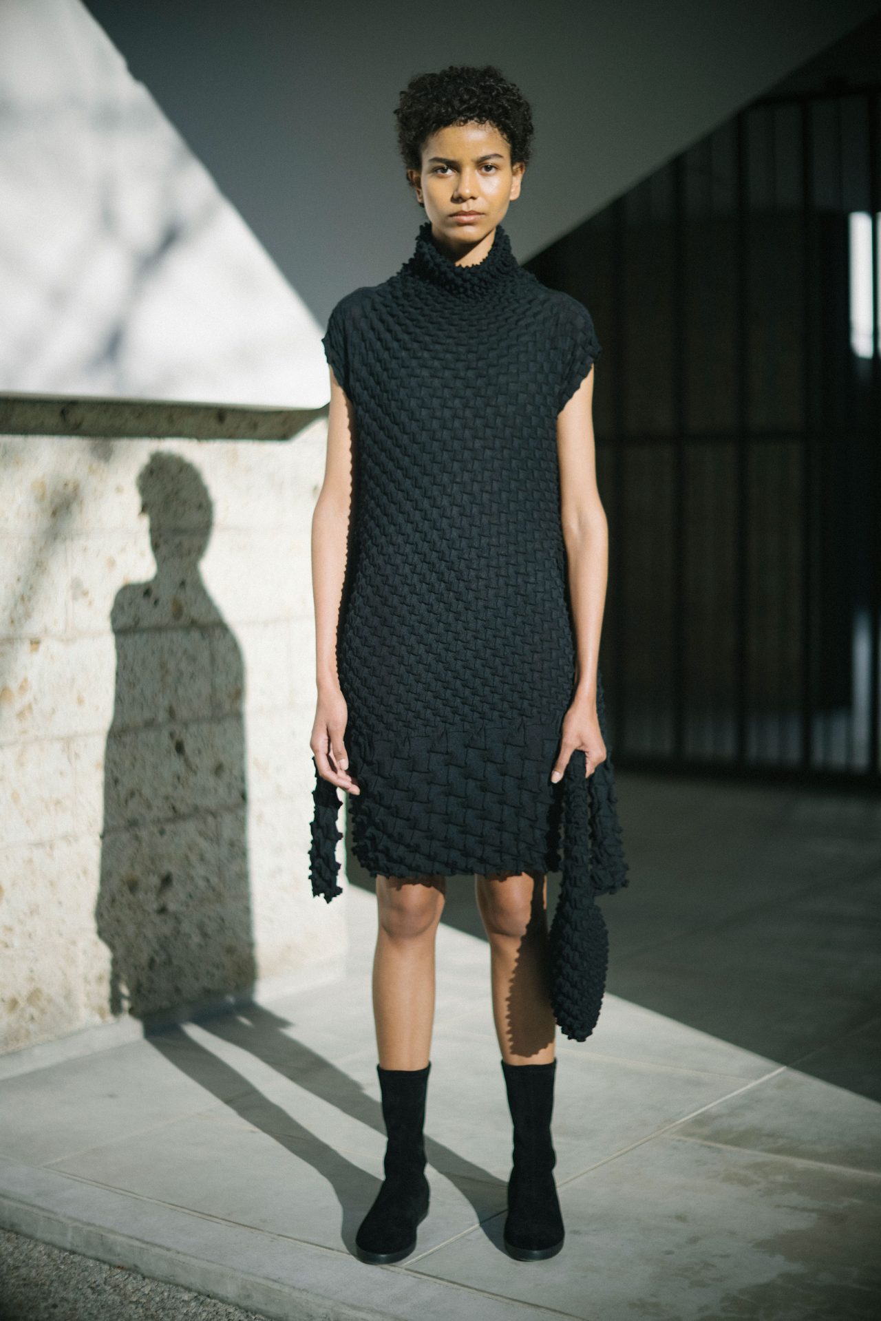 そうかもしれません。ひとつ前のシーズンの “UNPACK THE COMPACT” は、小さく畳んだ服をパーっと箱に詰め込む絵がまず頭に浮かんで、それを具現化するためのアプローチを考えました。2年前のデビューシーズンは、手をつないで踊っている人たちを自然光が包んでいる夢の世界のようなイメージがパッと浮かんで、そのための空間選び、素材開発などを、養ってきた経験からいろいろ引き出して表現しました。