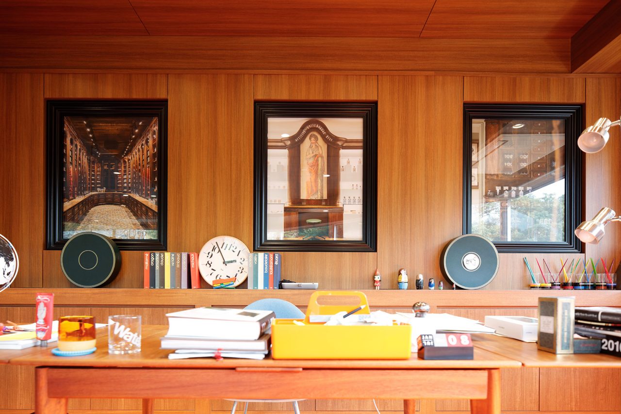 オフィスデザインは、効率性と調和を兼ね備えたものでなければいけない。オフィスは1日のうち何時間も過ごす家のようなものだから、僕にとっては自分の好きな装飾に囲まれていることが重要。そのほうが、自分にとってもチームにとっても刺激になるしね。僕が選ぶのは、美しく機能的なもの、アンティークのチェアやオフィスなどは自分でデザインしたんだ。僕のオフィスは小さな博物館のようなもので、創作活動で集めたものをすべて置いてる。