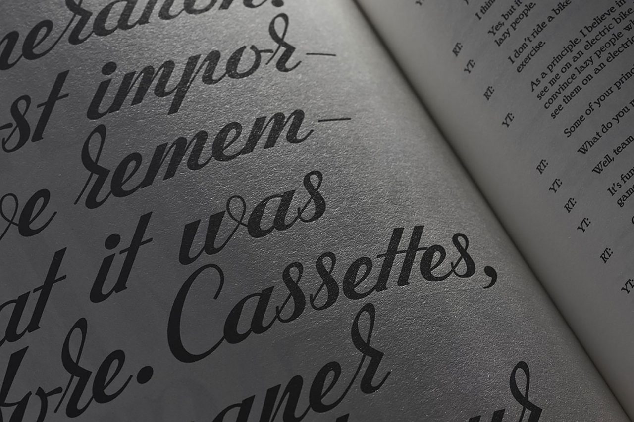 この雑誌は、インタビューから全部自分でやったんだ。もともとは自分が新しく作ったフォントを見せたくて、作り始めたんだけど、雑誌らしい雑誌は作りたくなくて。凝り固まらず、自分の好きなことを書きたかった。当時、日本とスイスの共通点を面白いと思っていて、「じゃあそれについて雑誌を作ろう。誰に話を聞こうかな?」って、思い浮かんだ15人にメッセージを送ってみた。そうしたら、10人が引き受けてくれて。みんな友達だったから、普段はインタビューで話さないようなことも話してくれた。友達にインタビューする時は、職業に関係なく、彼ら自身についての話を聞くんだ。ただ正直、彼らが話していたことはどうでもよくて、「録音した会話をどう印刷しようかな」って感じだった。
