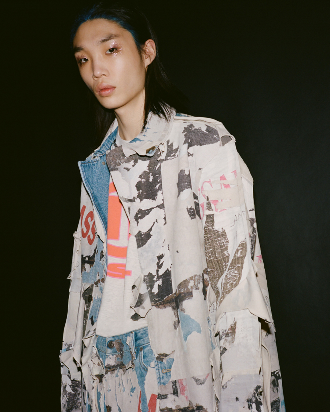 「DIESEL では、素材、色、加工、グラフィックの実験を行いながら、基本はできるだけシンプルな形を保ち、人々が簡単に身につけられるようなコレクションを目指します。DIESEL が持っているデニムのノウハウはとんでもないもので、だからこそもっともクレイジーなものを作ることができる。一方 Y/PROJECT では、よりシンプルな生地を使いながら、かなり実験的な方法で衣服を構成しています。」