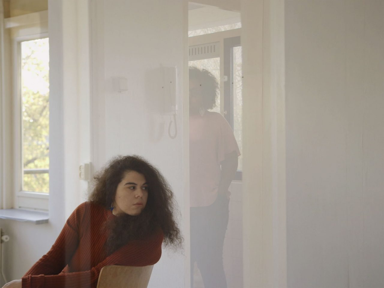 オランダで音楽活動や文筆活動を行う若い女性たちを、改装中のアーネム博物館で撮影。それぞれの異種混交的なルーツや性についての表現が繊細に交差する。ウェンデリン・ファン・オルデンボルフ《Hier./ヒア》2021 年、映像スチル