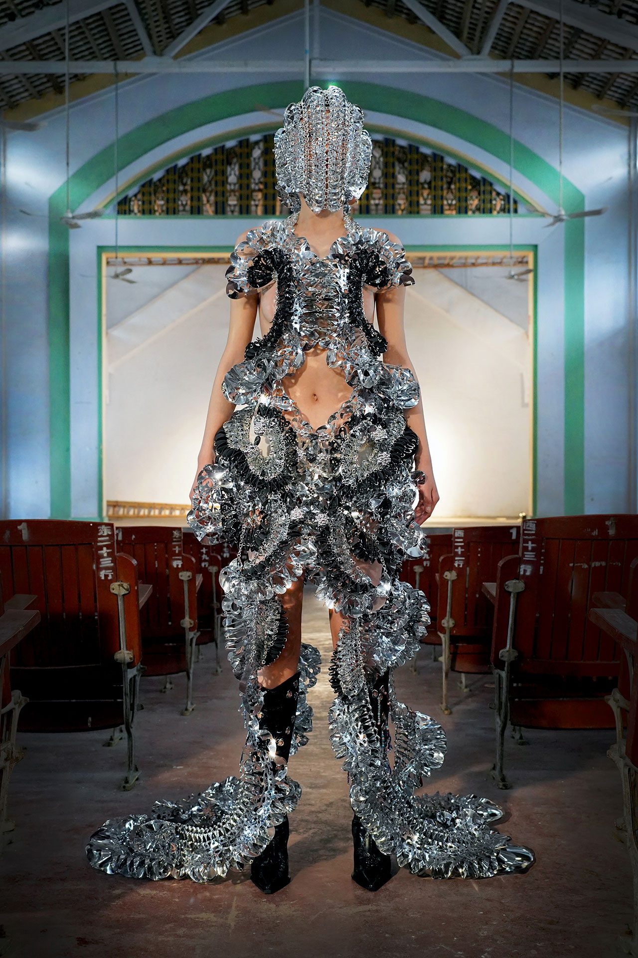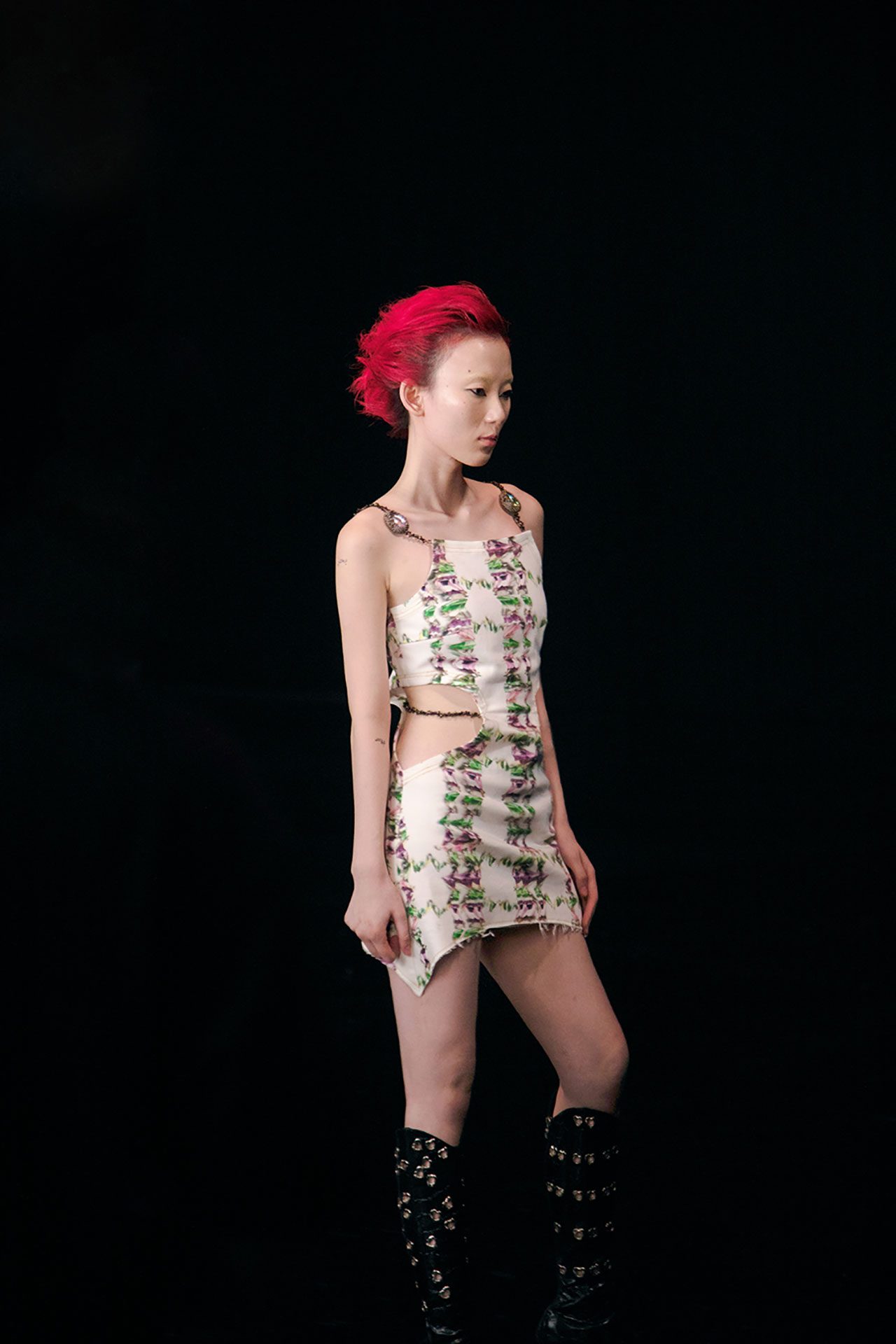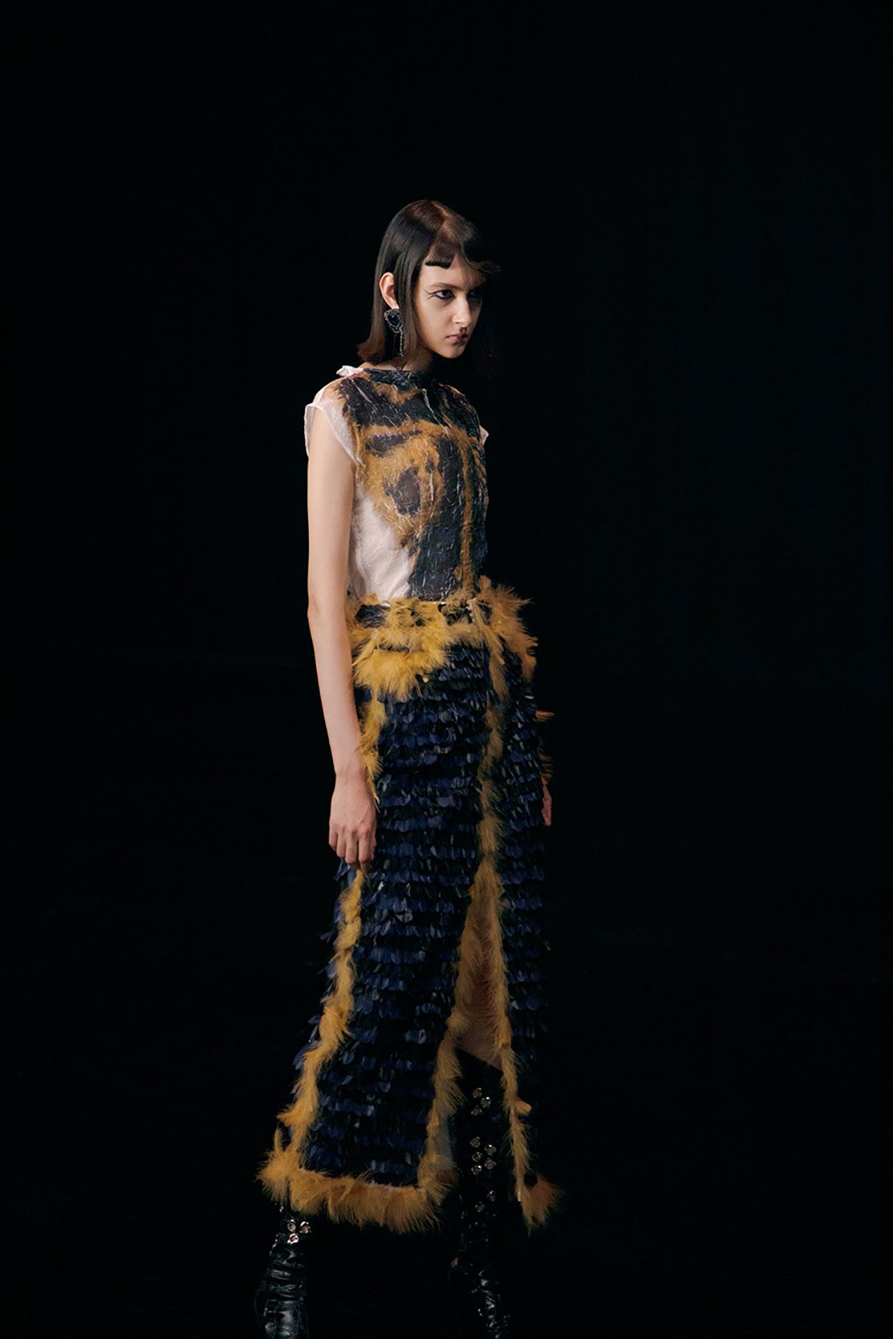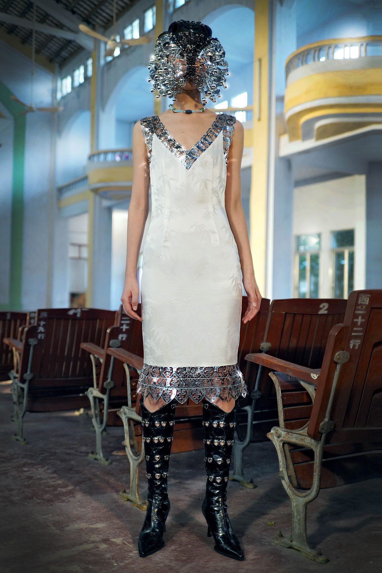 —CSM を卒業した後は、CHANEL (シャネル) の刺繍アトリエで働いてから中国に戻ったんだよね。2019年に上海で最初のショーを観たときに、大胆に使われた中国の伝統的なモチーフの数々にすごく衝撃を受けた。私は「Made in China」って言葉から廉価さを連想する世代の人間だから。大々的に「Made in China」と掲げたようなコレクションを見るのは、目から鱗が落ちるようだった。でもこの2年間はそういったテーマからは遠ざかってきたよね。なにがきっかけでそのテーマから離れることにしたの?