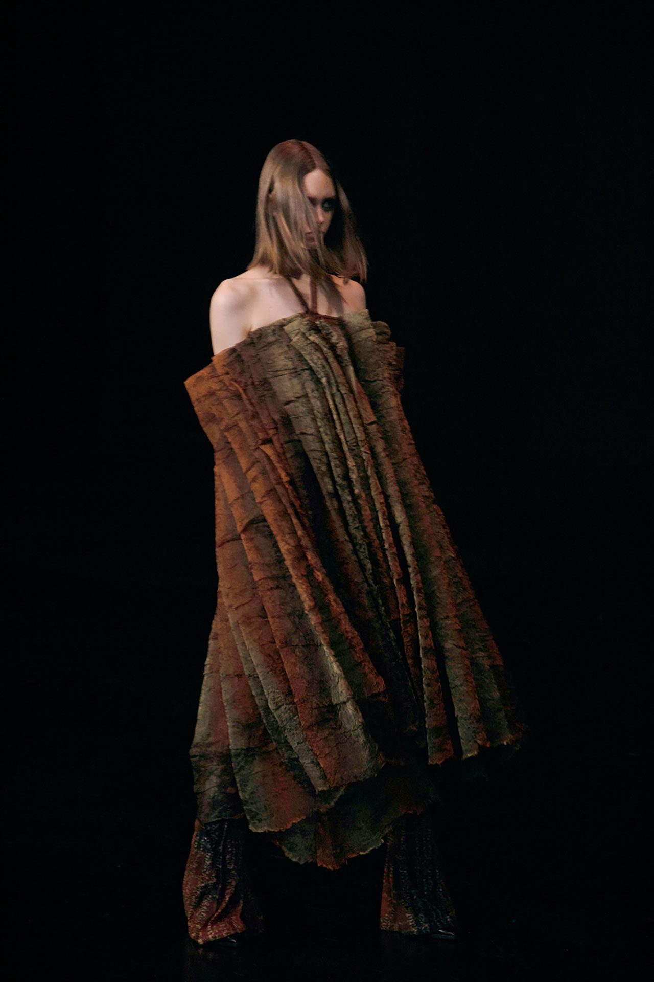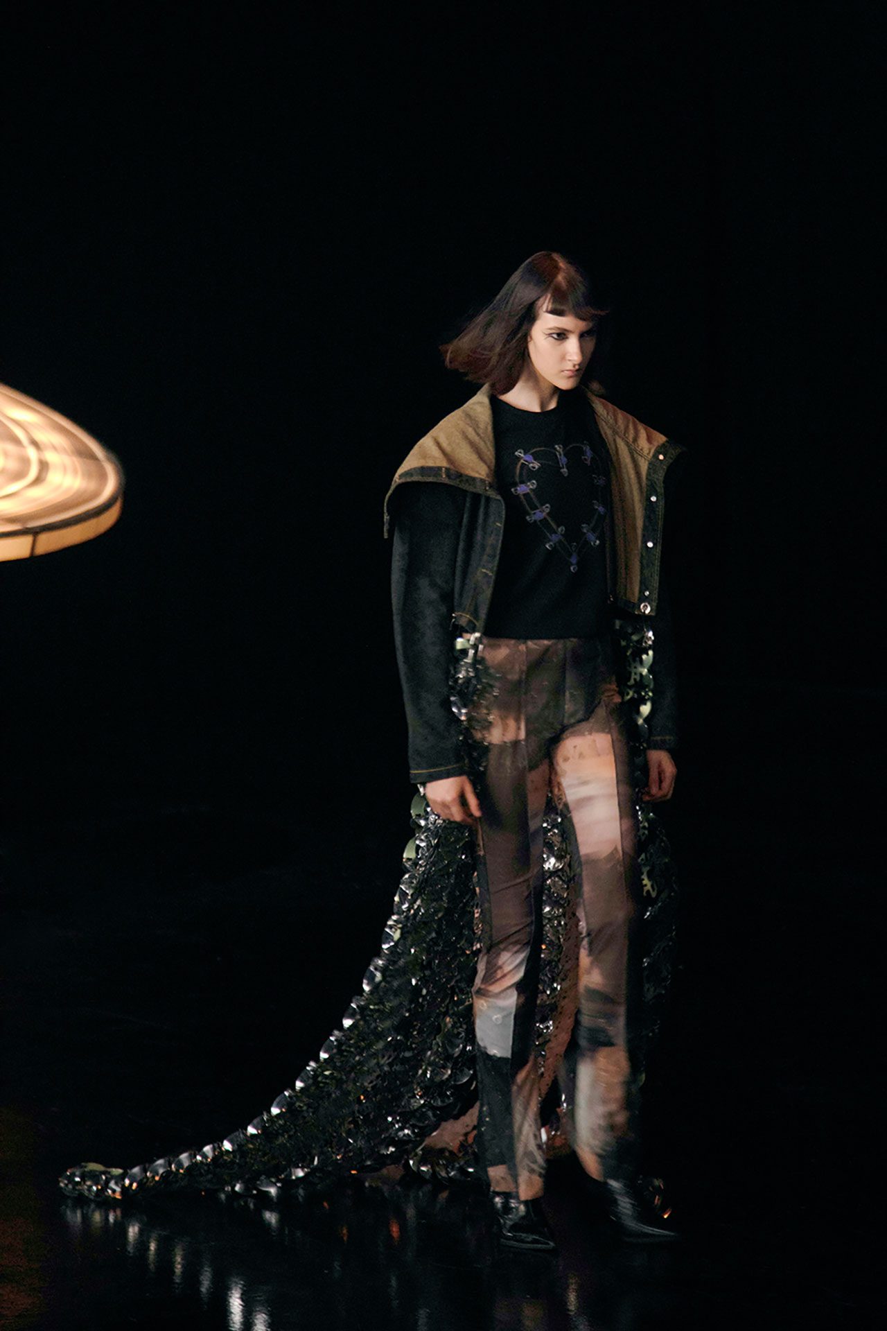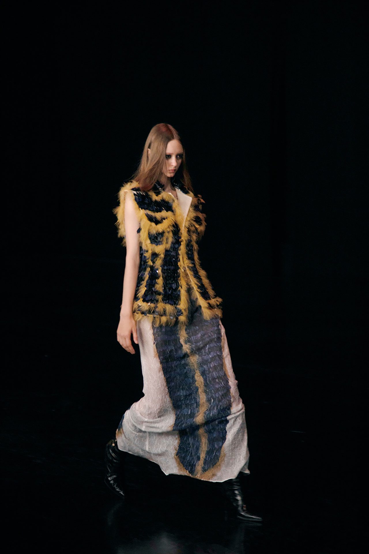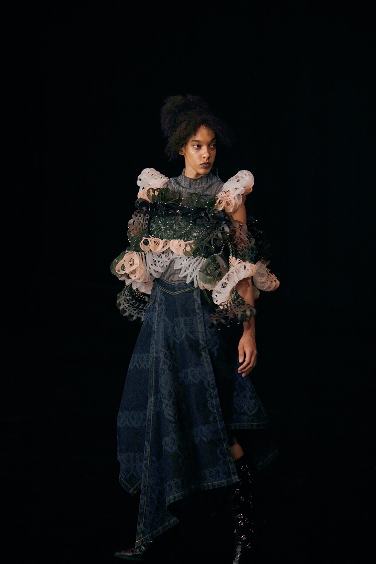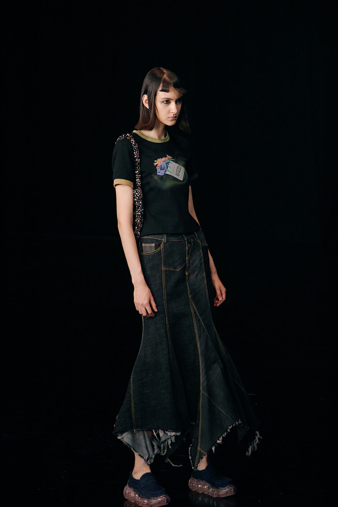 —CSM を卒業した後は、CHANEL (シャネル) の刺繍アトリエで働いてから中国に戻ったんだよね。2019年に上海で最初のショーを観たときに、大胆に使われた中国の伝統的なモチーフの数々にすごく衝撃を受けた。私は「Made in China」って言葉から廉価さを連想する世代の人間だから。大々的に「Made in China」と掲げたようなコレクションを見るのは、目から鱗が落ちるようだった。でもこの2年間はそういったテーマからは遠ざかってきたよね。なにがきっかけでそのテーマから離れることにしたの?