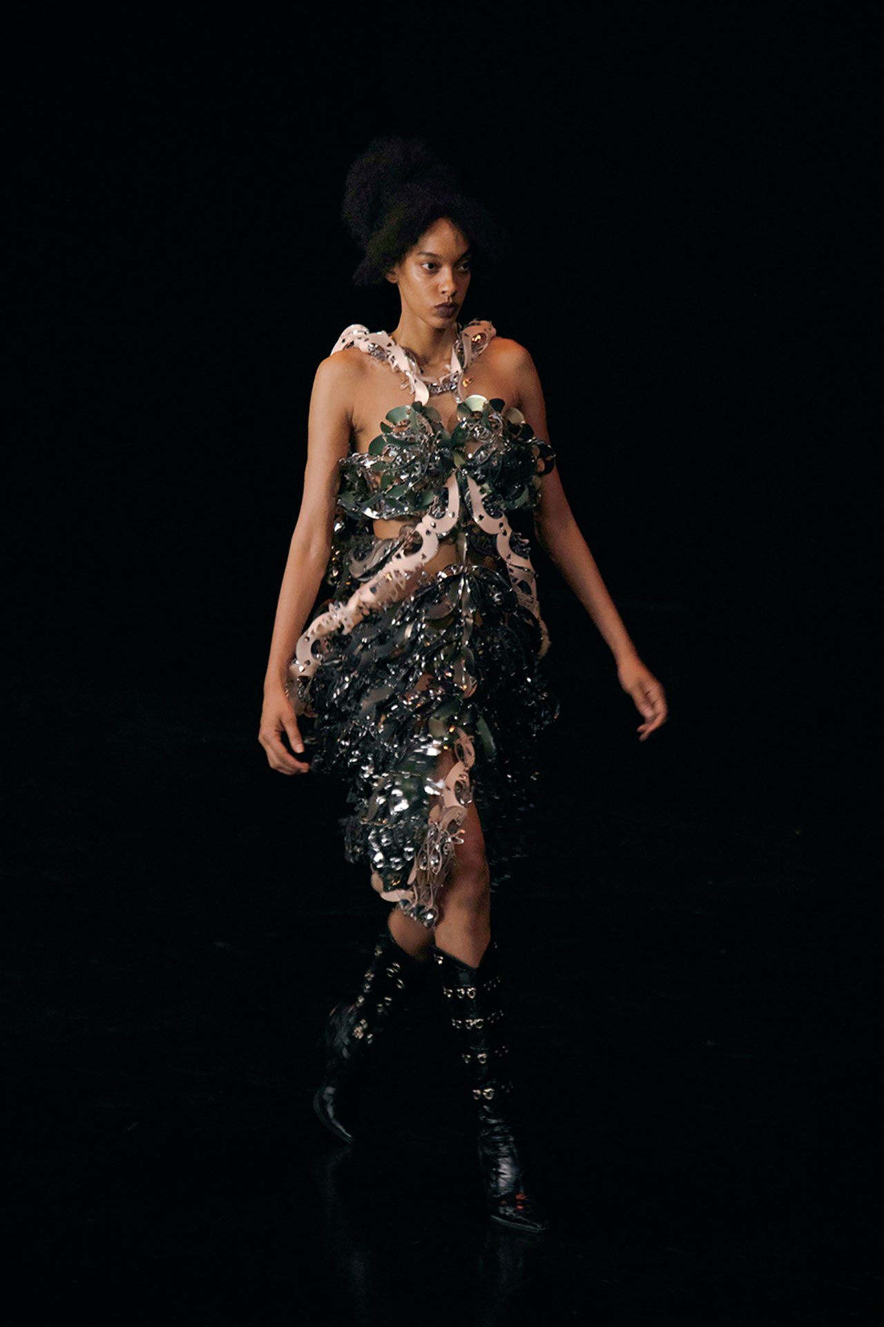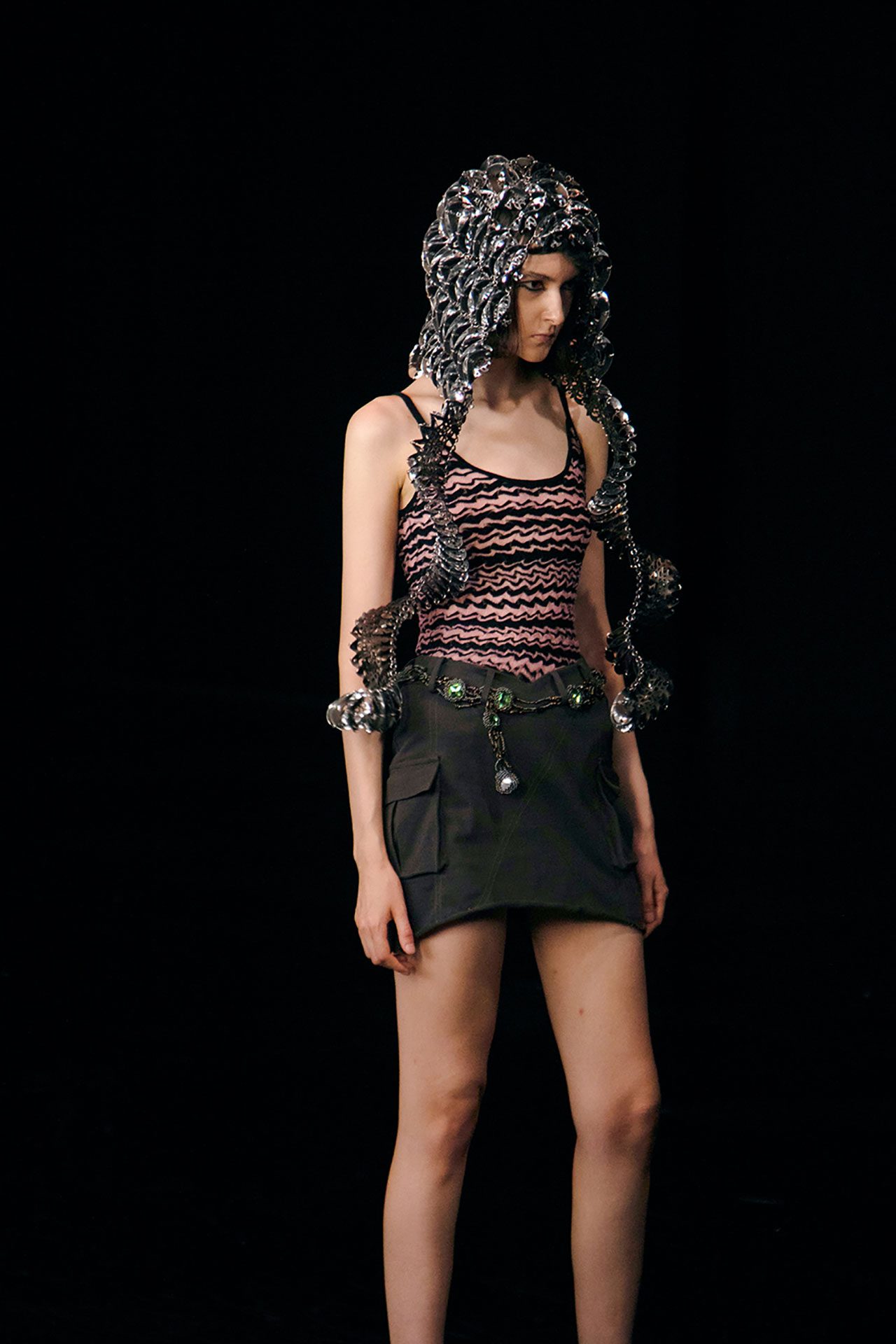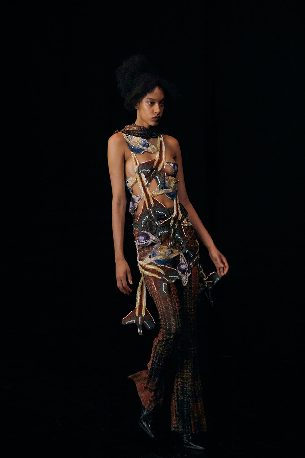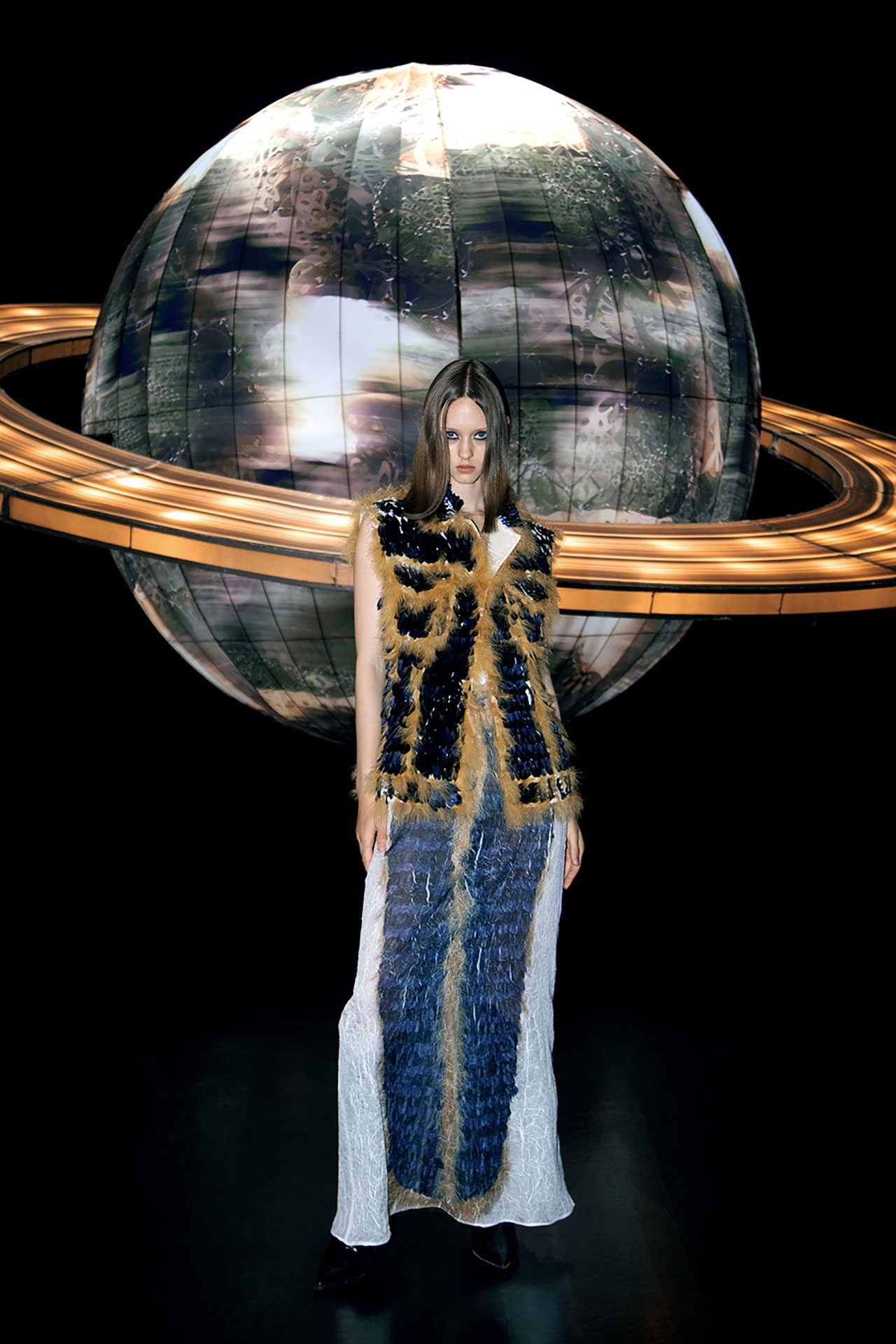 —CSM を卒業した後は、CHANEL (シャネル) の刺繍アトリエで働いてから中国に戻ったんだよね。2019年に上海で最初のショーを観たときに、大胆に使われた中国の伝統的なモチーフの数々にすごく衝撃を受けた。私は「Made in China」って言葉から廉価さを連想する世代の人間だから。大々的に「Made in China」と掲げたようなコレクションを見るのは、目から鱗が落ちるようだった。でもこの2年間はそういったテーマからは遠ざかってきたよね。なにがきっかけでそのテーマから離れることにしたの?