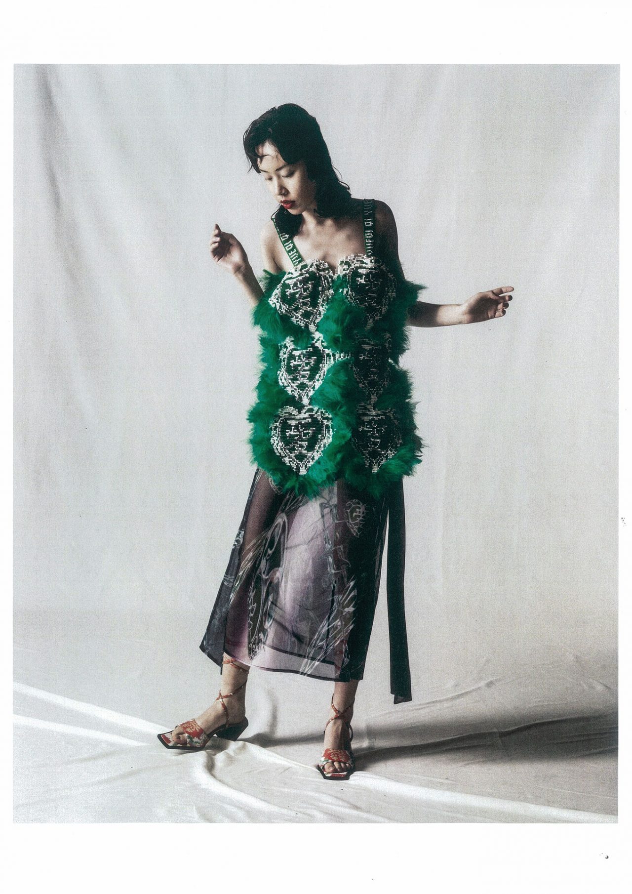 Yueqi (ユェチ) と初めて出会ったのは2017年、渋谷のクラブだった。当時まだ学生だった彼女は、旅行で東京を訪れていたのだった。香港出身のドラァグクイーンの友人に連れられ、異国のクラブに遊びに来ていた彼女のどこか心許なげな佇まいを覚えている。次に彼女に会ったのは、2019年の上海。上海ファッションウィーク中に行われた彼女の初めてのショーを目にしたのだが、他のどのブランドよりも中国らしさを誇り高く表現したそのコレクションに衝撃を受けた。ショーの後、共通の友人の家で行われたアフターパーティーでは初めてのショーを終えて興奮に包まれている彼女と言葉を交わした。その後、夫の Thomas Lamb (トーマス・ラム) とともに東京を訪れた彼女と遊んだのは2020年、コロナ禍のほんの手前のことだった。それから約3年。LVMHプライズにもノミネートされるなど、YUEQI QI (ユェチ・チ) は紛うことなくアジアを代表するブランドへと進歩を遂げた。3年振りに東京を訪れた彼女は、かつての謙虚さを失うことなく自信に満ち溢れていた。そんな彼女に、この3年間について、自身のブランドについて、そして個人的な物語の数々について話を訊いた。