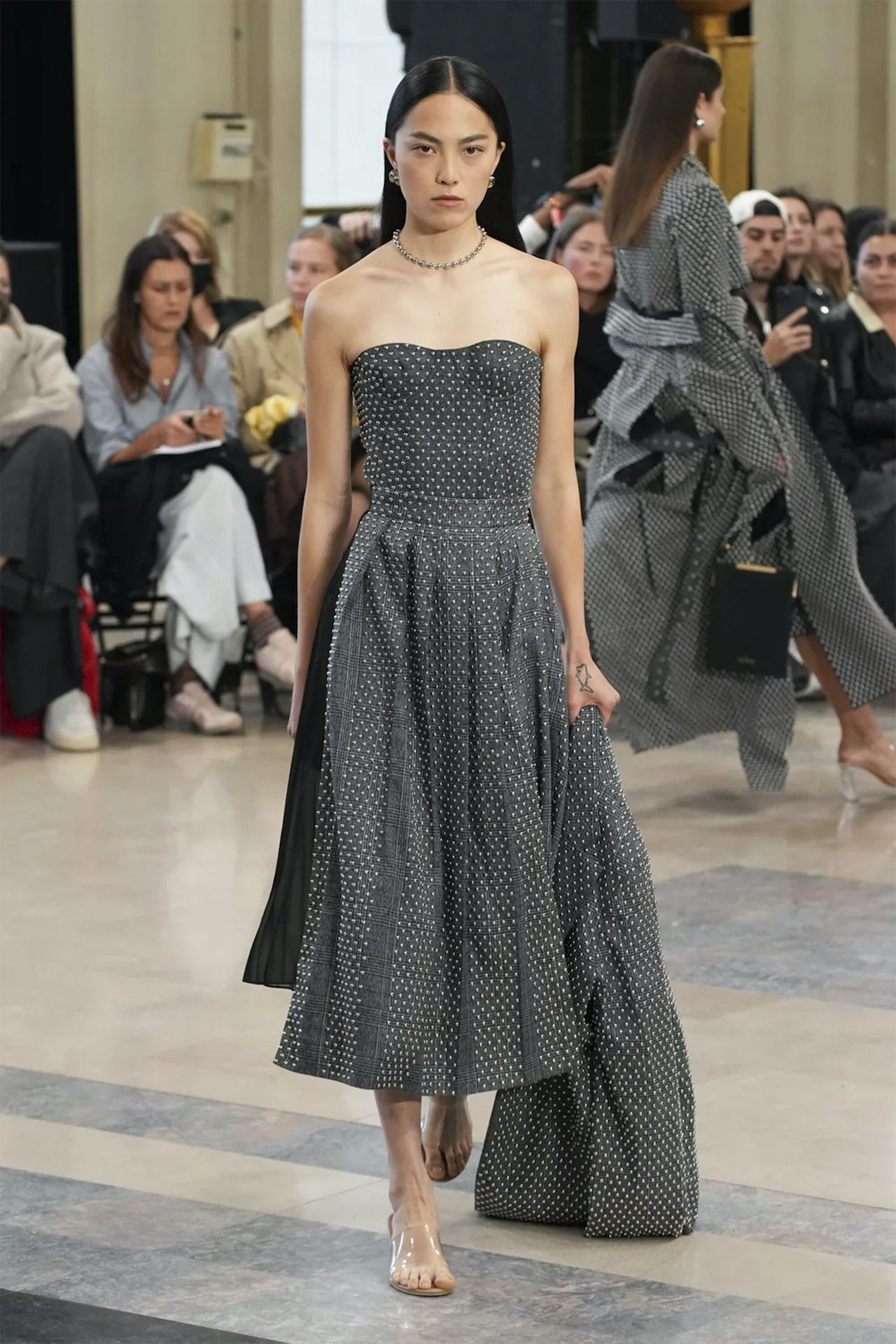 コロナウイルスがひろがり始めた頃は、仕事環境が代わりマスク生活が始まり、私自身含め皆自分を守るように露出を控えた洋服を着ていましたよね。自分を隠し、遠慮がちなファッションだと感じる時期はありました。ですが現在はほぼコロナ前の状態に戻ったように思えます。人と人、そしてファッションと人の距離が復活し、男性はまた違いますが、女性は以前のようなエレガントでフォーマルな装いが戻ってきた気がします。