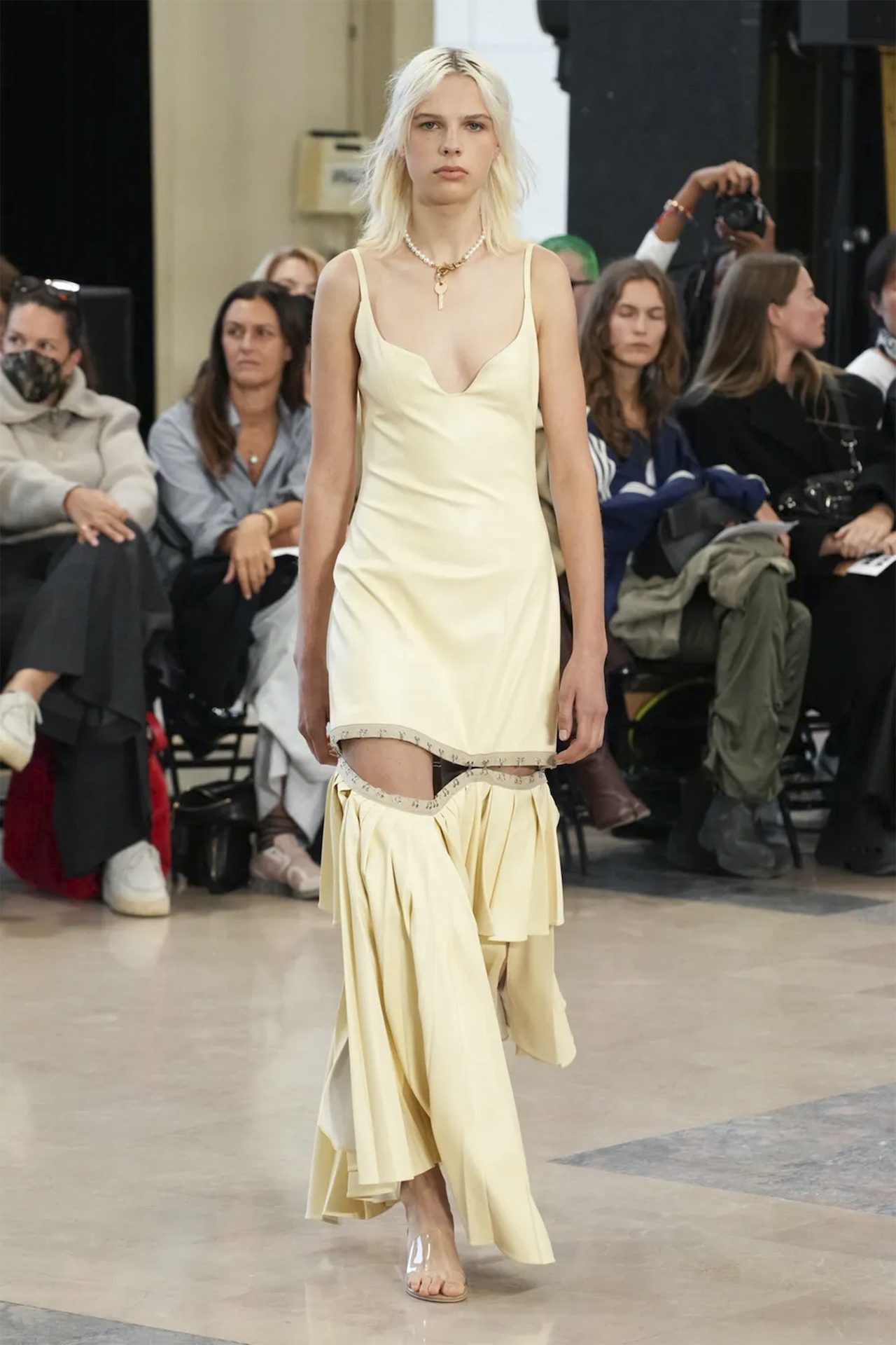 常に女性のために現実的な視点を通してデザインをしていますが、抽象的なテーマを用いるのも好きです。「The irrational view」で考えたときに洋服自体の魅力を改めて感じることができ、今回このタイトルをつけました。王道な美しさの上に、女性が日常生活や仕事で着ないものや、曲がっていたり捻られたカットを用いることで新たな美しさを体現できたように感じています。