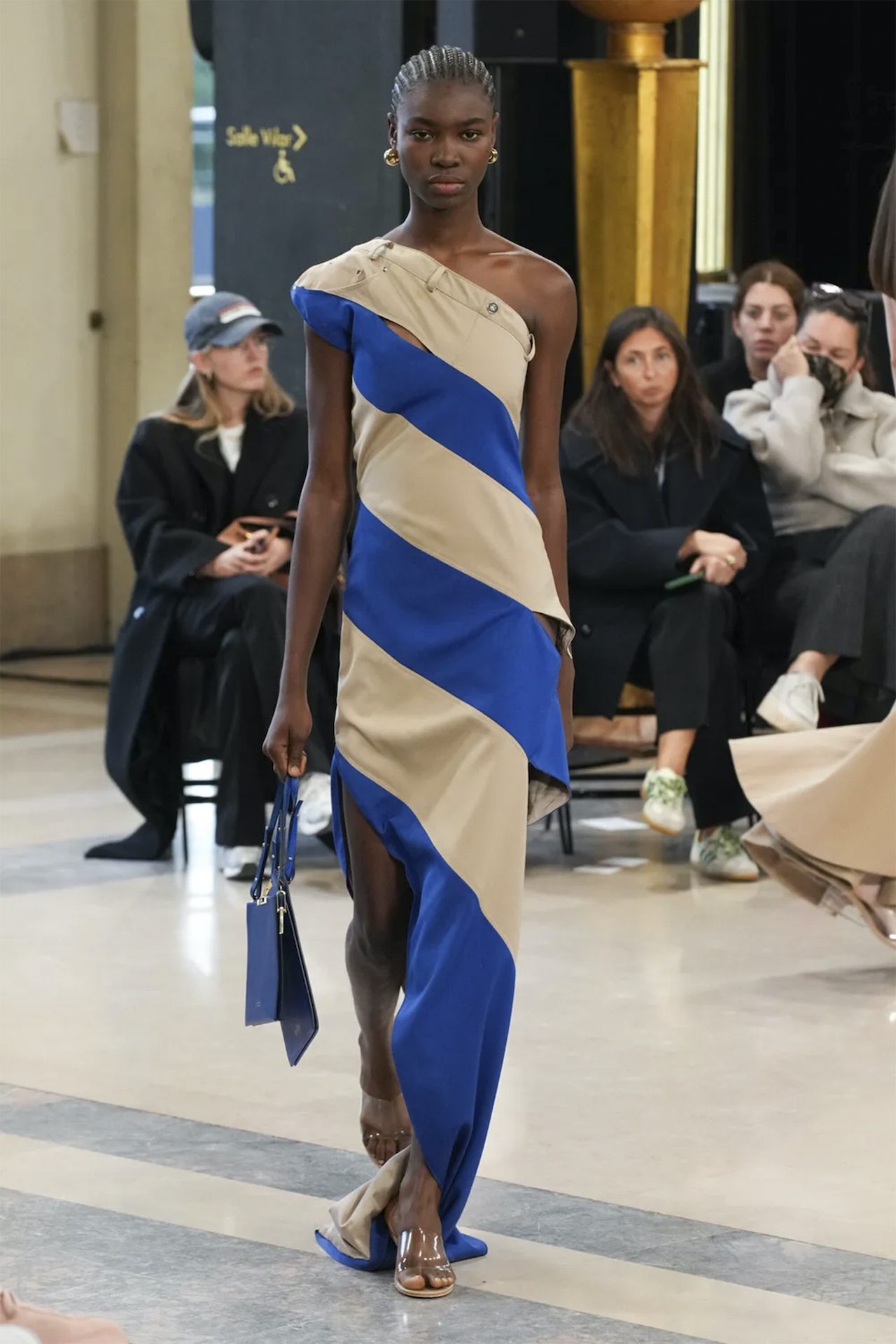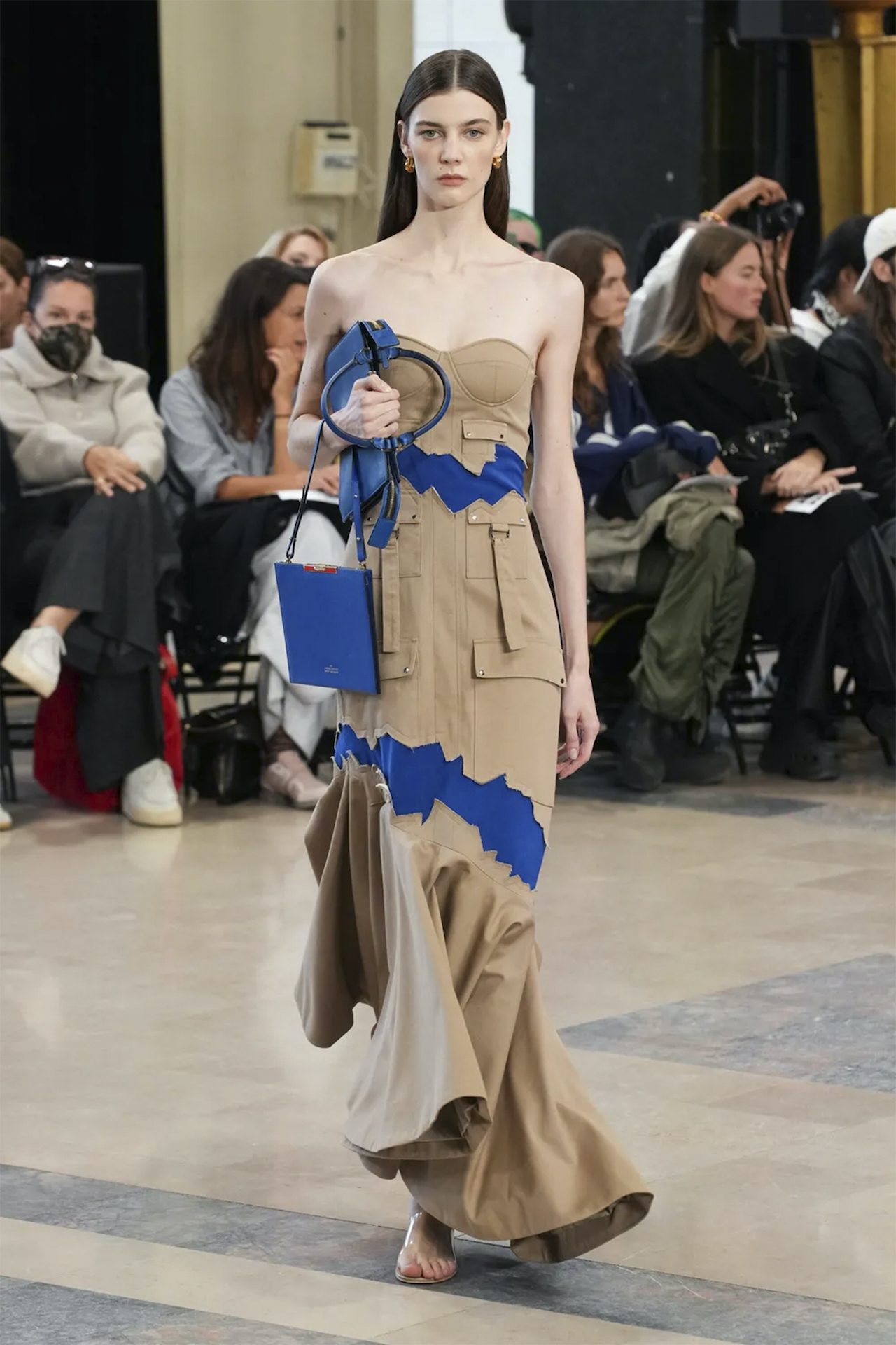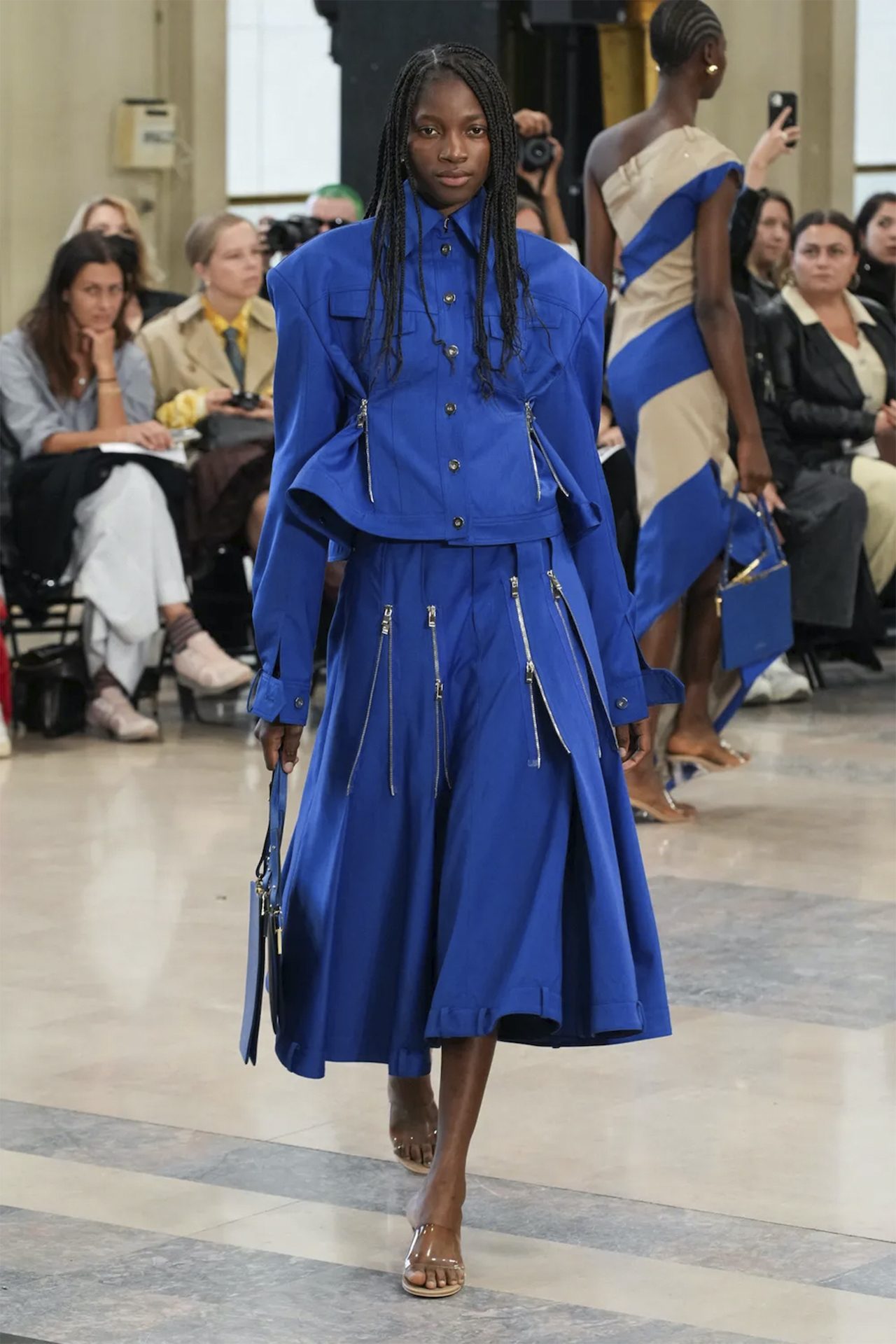 私は密かに“色”が大好きなんです。今シーズンは特に春夏コレクションだったということもあり、その中でもブルーのベージュとのコントラストに惹かれました。ベージュの暖かいトーンは冬や秋の印象が強いので、コバルトブルーやイブクラインブルーなど強さのある色味をアクセントとして加え、視覚的に爽やかな要素を加えたかったのです。またブルー系の色以外にも、マゼンタやマルーンのような赤系の色も加え、ブルーは爽やかでポップなアクセントである中、赤みのあるカラーを通して深みと美しいエレガンスさを演出しました。それがブルーと良いコントラストとなり、コレクション全体にハーモニーをもたらしたと感じます。