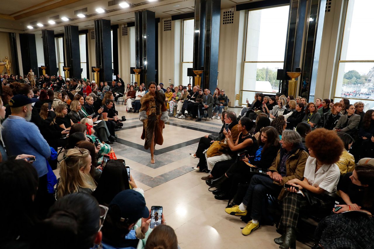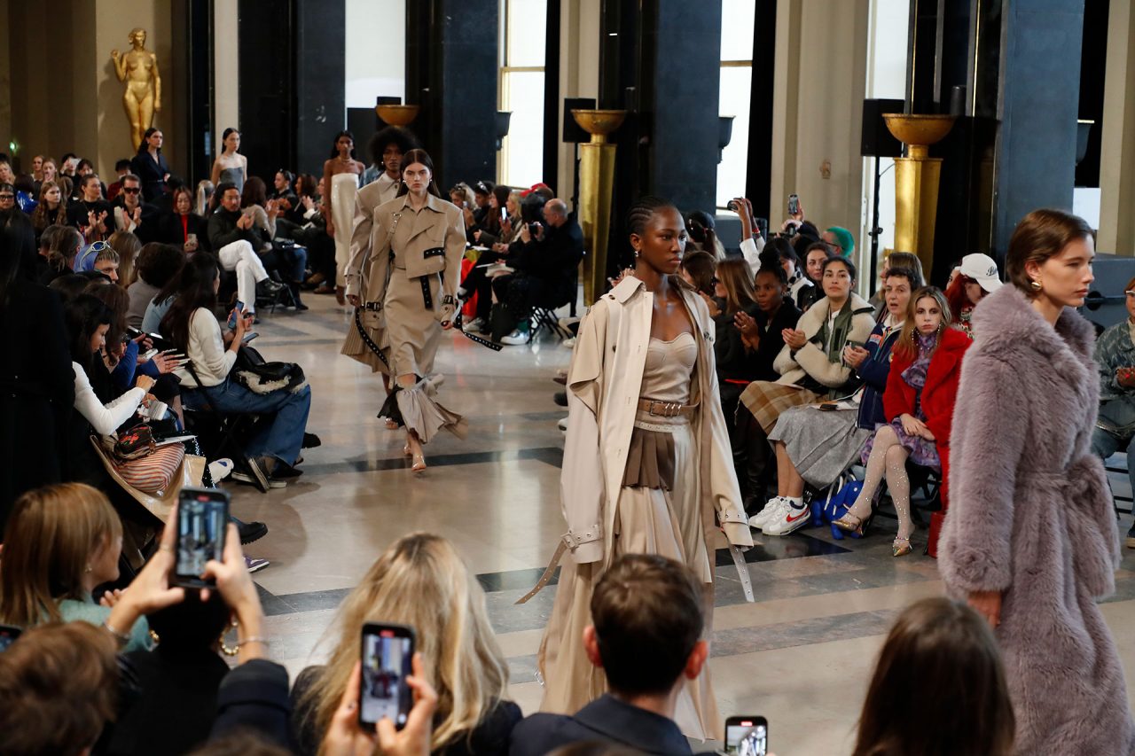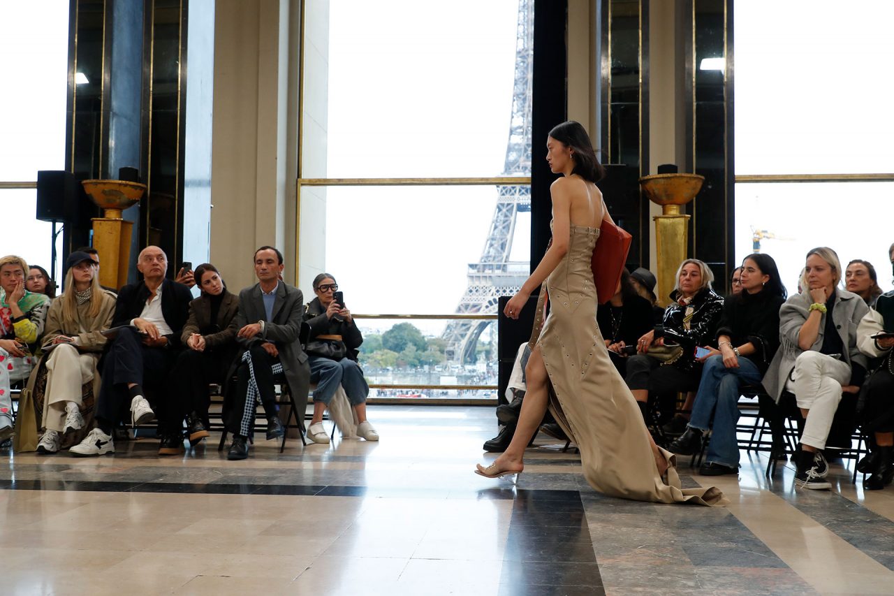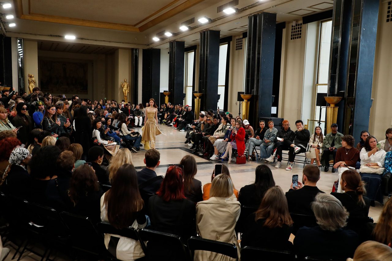 はい。デザインする上で「メリハリ」をとても大切にしています。しっかりとした直線のラインの洋服に湾曲なカットを加えているんですが、会場も同じように椅子の配置を湾曲にしてリンクさせました。また ROKH はベージュなどニュートラルな色合いを持つブランドなのでそれに合わせ、少し暖かみのあるトーンの会場を探したんです。ショーの時間帯も、黄色がかり暖かいトーンの日差しがかかる時間を選び、神秘的なショーを作り上げることができました。