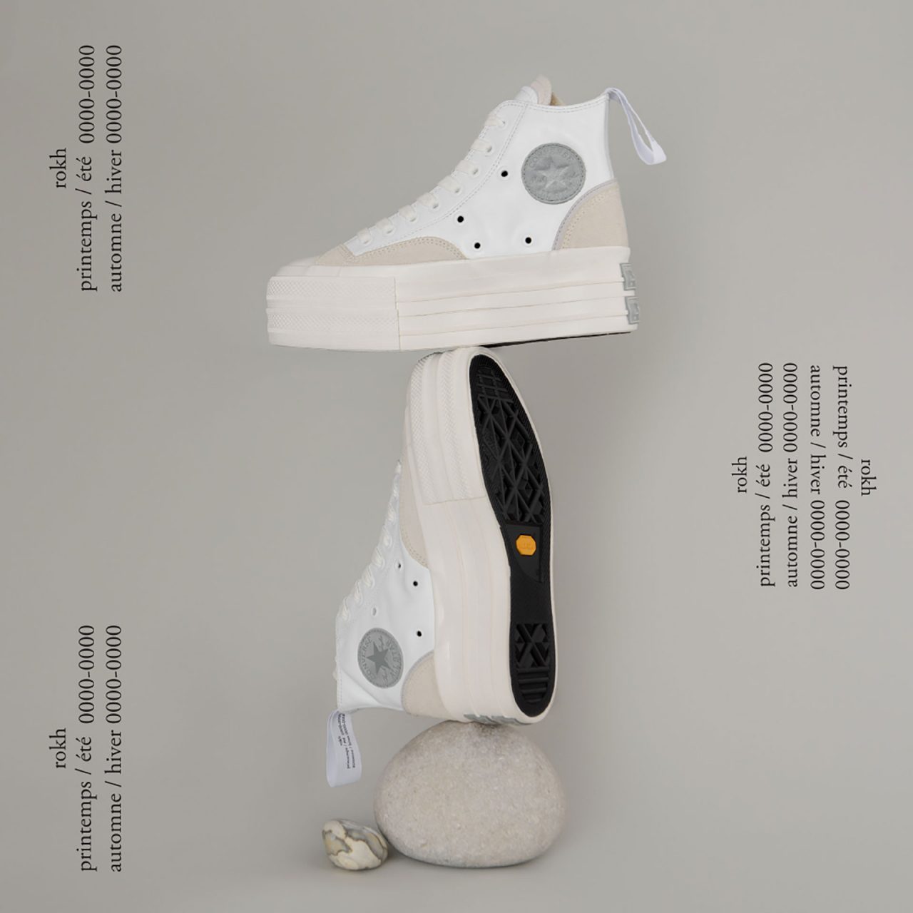 Phoebe Philo (フィービー・ファイロ) 時代の Celine (セリーヌ) で経験を積み、2018年にはLVMHプライズで特別賞を受賞した ROKH (ロク) のデザイナー、Rok Hwang (ロク・ファン) は当時の受賞コメントで「現代に生きる女性たちのワードローブの中で組み合わせて自由に着てもらうことを願っている」と語っていた。今もなお、その信念は揺ぐことがない。自由なカッティングで作る女性らしいフォルム、デコルテの見せ方、スリッドやプリーツの動きでさりげなく脚の美しさを引き立てるデザイン……。そこからは女性ならではの美しさと力強さを追求した Rok Hwang ならではの審美眼を感じることができる。なぜ彼はそこまで働く女性たちのために洋服を作り続けるのか。今回 CONVERSE ADDICT (コンバース アディクト) とのコラボレーションを機に3年ぶりの来日を果たした彼に、コロナ禍で見えた女性の内面と外見の変化や今後のビジョンについて話を聞いた。