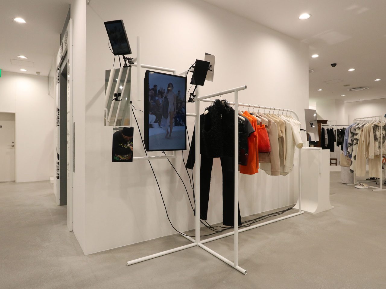 小さな会場の中央に漂うスモークの中を4人のモデルが歩き回りながら、1人ずつランウェイに登場する演出でした。スモーク内で周りが見えない様子には、まさに携帯に没入していると隣の人すらも見えなくなるようなイメージを重ね合わせました。そこに淡々と機械音声が会場に響き渡りますが、それは僕からしてみれば「窓の外を見てごらんよ」と思うような、馬鹿げた質問です。そうした新たなテクノロジーに人々が中毒性を持ってしまう状況を会場では描き出しました。