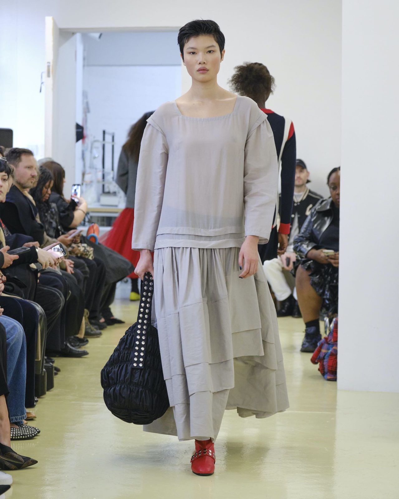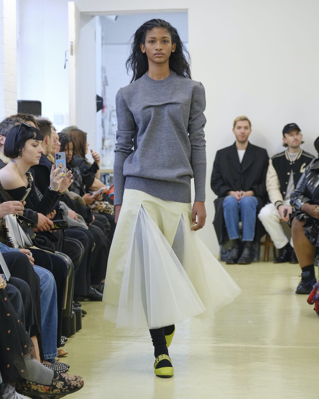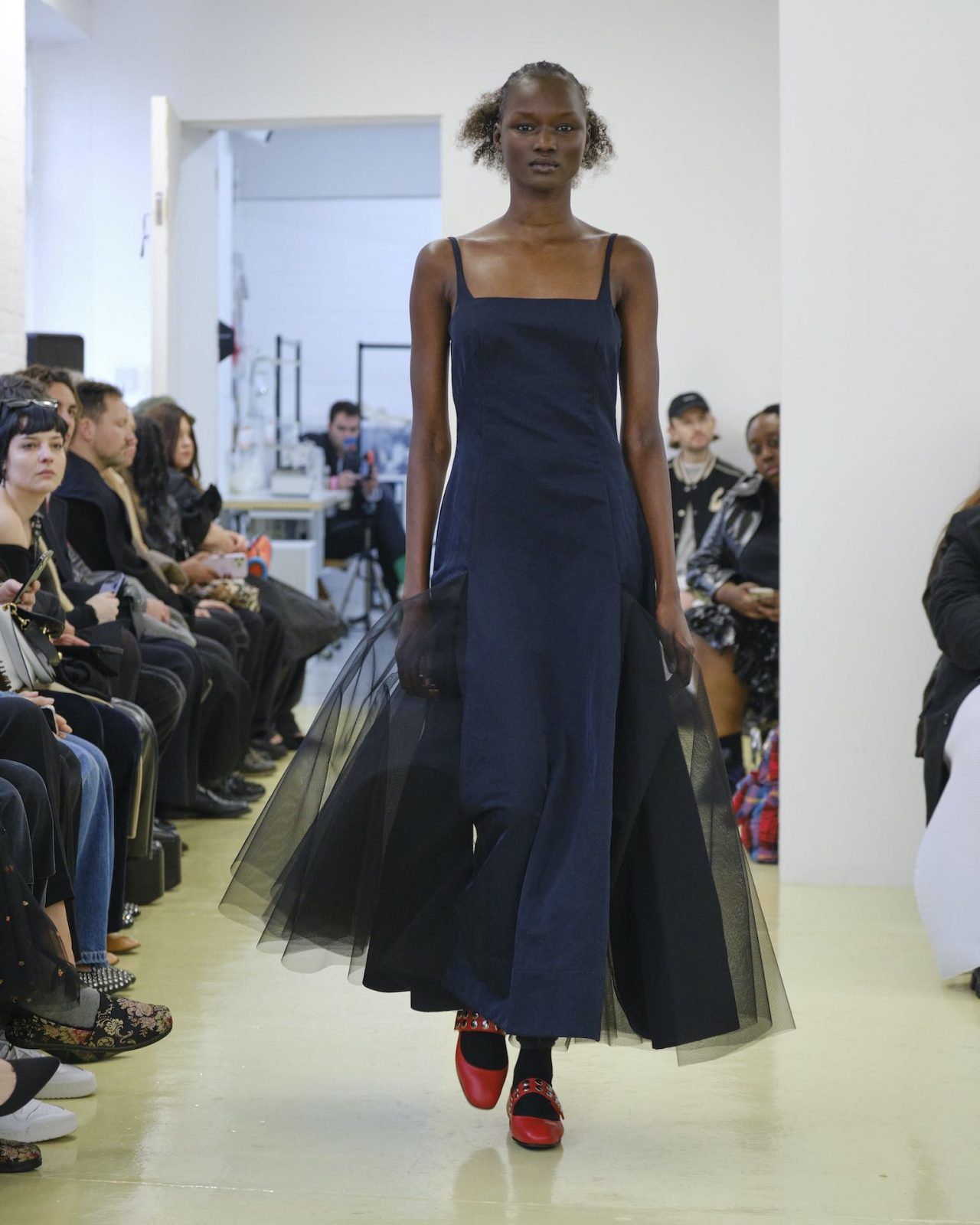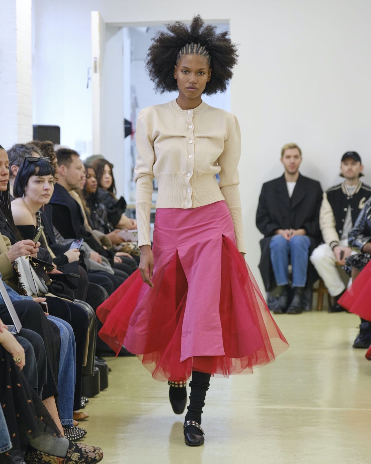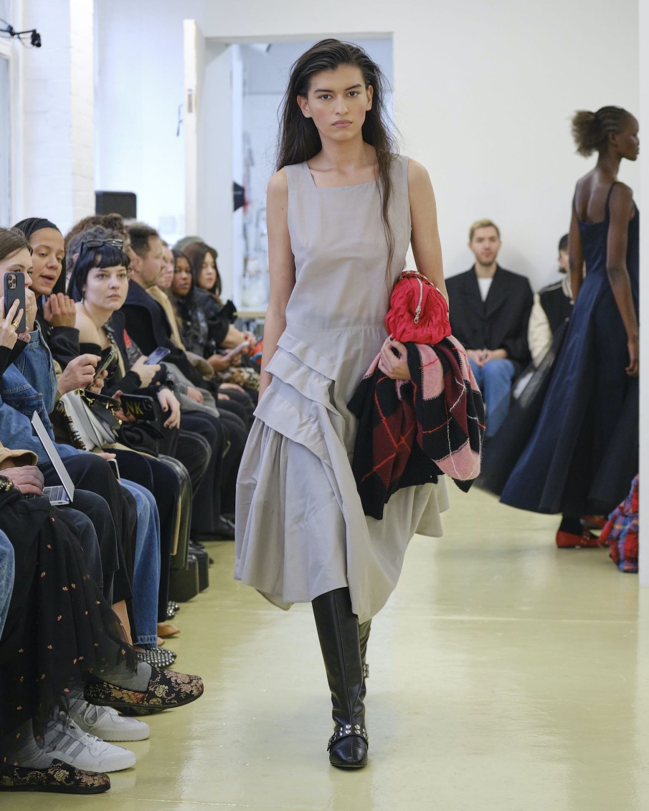 2014年、ロンドンに彗星の如く現れてから、多くの若手デザイナーが夢見るような成功への階段を駆け上ってきた。そんな彼女も来年にはブランド設立から10年を迎える。先シーズンには今までのコレクションとは趣を異にする、沸き立つような色彩の数々が息をひそめ、より静かな声で語りかけるようなコレクションを披露し、また新たな境地へと到達したように思える。