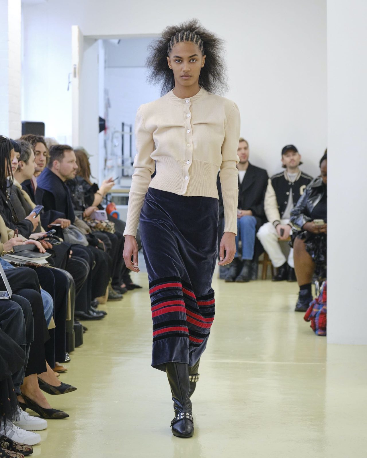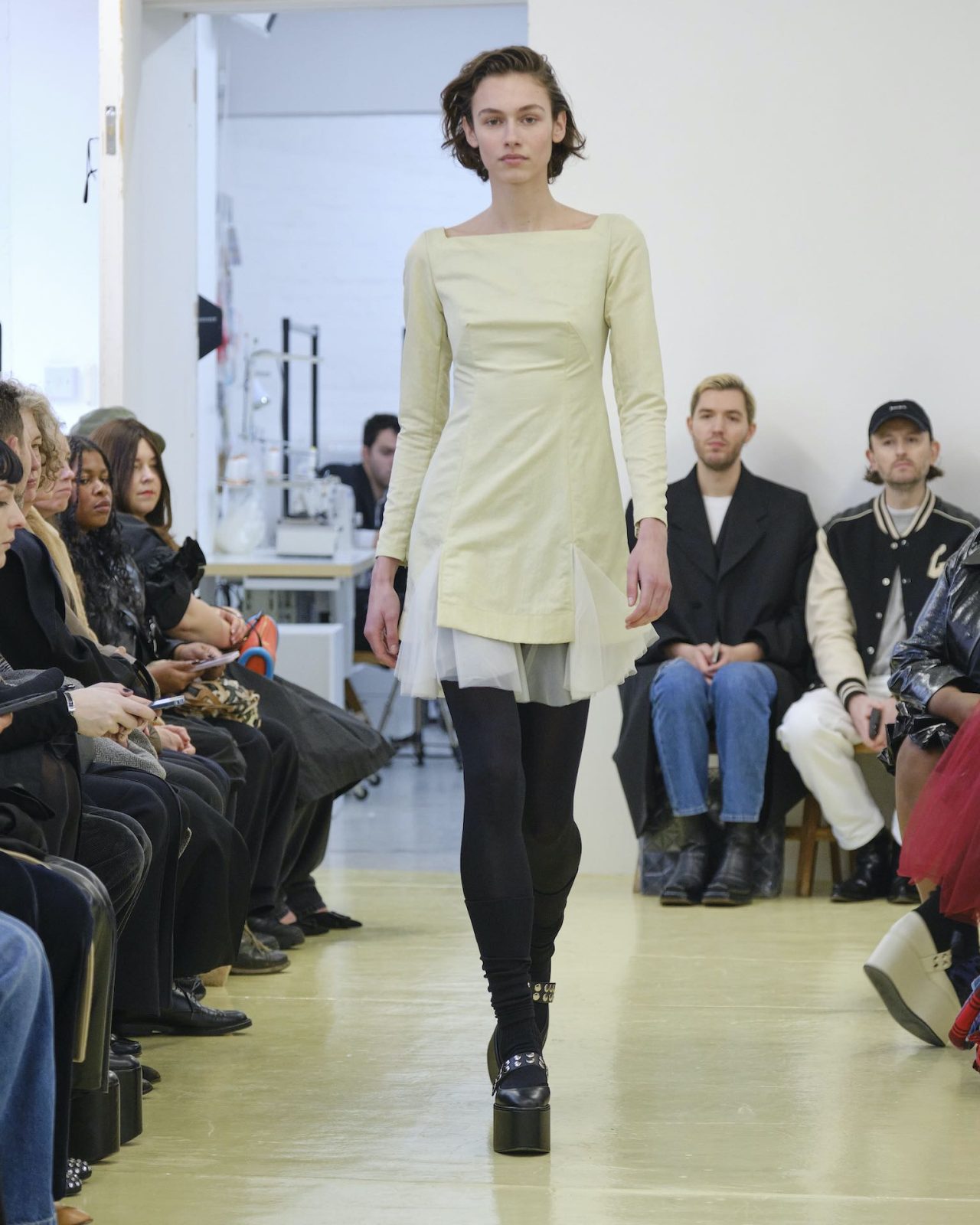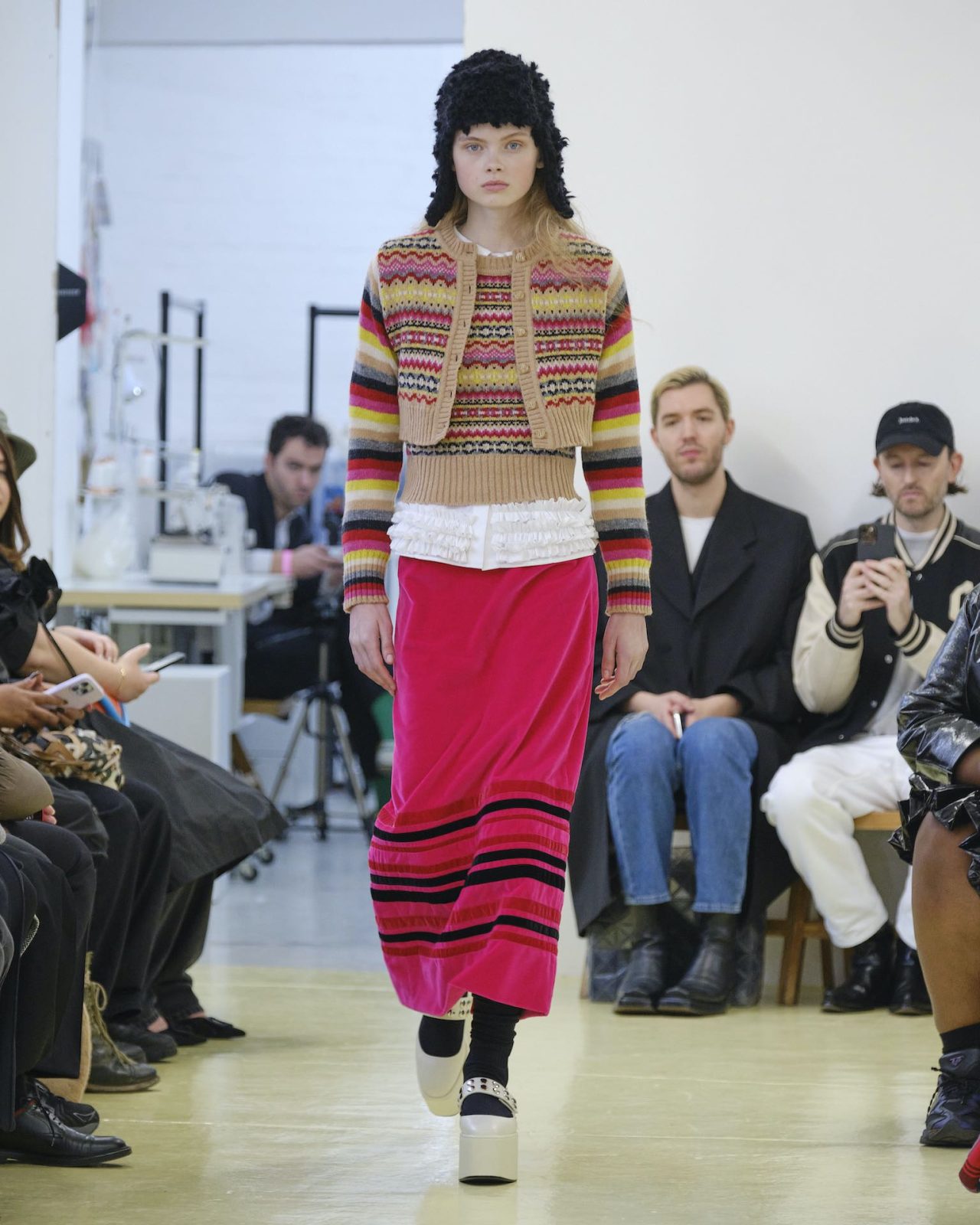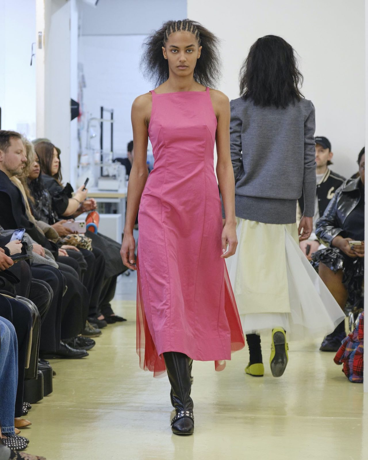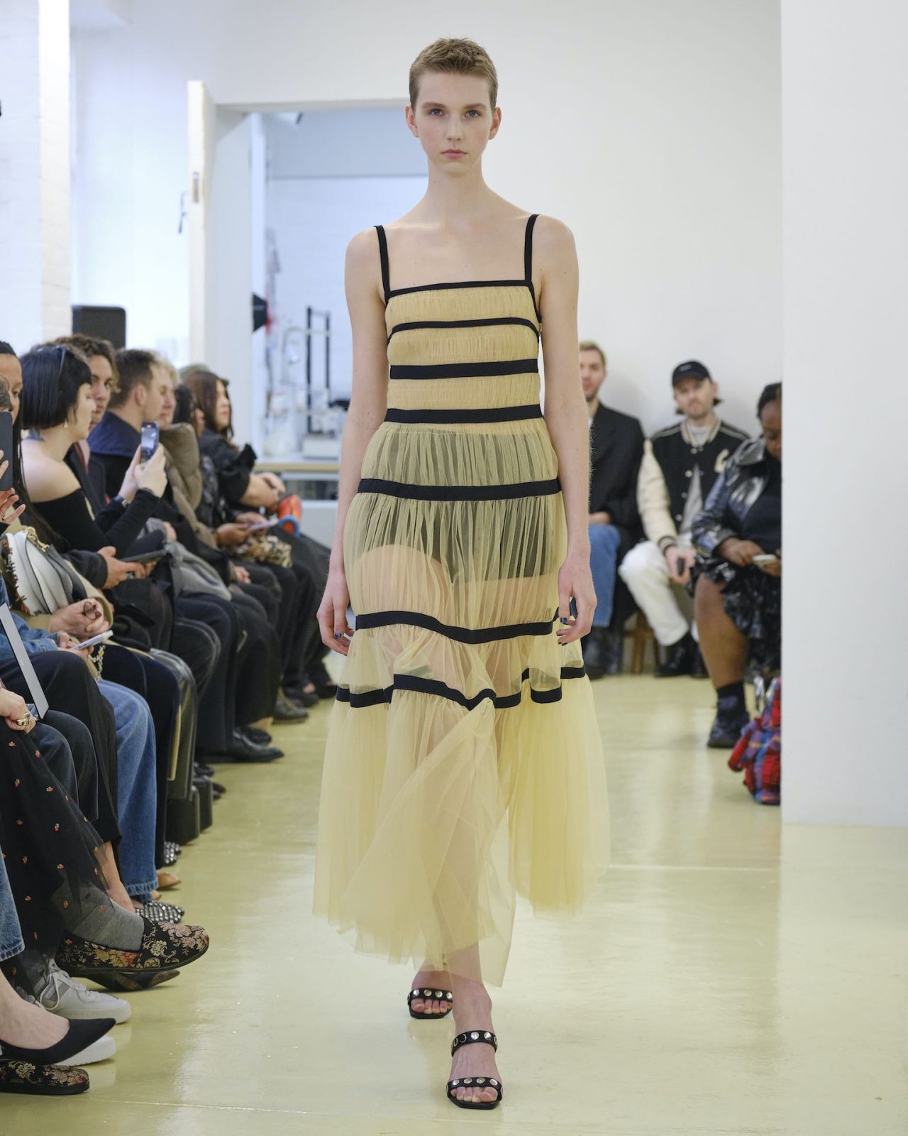 2014年、ロンドンに彗星の如く現れてから、多くの若手デザイナーが夢見るような成功への階段を駆け上ってきた。そんな彼女も来年にはブランド設立から10年を迎える。先シーズンには今までのコレクションとは趣を異にする、沸き立つような色彩の数々が息をひそめ、より静かな声で語りかけるようなコレクションを披露し、また新たな境地へと到達したように思える。