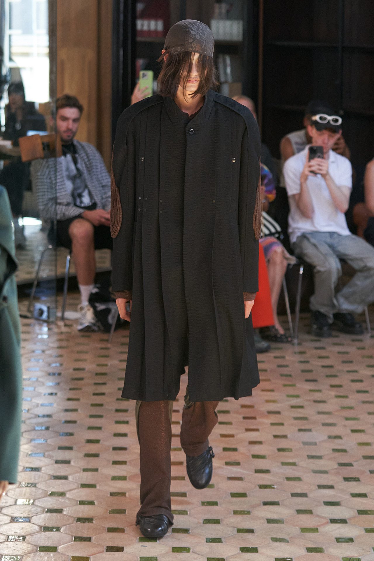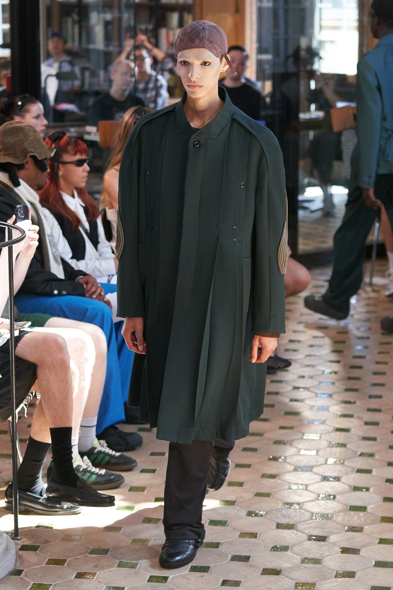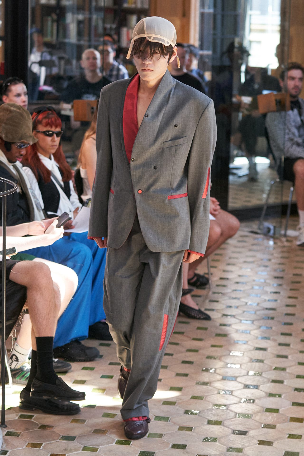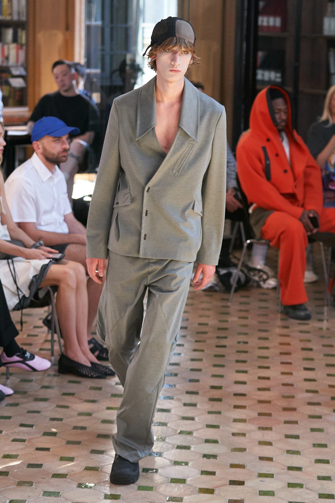—ここで具体的なアイテムの話を。近年のコレクションでは、とくにテーラードのアイテムが印象に残っています。たとえば、2024SS のランウェイで2番目のルックに登場したウールギャバジンのテーラードジャケット。随所に差し込まれる短いダーツや二重になったラペル、隠しポケットなど、ディテールに心震えました。あれはどうやって思いついたんですか?