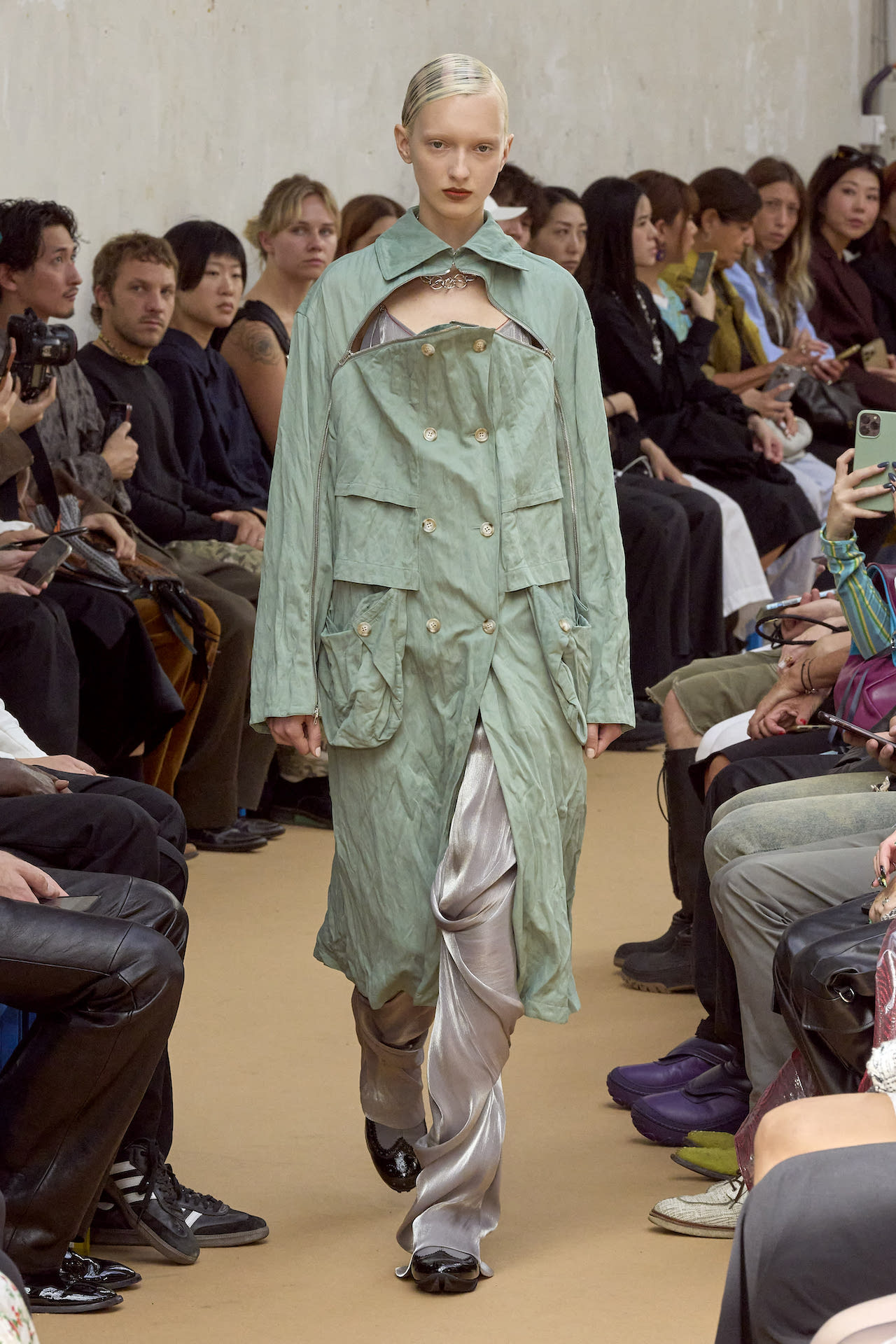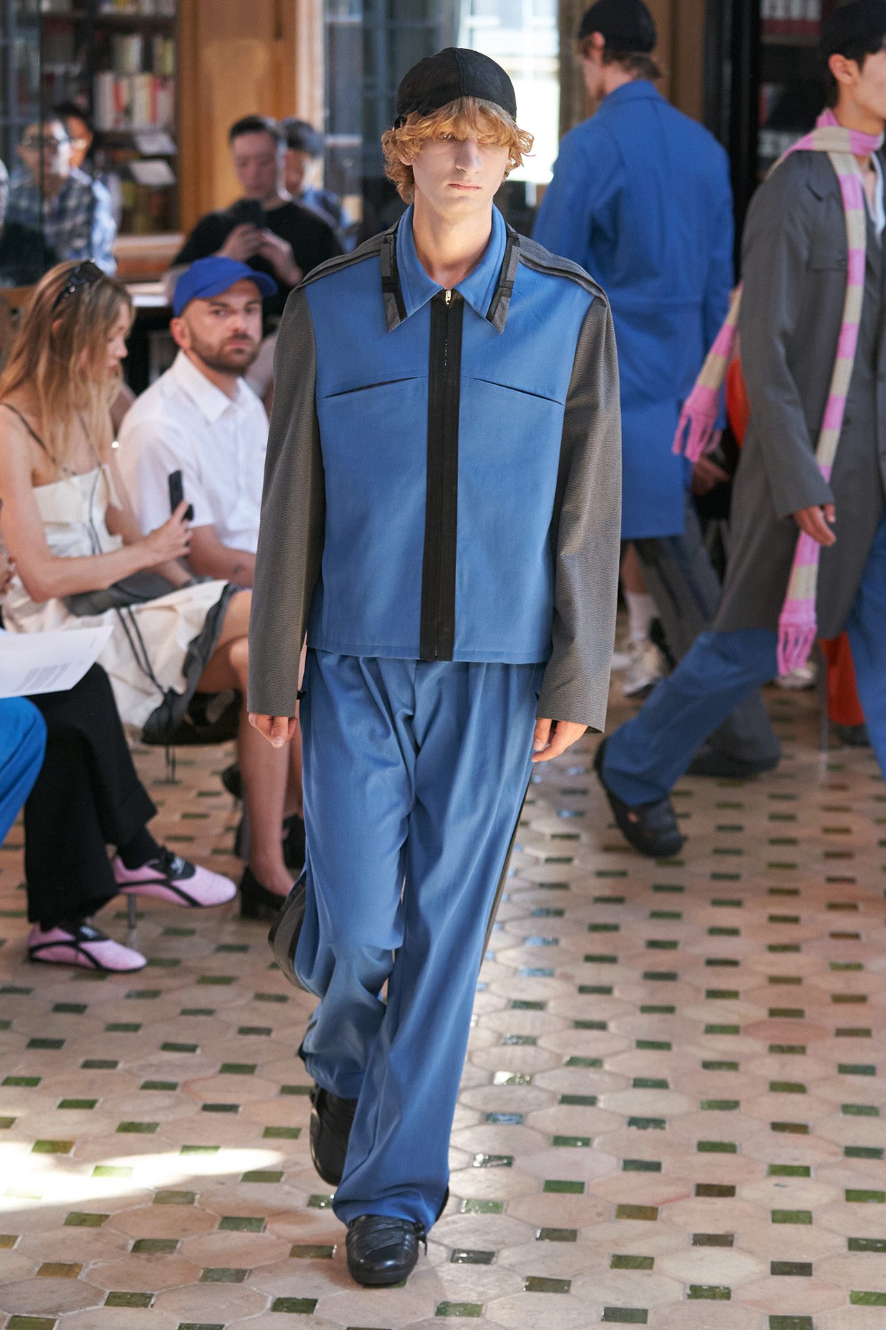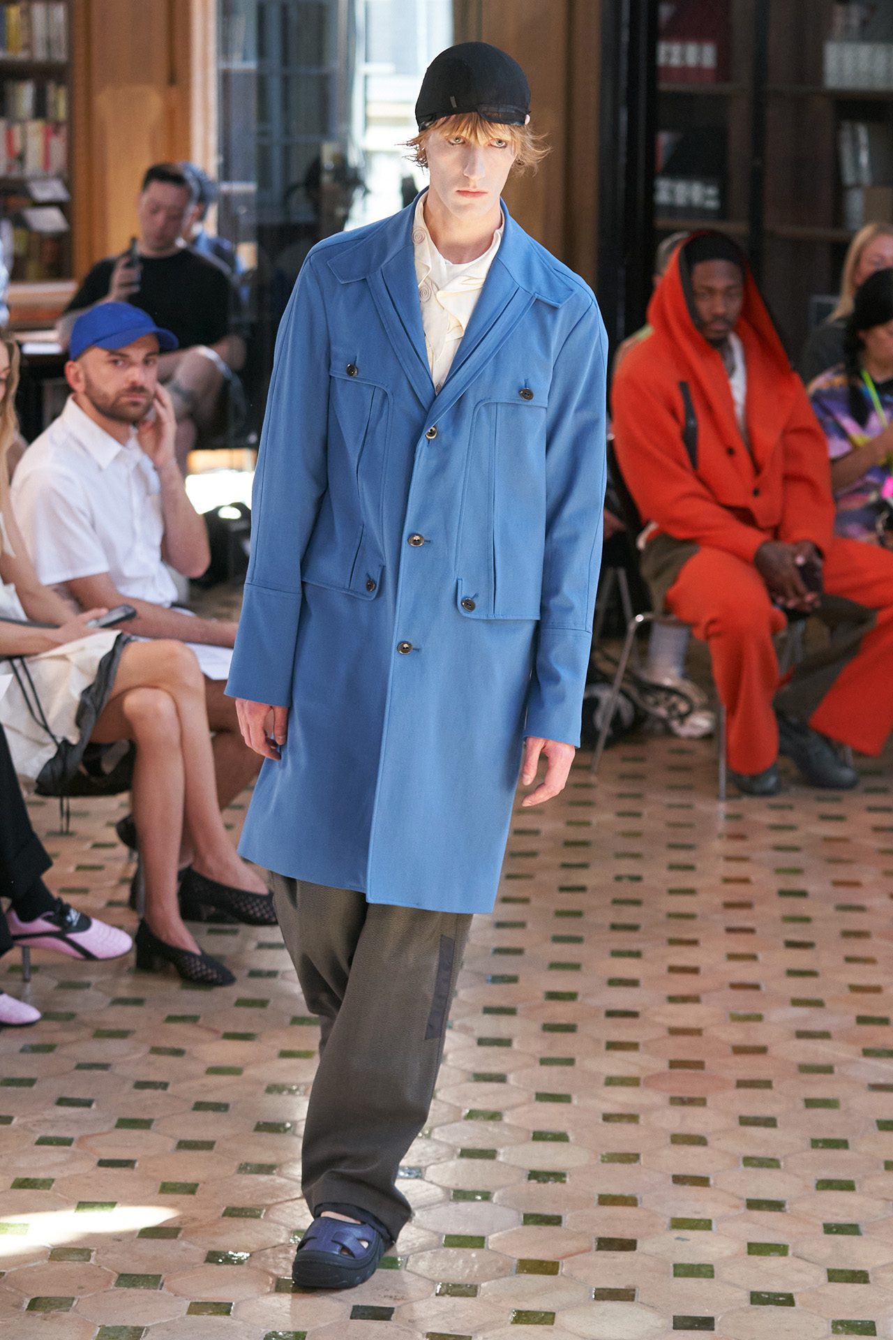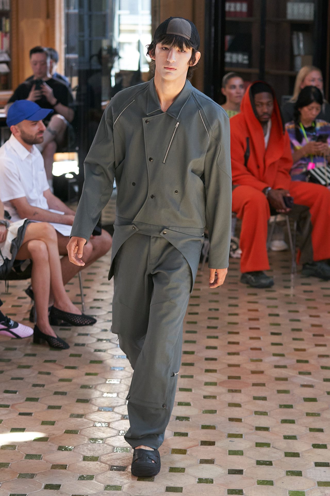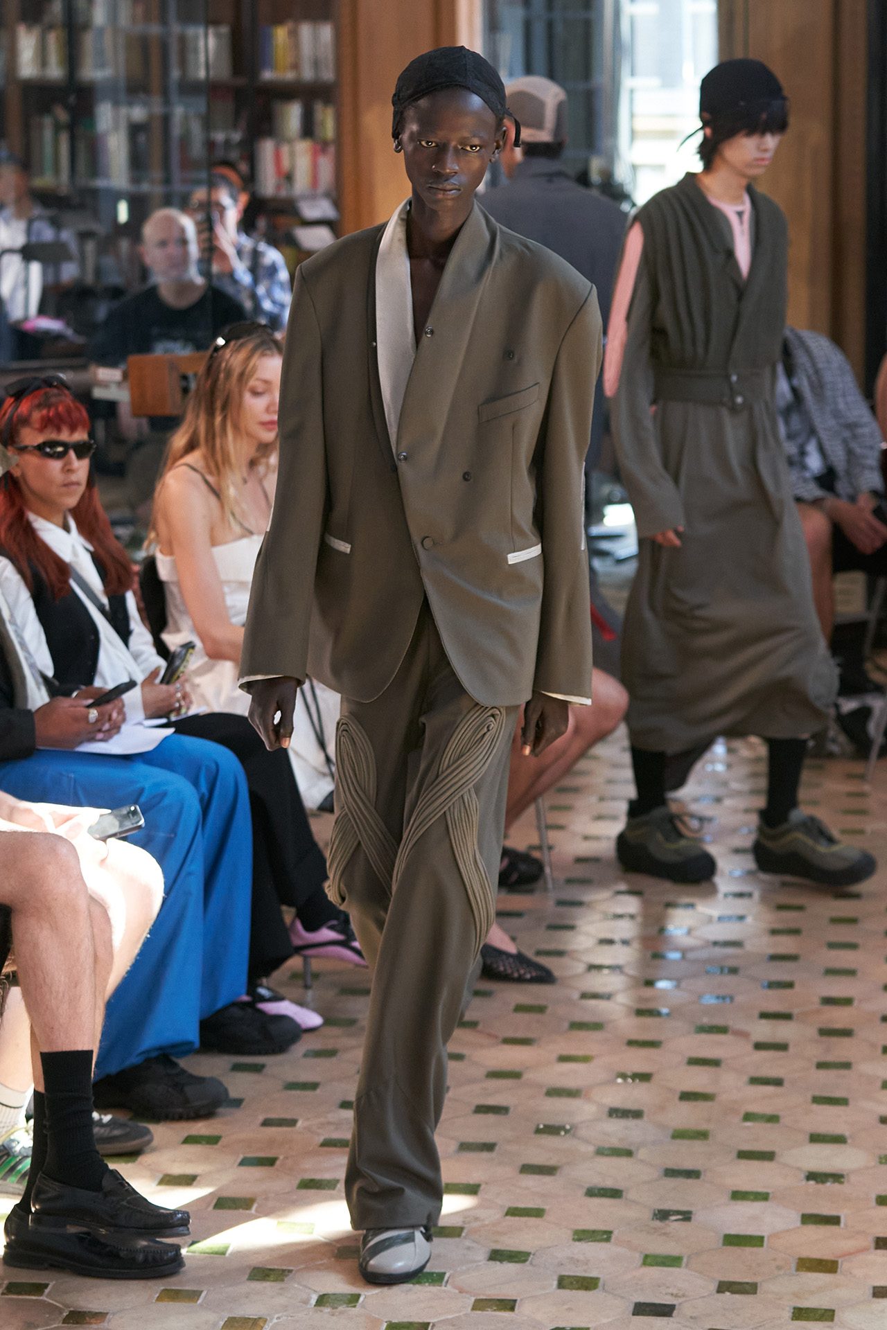 —ここで具体的なアイテムの話を。近年のコレクションでは、とくにテーラードのアイテムが印象に残っています。たとえば、2024SS のランウェイで2番目のルックに登場したウールギャバジンのテーラードジャケット。随所に差し込まれる短いダーツや二重になったラペル、隠しポケットなど、ディテールに心震えました。あれはどうやって思いついたんですか?