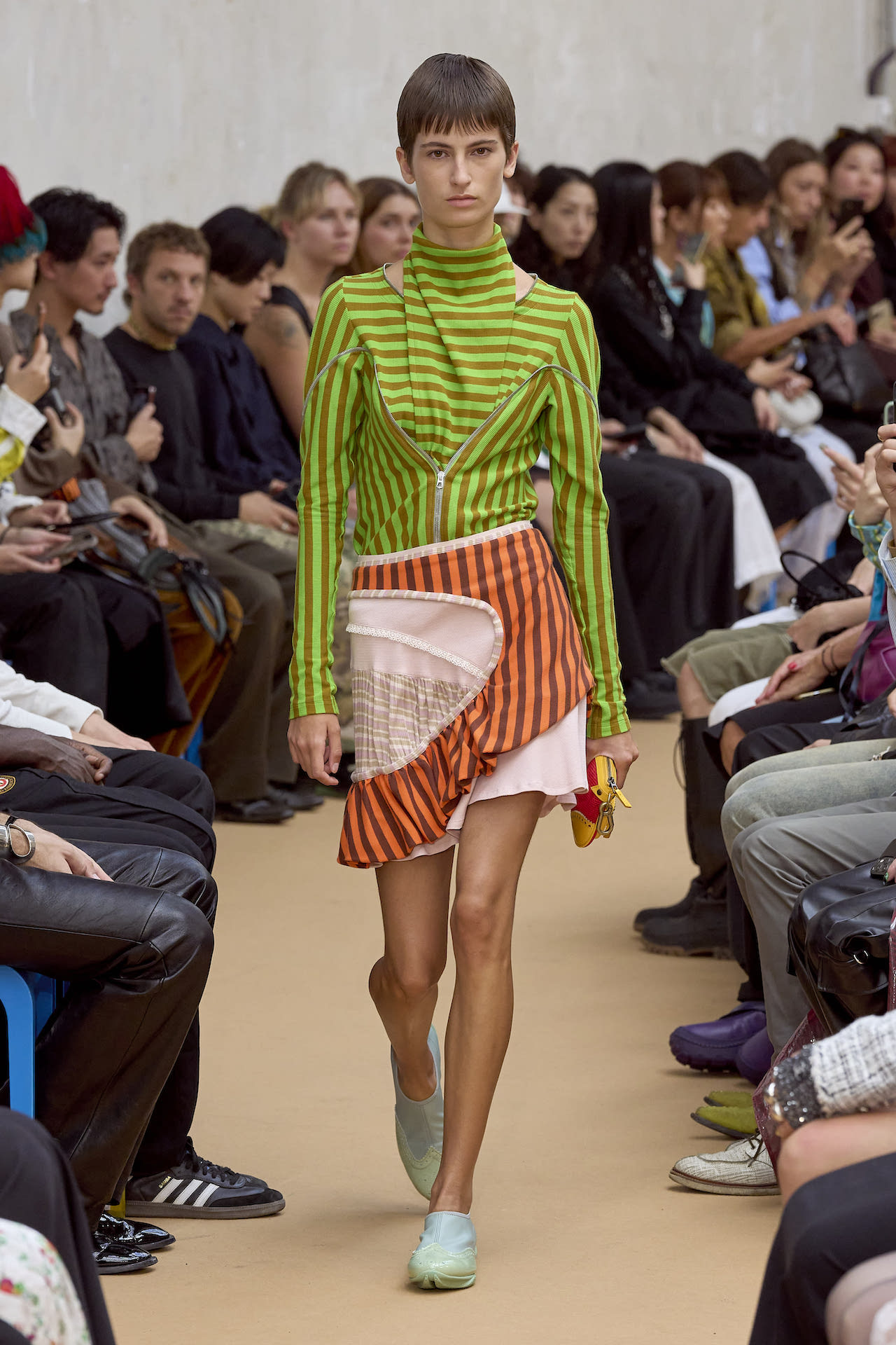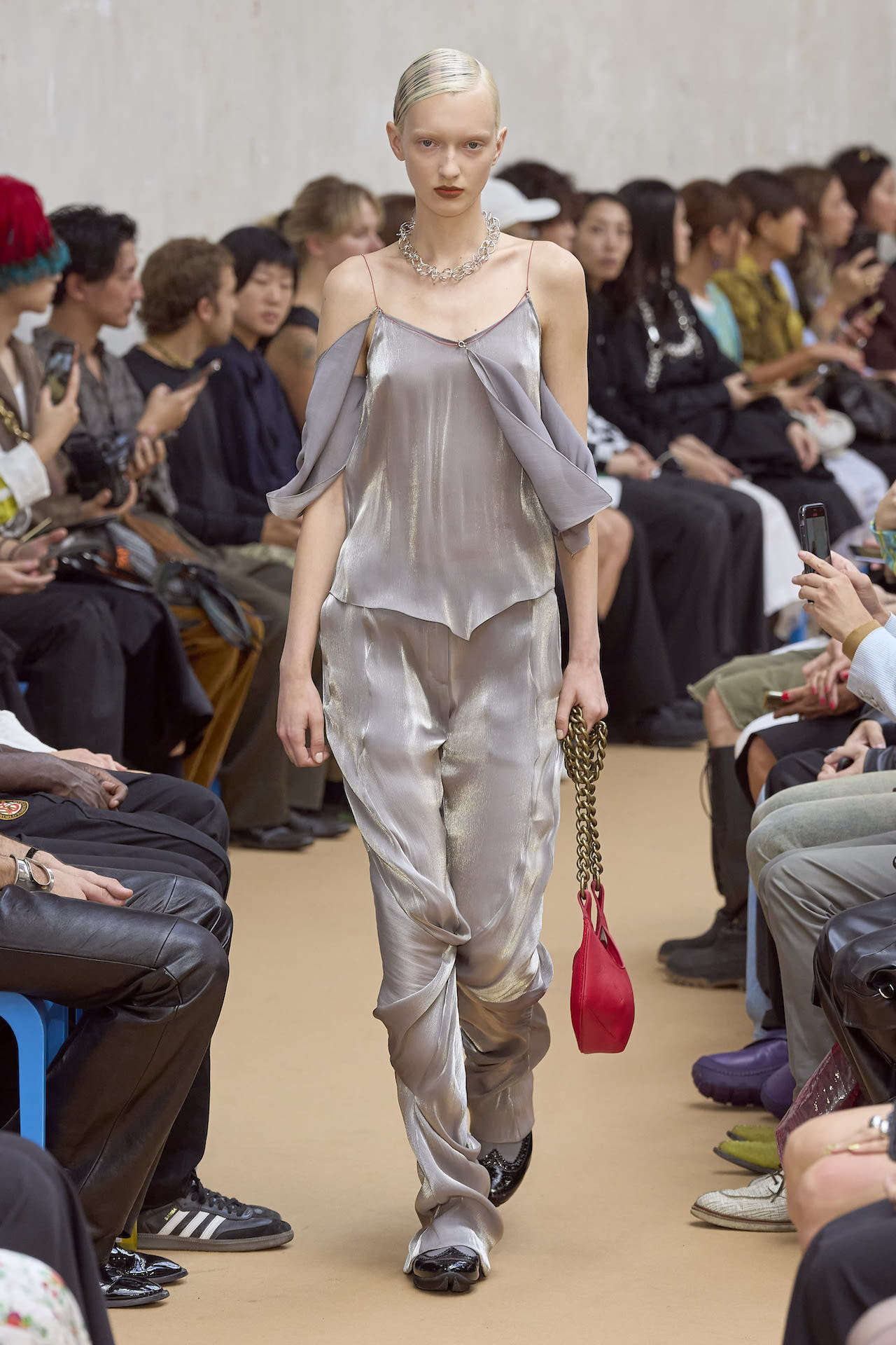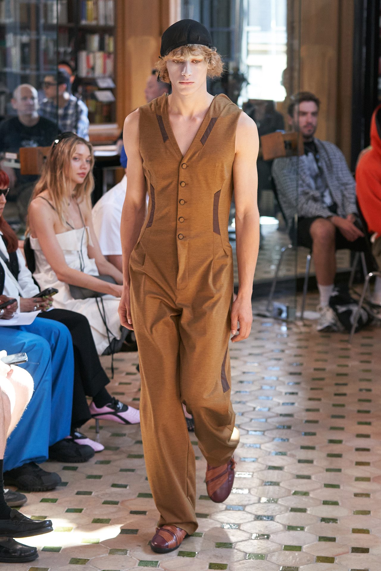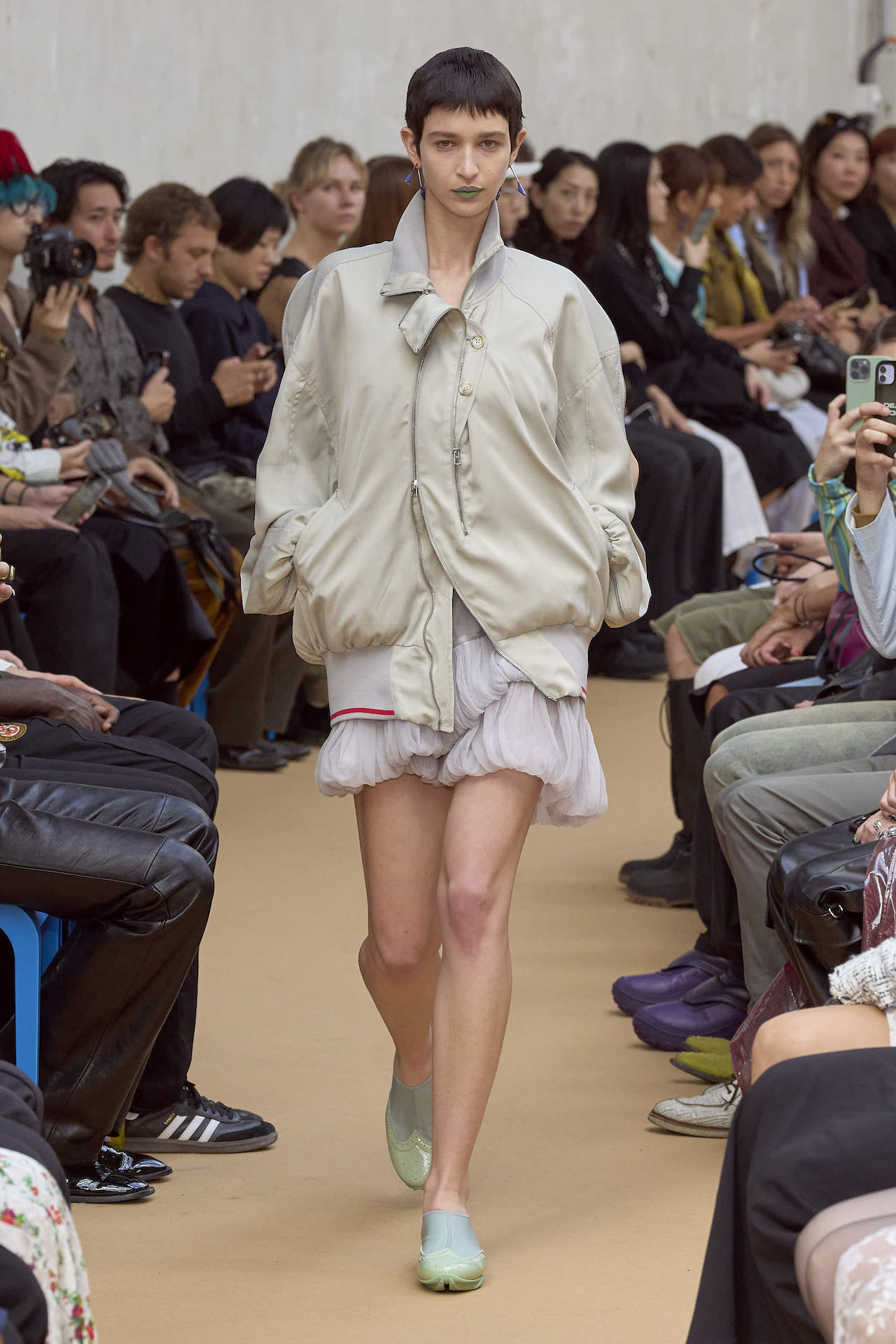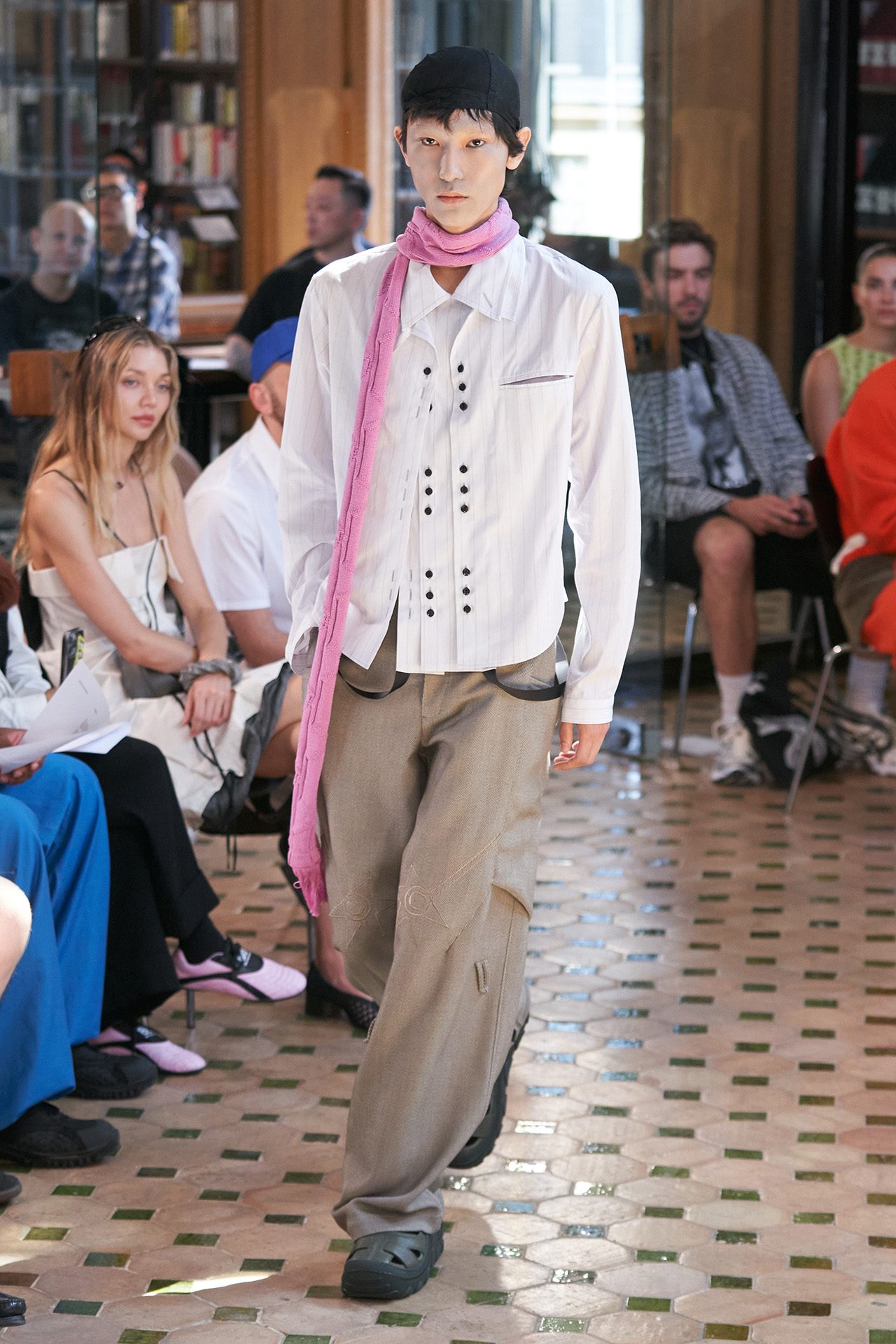 —ここで具体的なアイテムの話を。近年のコレクションでは、とくにテーラードのアイテムが印象に残っています。たとえば、2024SS のランウェイで2番目のルックに登場したウールギャバジンのテーラードジャケット。随所に差し込まれる短いダーツや二重になったラペル、隠しポケットなど、ディテールに心震えました。あれはどうやって思いついたんですか?