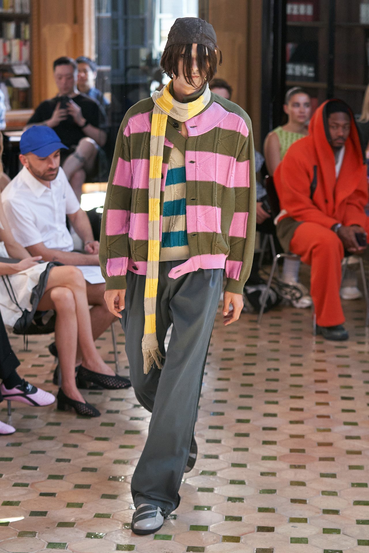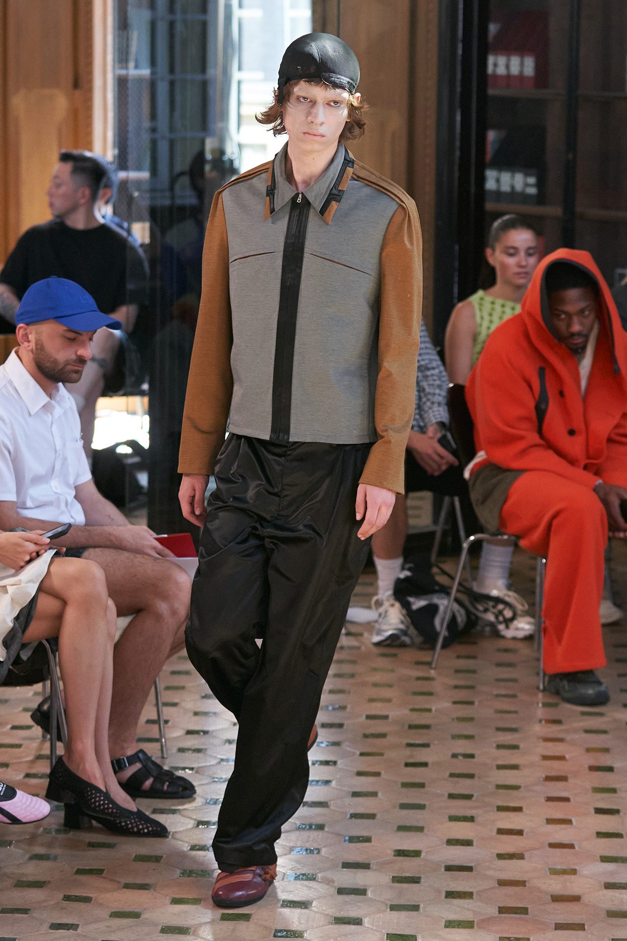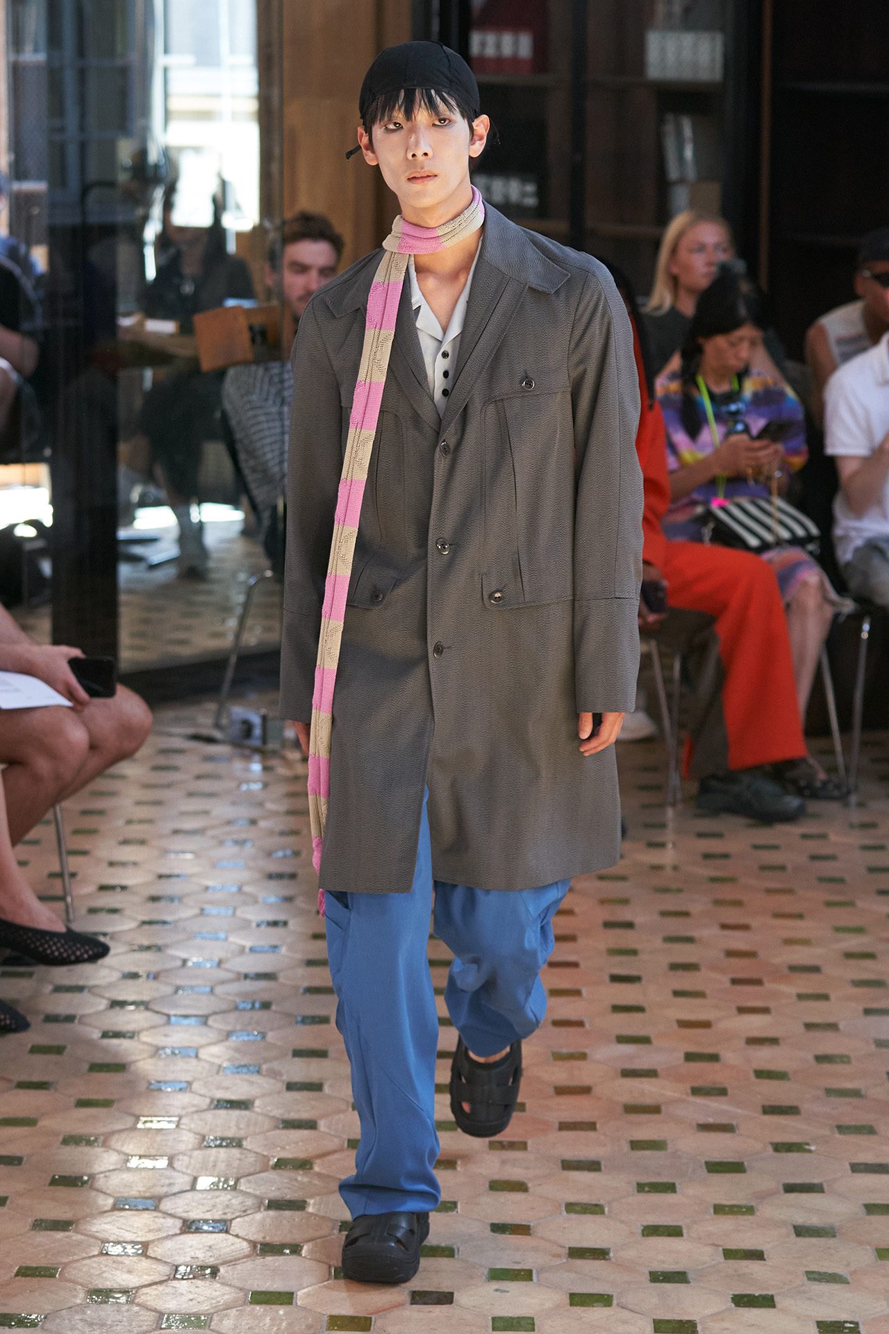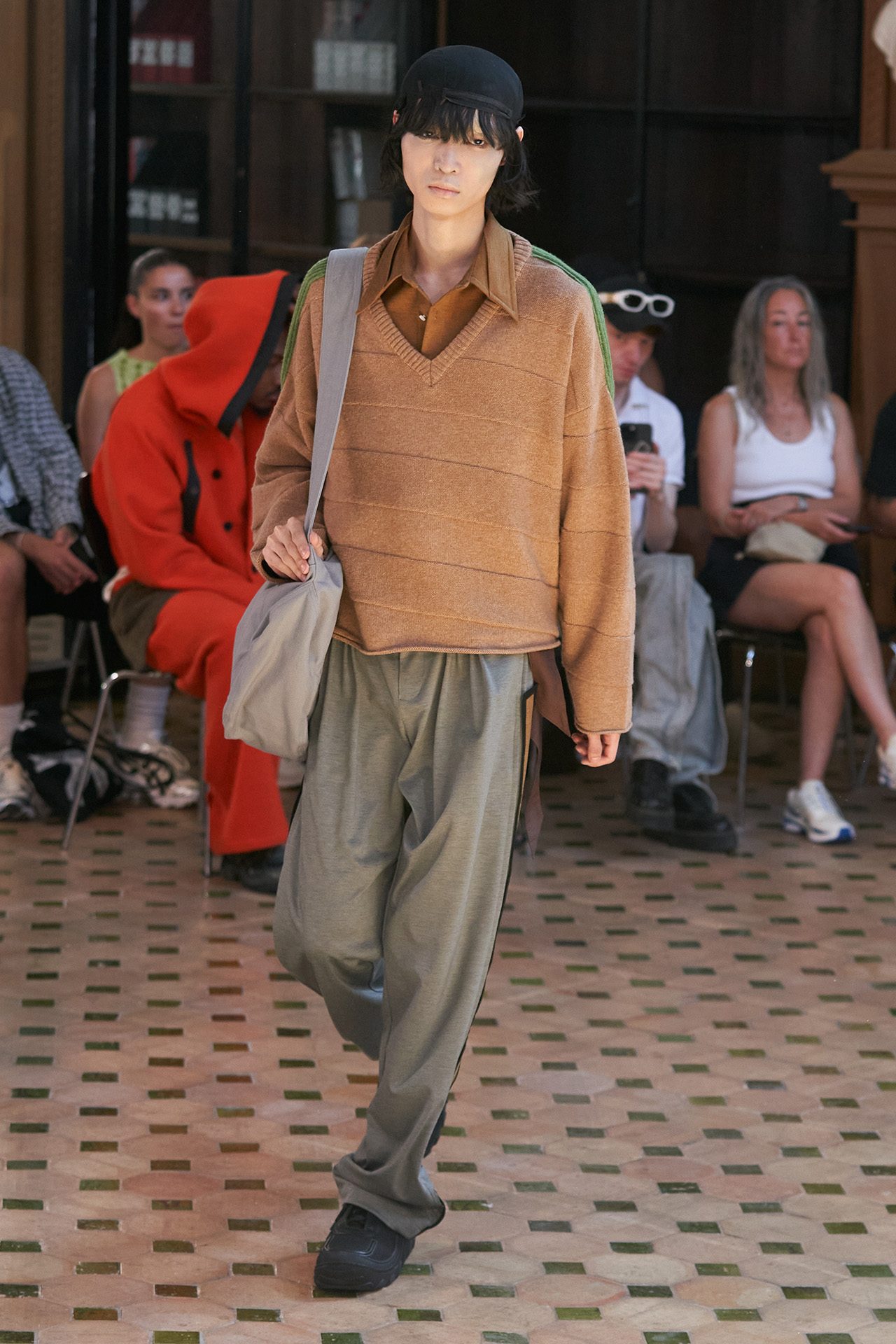 Kiko といえば ASICS (アシックス) とのコラボレーションが有名だが、元々はデザイナーがセントラル・セント・マーチンズ在籍時、Stussy (ステューシー) の服を脱構築したアイテムを発表したことでその名が知られるようになった。その「脱構築」というアプローチは、現在もなお彼らの中核をなしている。彼らは、ワークウェアやニット、テーラードジャケットなどの機能的なシルエットやパーツに対して、音楽のサンプリングのごとく個人的な解釈を加えていく。その存在は、彼自身がファンから神格化されているという点も含めて、Martin Margiela (マルタン・マルジェラ) や Raf Simons (ラフ・シモンズ) の系譜に連なるかもしれない。